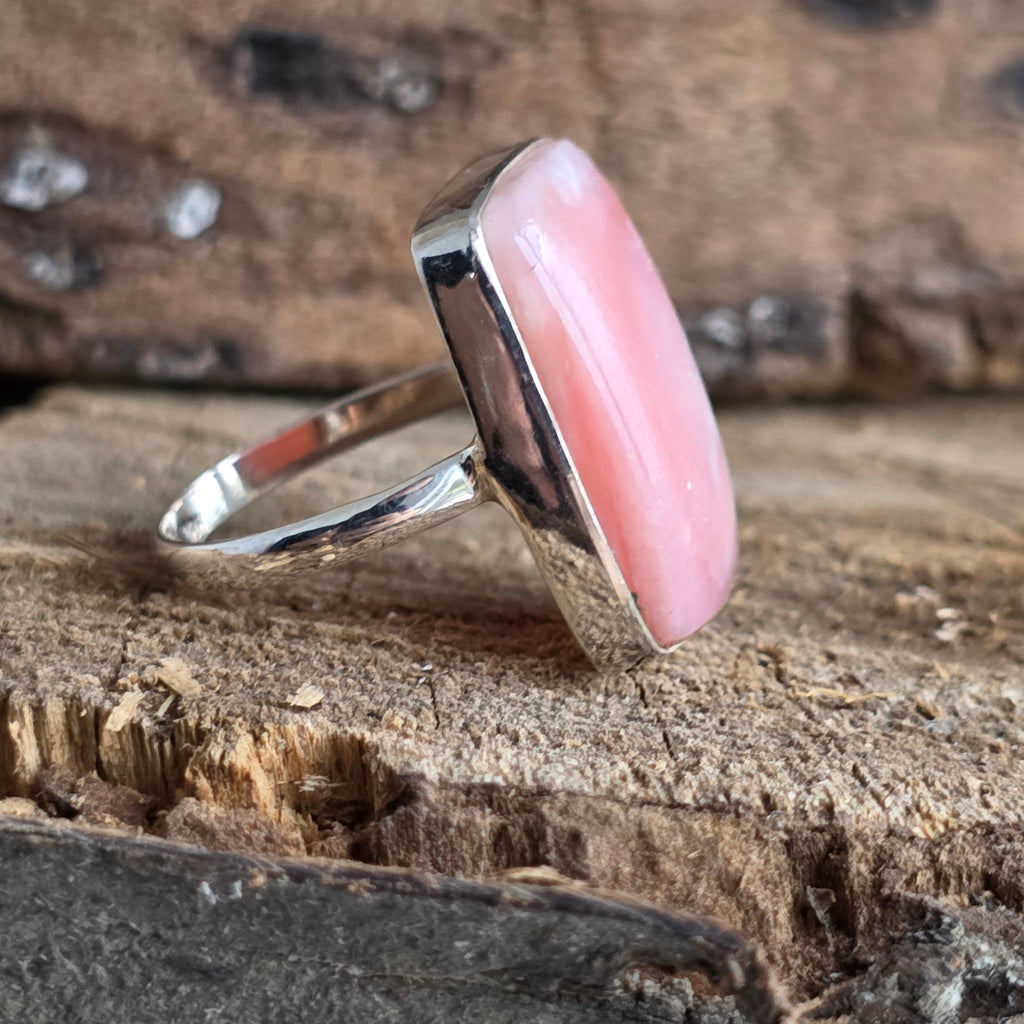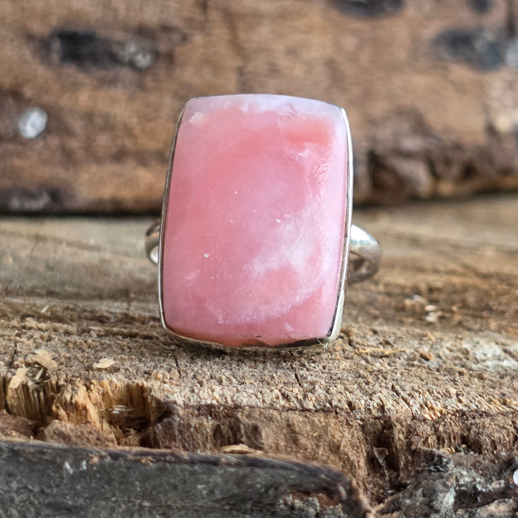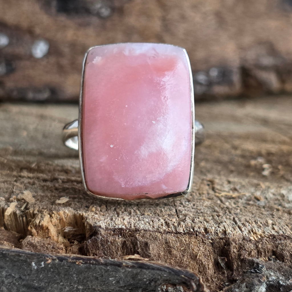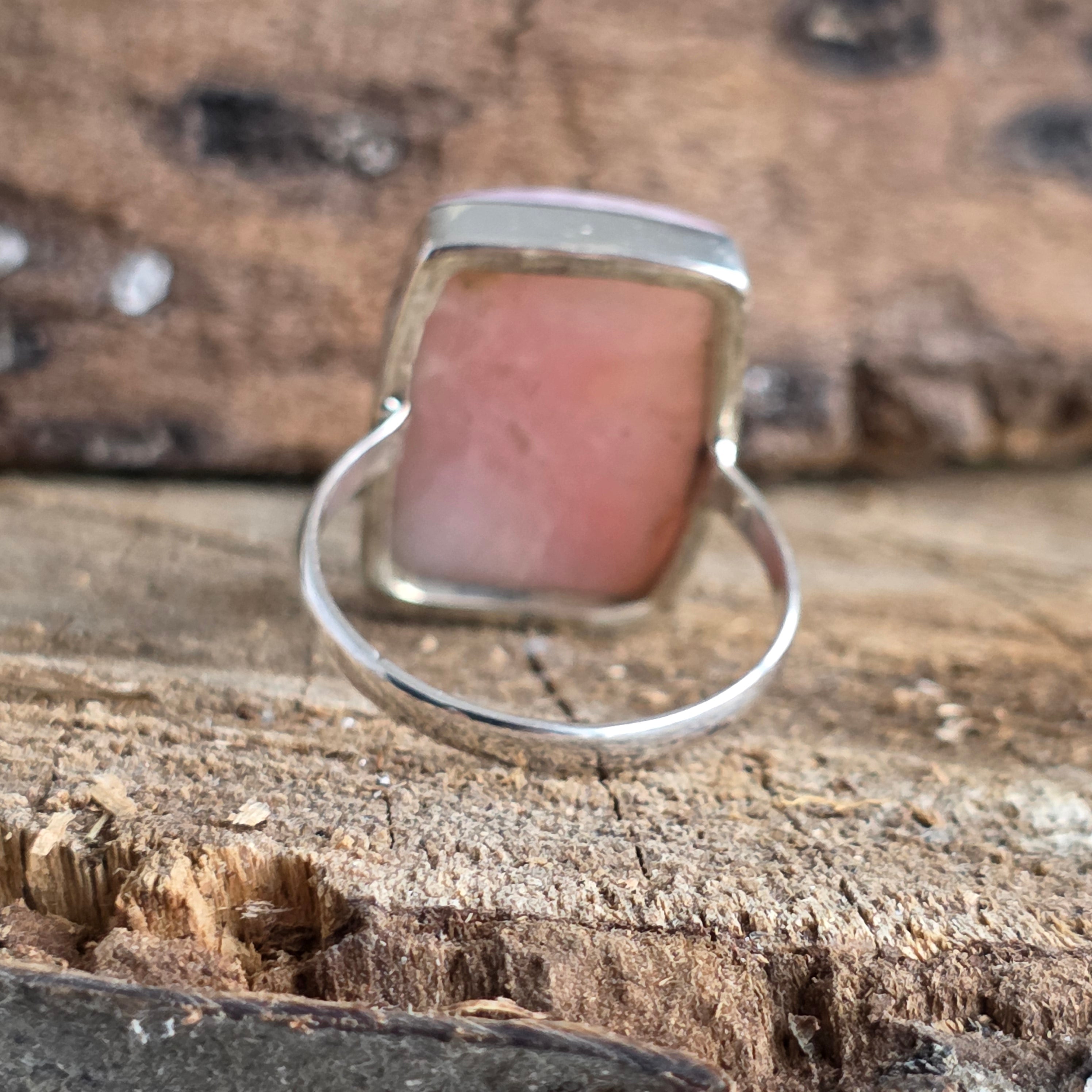 Un inel elegant din argint 925, cu opal roz natural, în nuanțe blânde de roz-piersică ce emană căldură și feminitate. Tăietura dreptunghiulară îi oferă un aer modern și rafinat, transformându-l într-o bijuterie versatilă și plină de farmec.