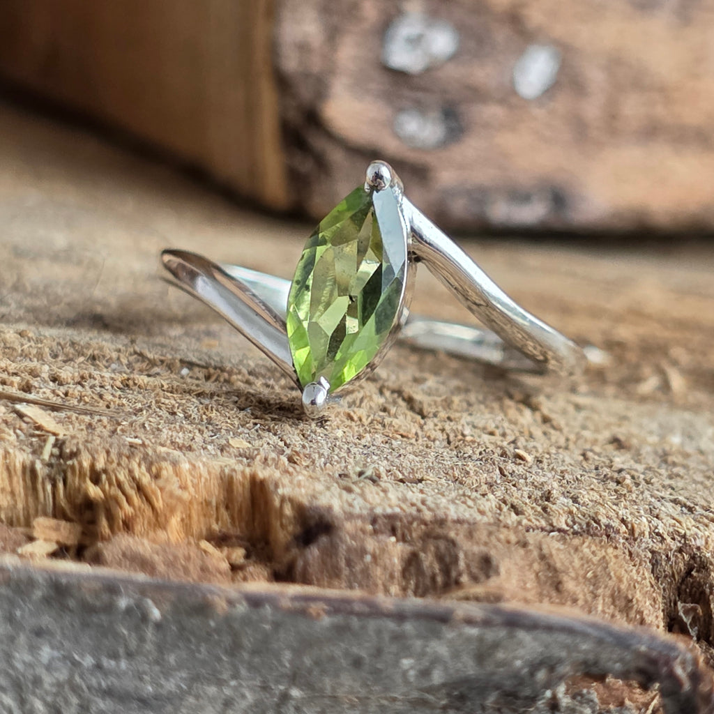 • Piatră: peridot natural, tăietură marquise, fațetat