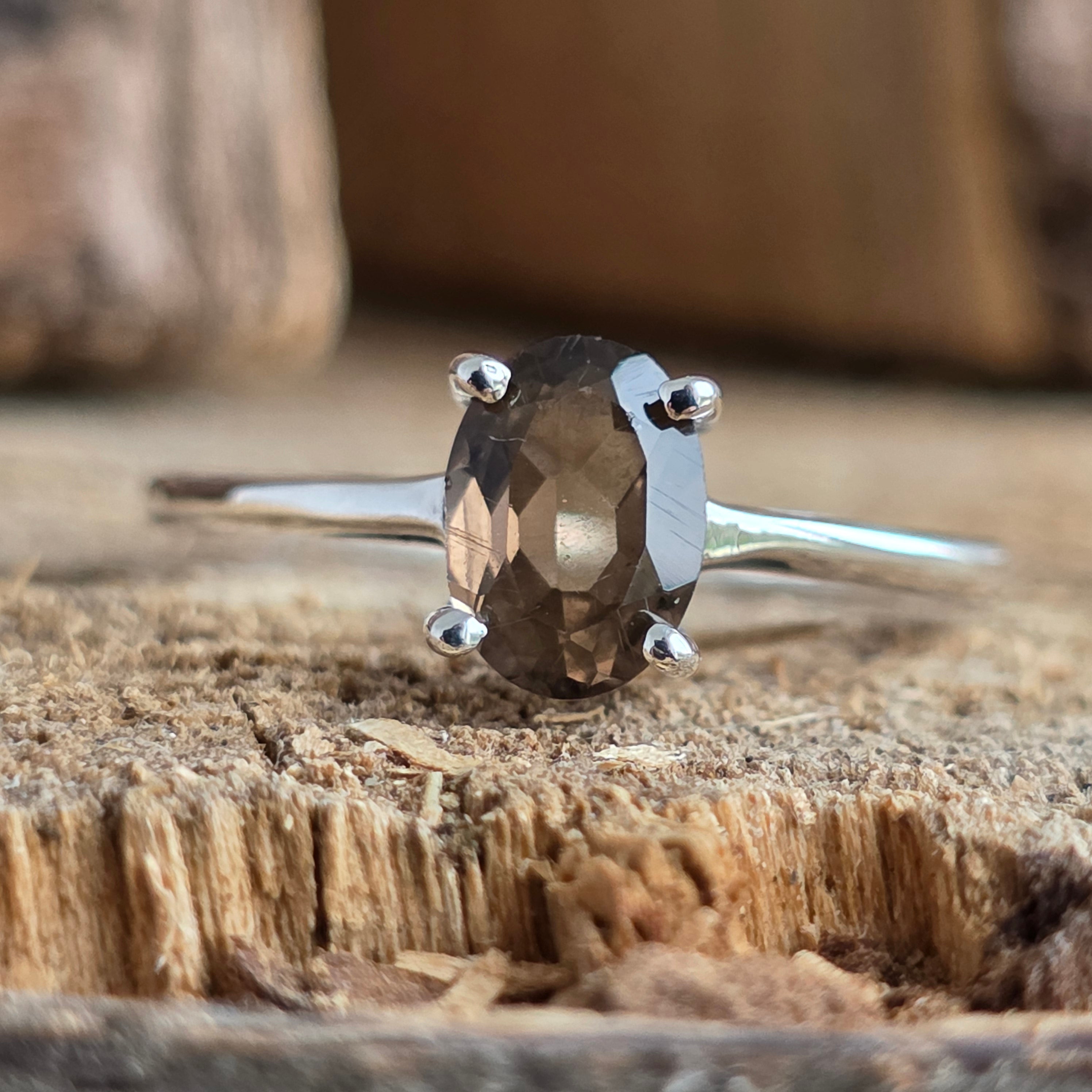 Elegant și misterios, acest inel din argint 925 pune în valoare profunzimea translucidă a topazului fumuriu, piatra ancorării și a înțelepciunii interioare.