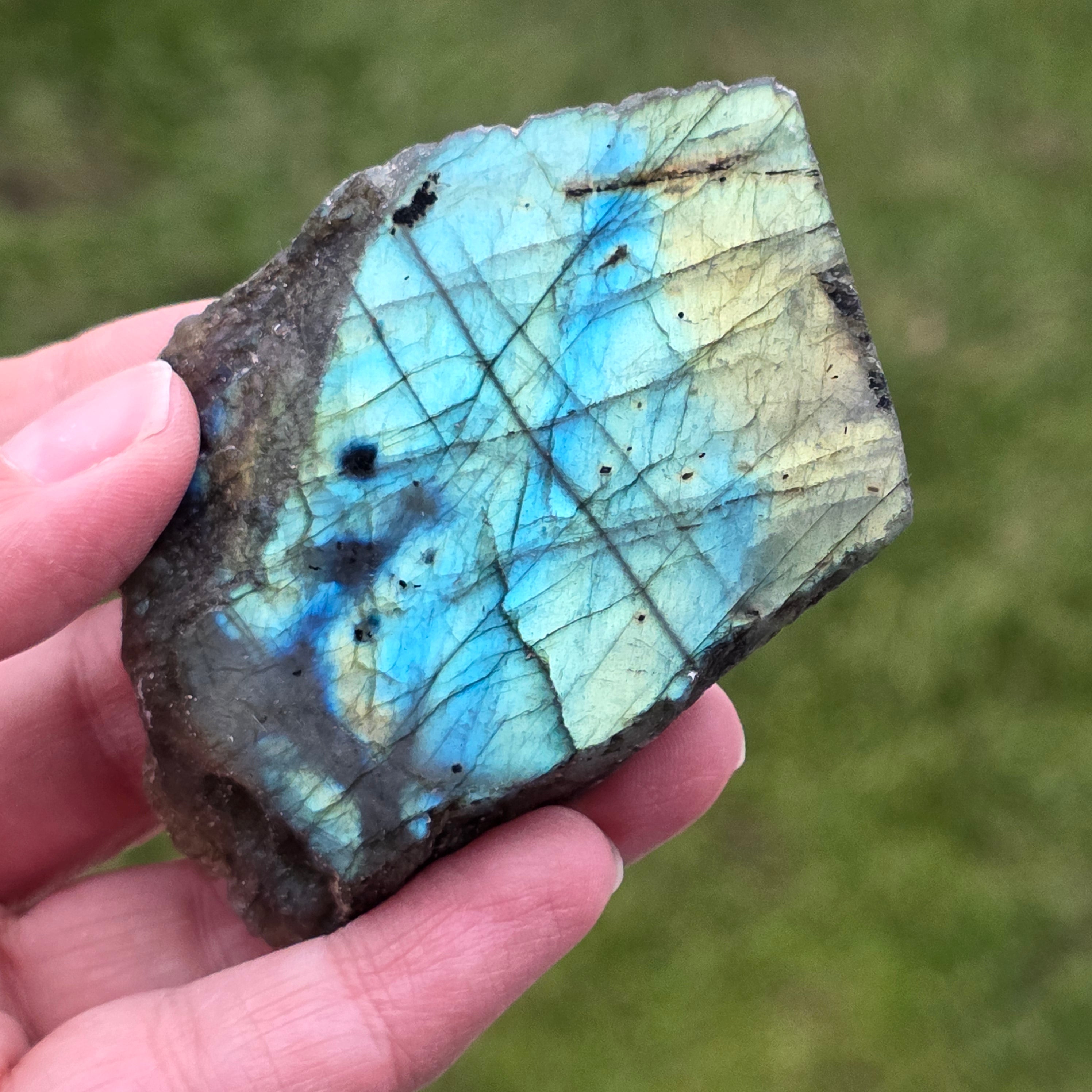 Labradorite ακατέργαστη γυαλισμένη πέτρα σε ένα πρόσωπο m9