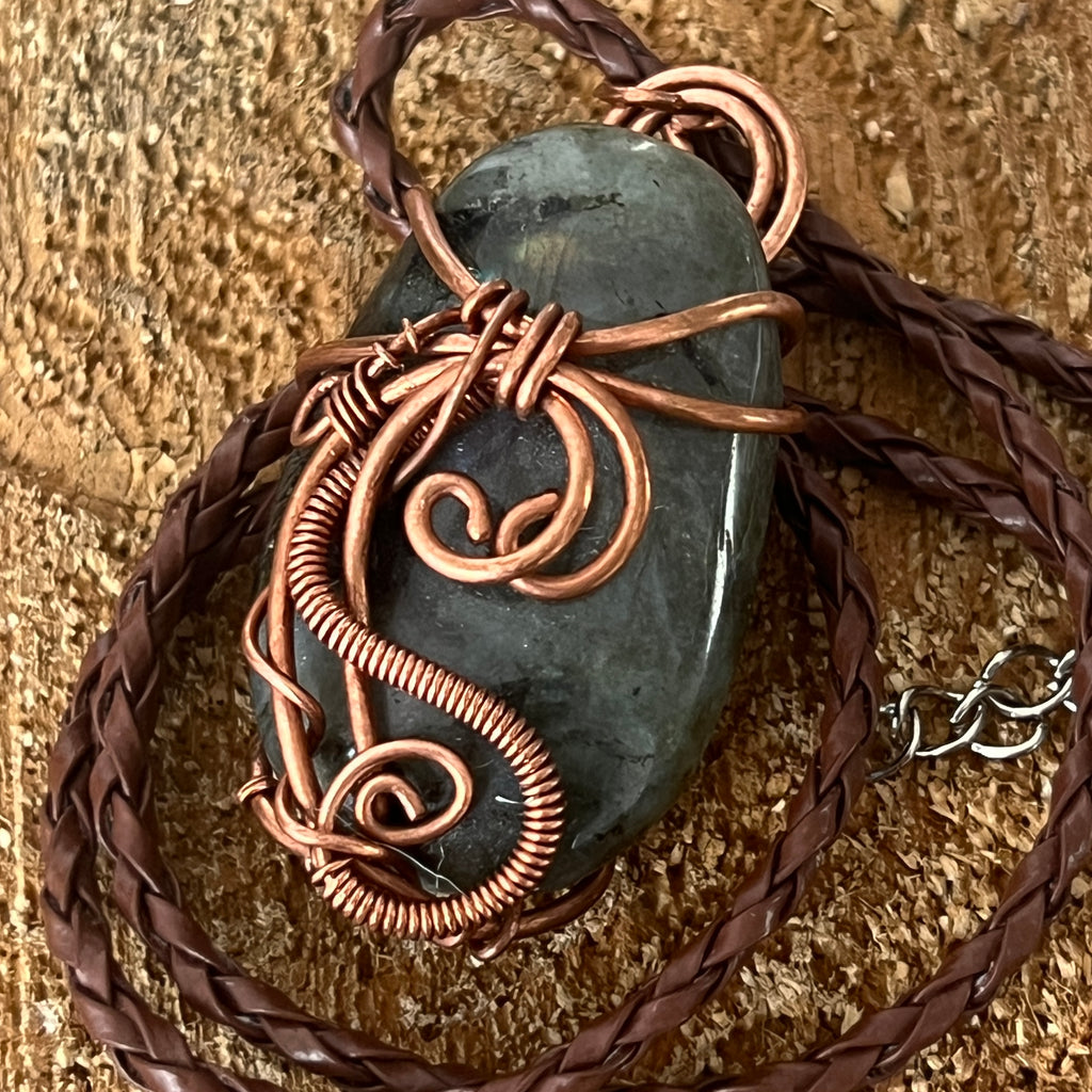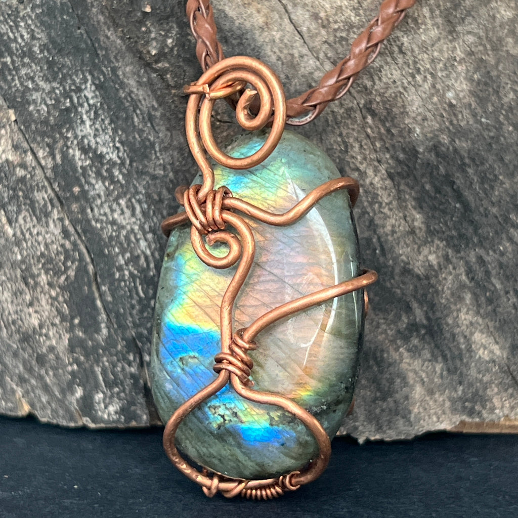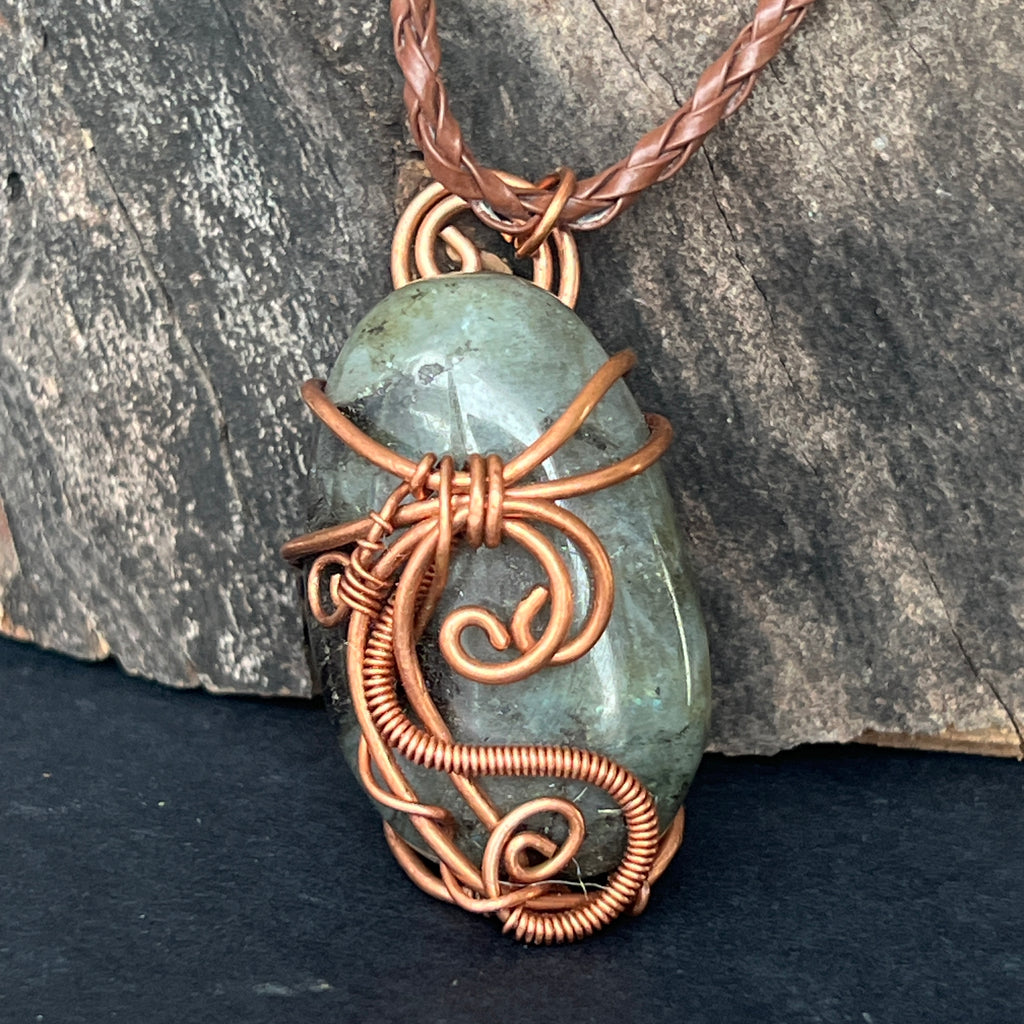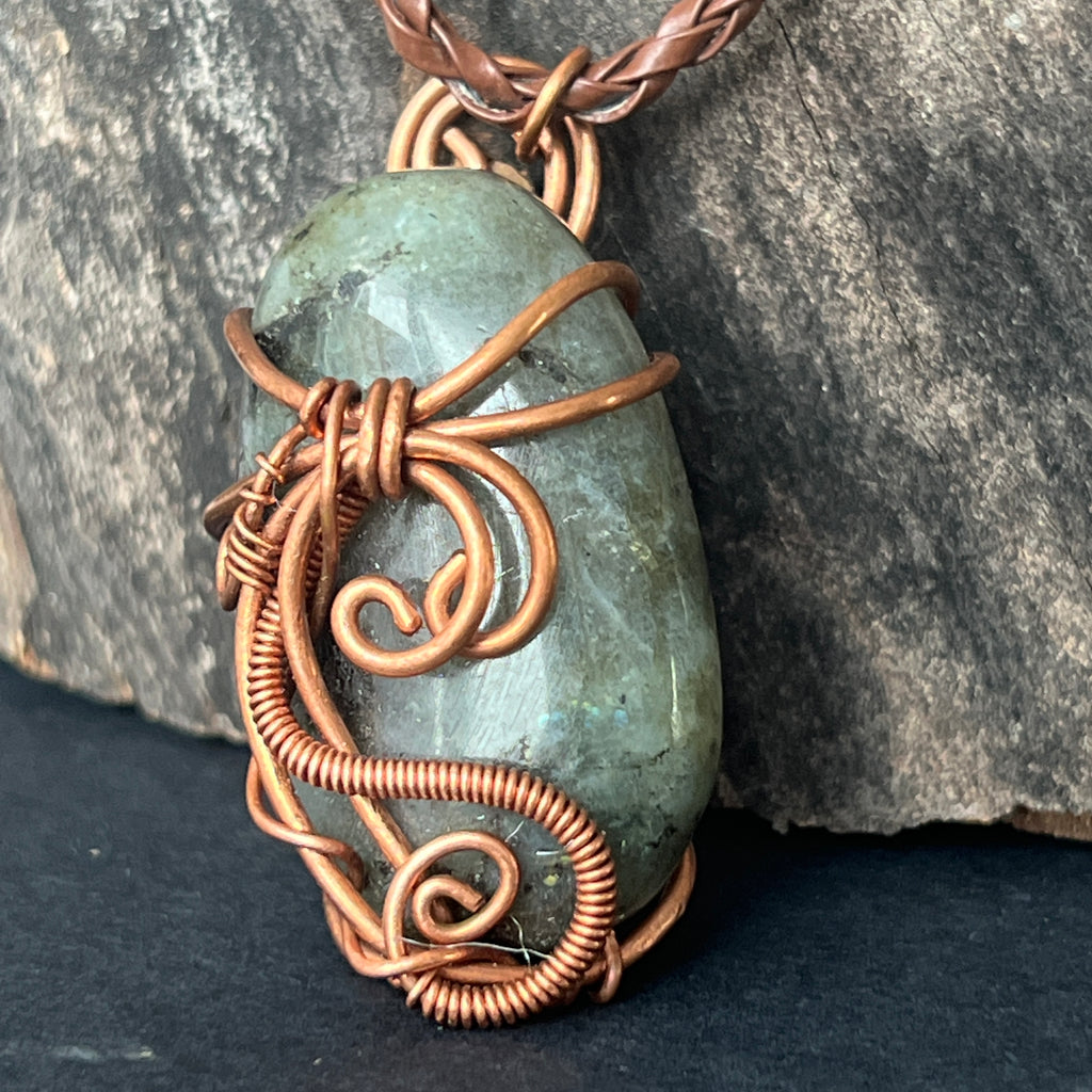 Κρεμαστό κολιέ Labradorite σε χάλκινο/καλλιτεχνικό σύρμα μοντέλο 2, χειροποίητο 2