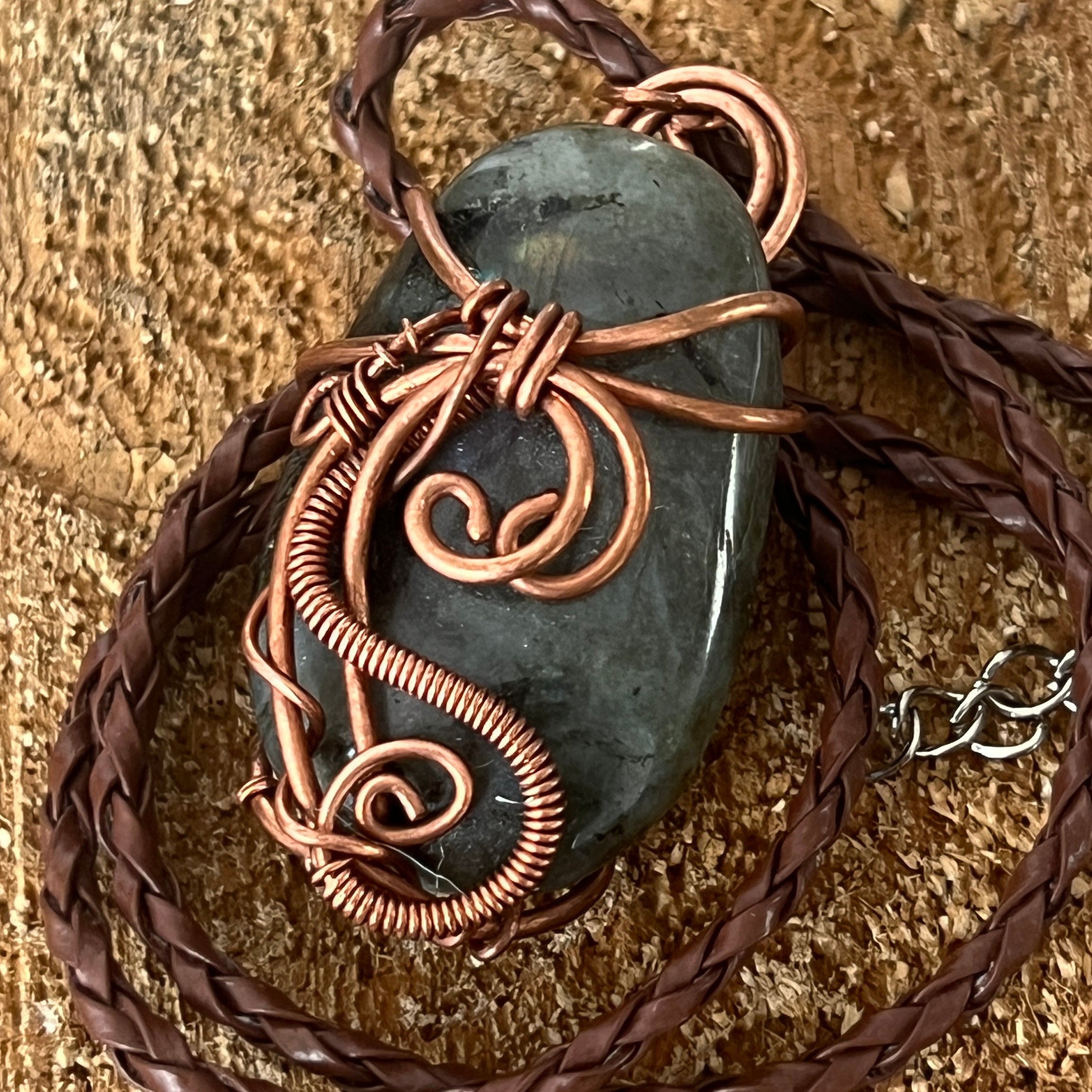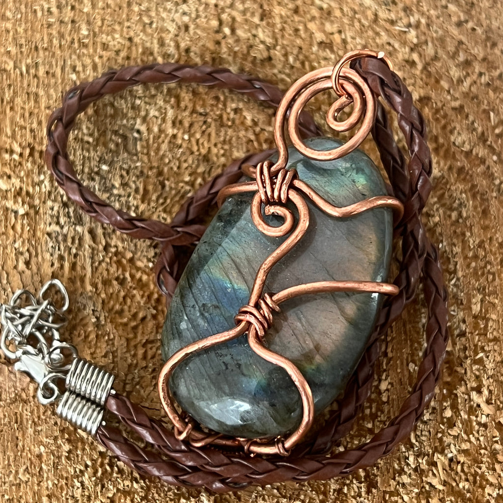 Περιγραφή - Labradorite μενταγιόν κολιέ από χαλκό/καλλιτεχνικό σύρμα μοντέλο 2
