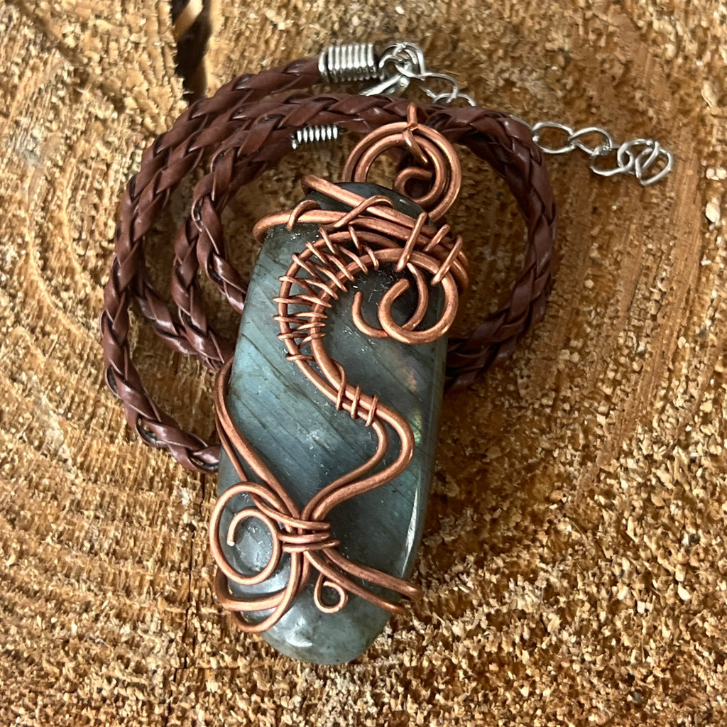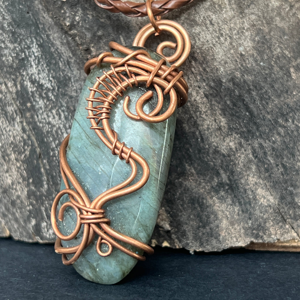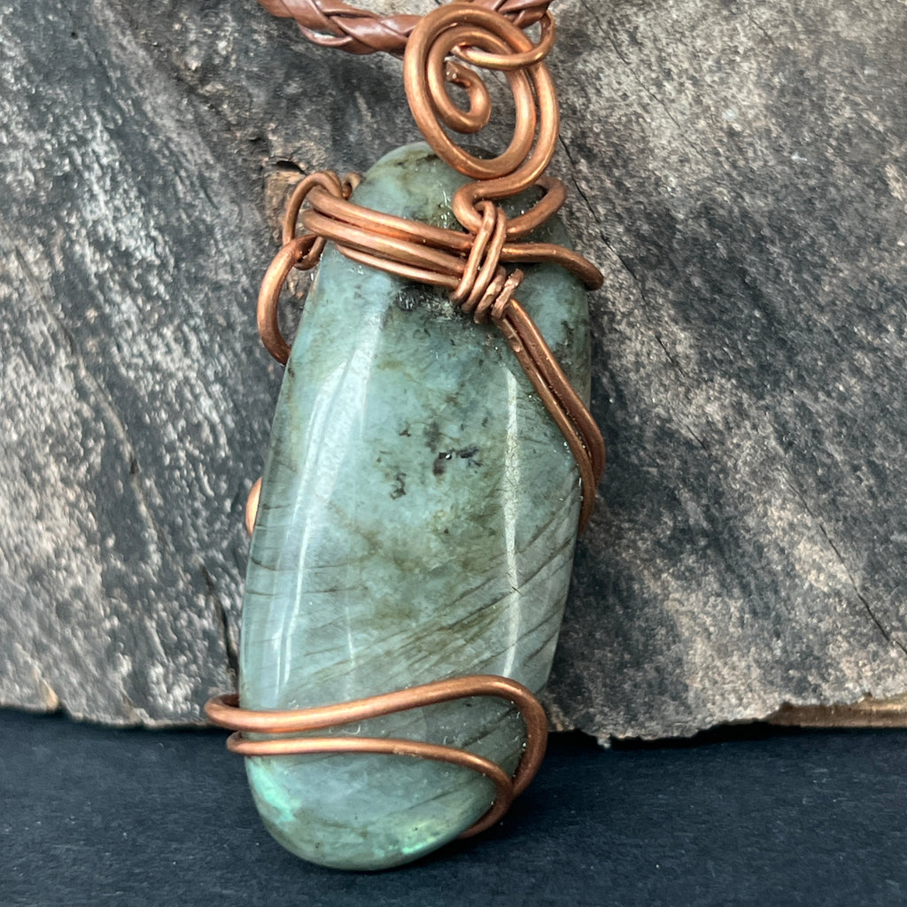 Κρεμαστό κολιέ Labradorite σε χάλκινο/καλλιτεχνικό σύρμα μοντέλο 3, χειροποίητο 3