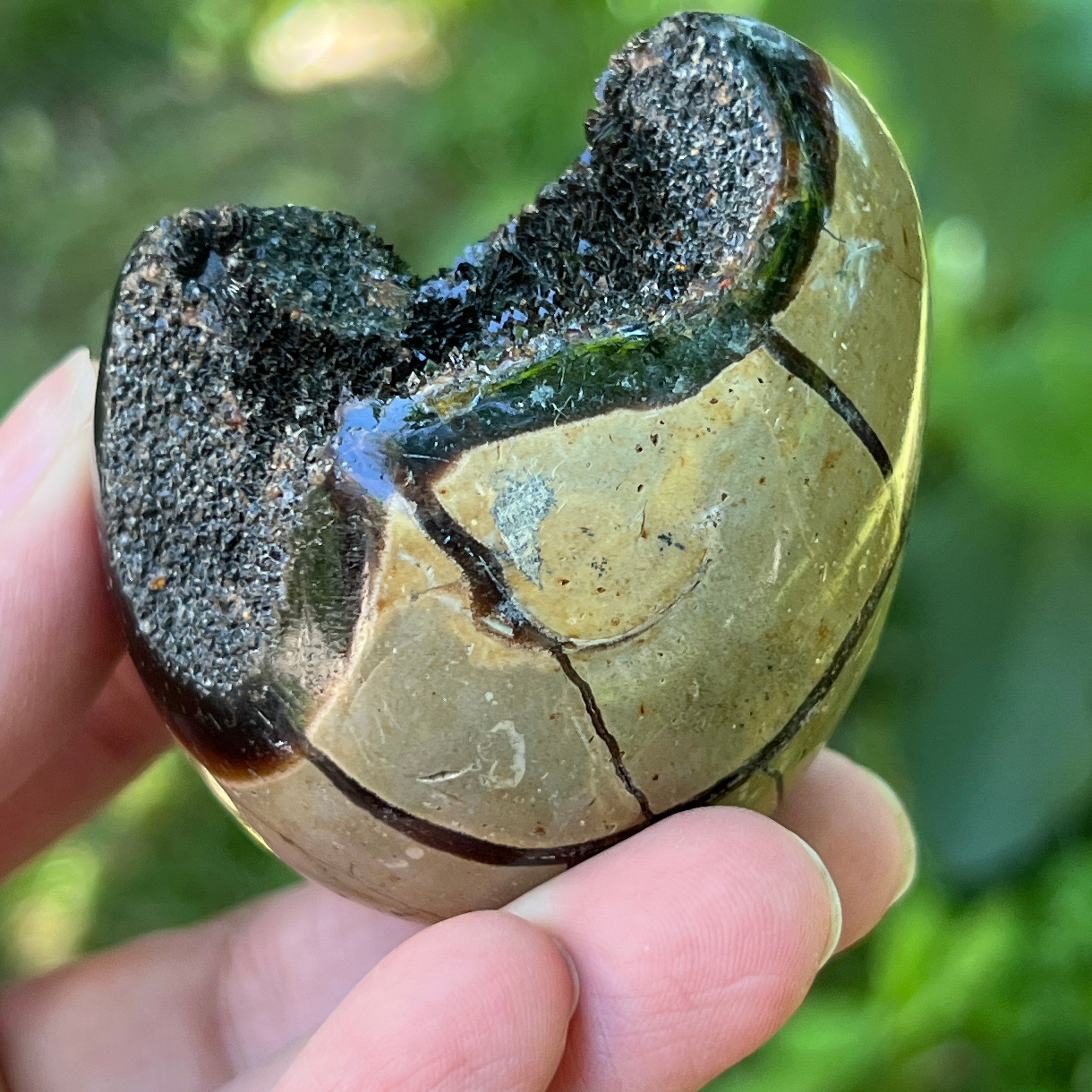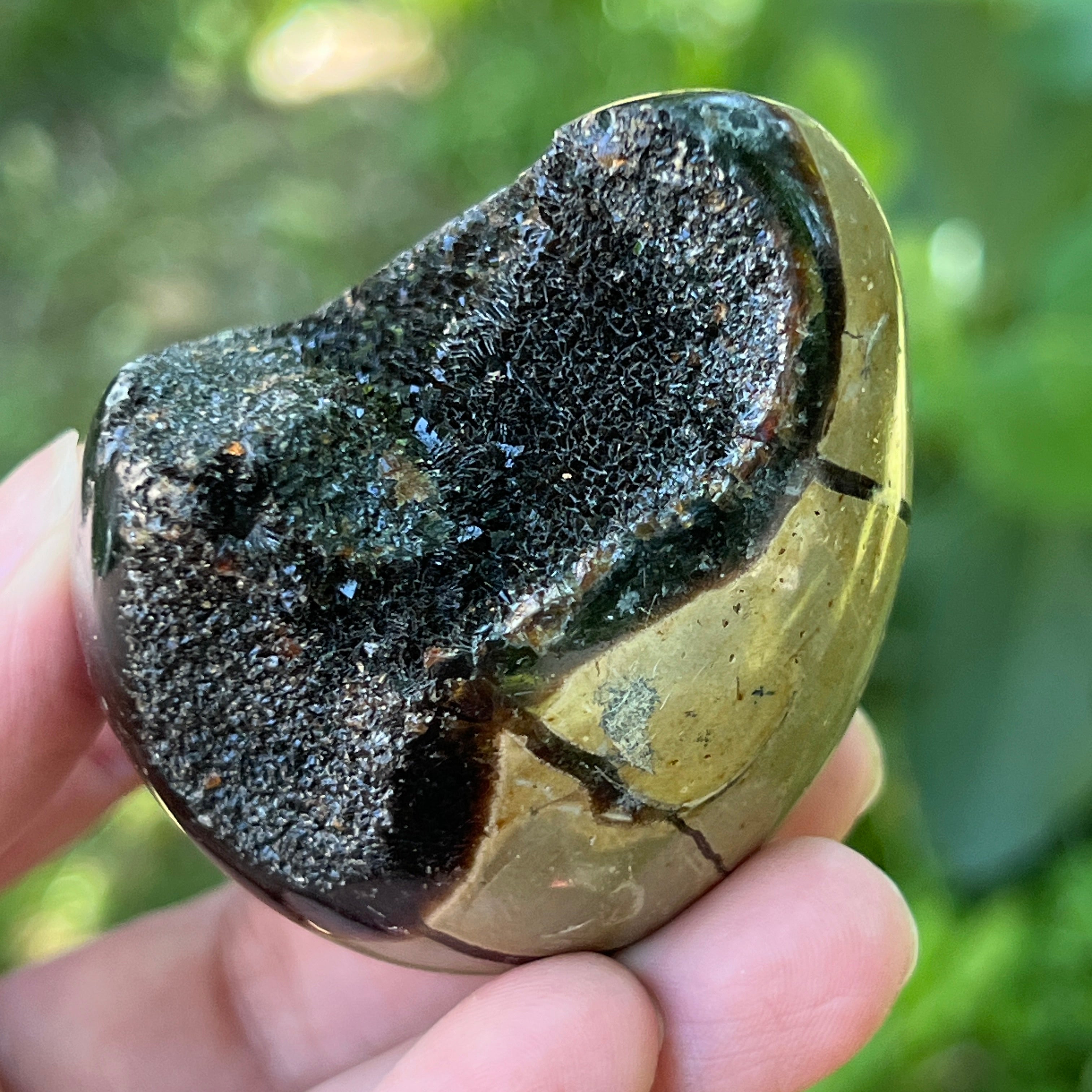 Το Septaria αποτελείται από ασβεστίτη, λιμονίτη, γύψο και βαριτίνη, ορυκτά που σχηματίζουν ένα μοναδικό παιχνίδι σε αυτή την πέτρα και δίνουν μια ιδιαίτερη εμφάνιση.