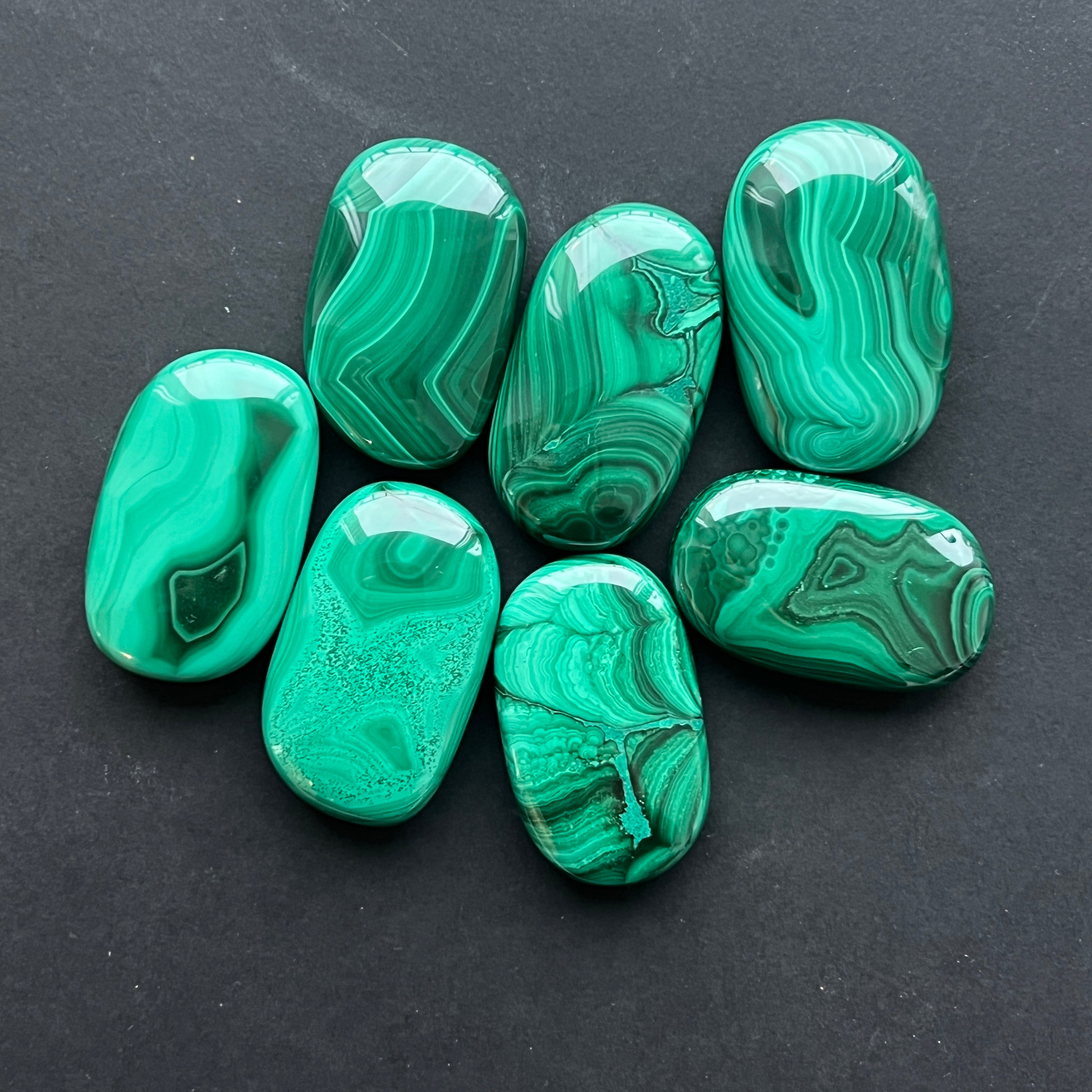 Un palmstone care pare să respire cu energia Pământului viu. Malachitul natural, dezvăluie ondulații hipnotice de verde intens și smarald, traversate de inele și benzi concentrice ce par sculptate de însăși natura. Textura netedă, perfect șlefuită, face ca piatra să se așeze plăcut în palmă, emanând o vibrație caldă și protectoare.