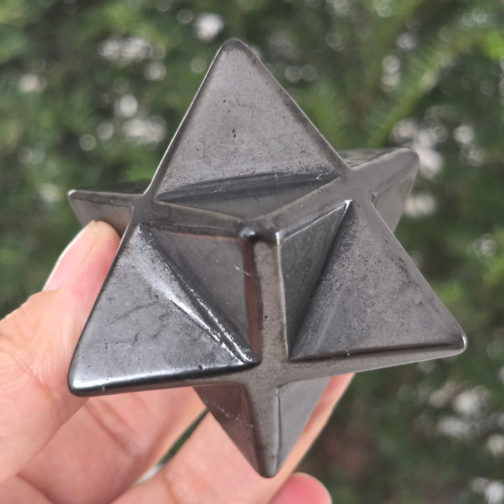 Merkaba din Shungit este o piesă de o forță aparte — o combinație între geometria sacră și energia protectoare a uneia dintre cele mai vechi pietre de pe Pământ. Simbolul Merkaba reprezintă uniunea dintre trup, spirit și lumină, un vehicul energetic care facilitează expansiunea conștiinței și protecția subtilă.