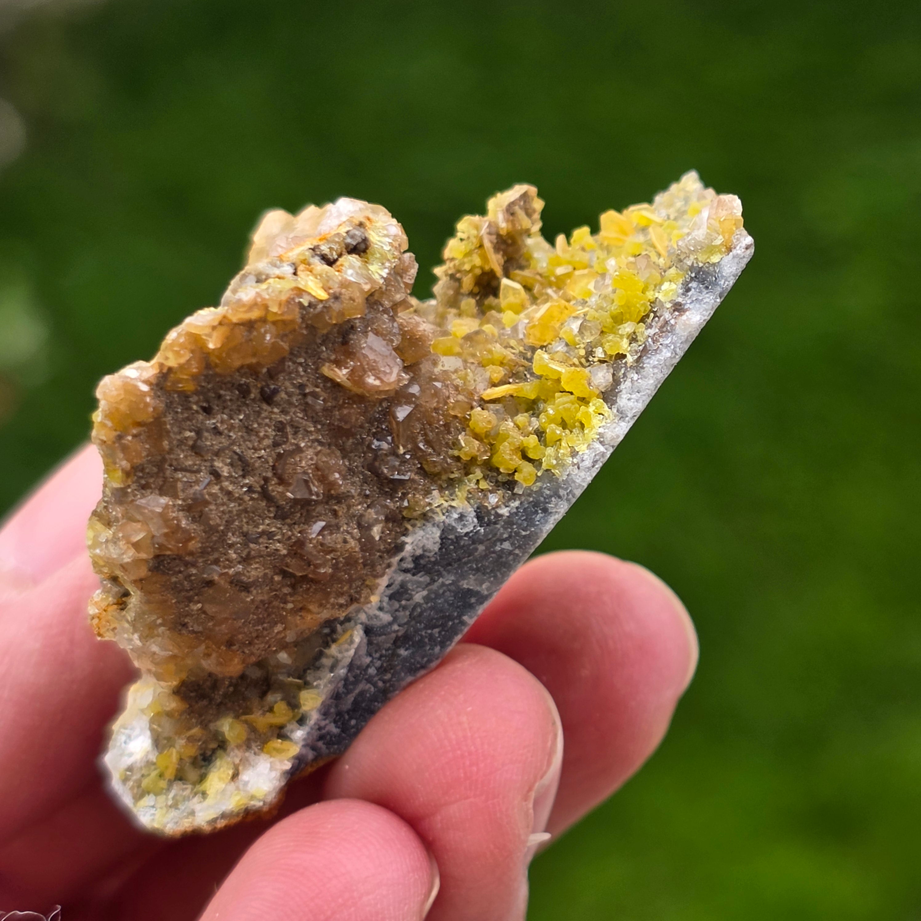 Format în zonele de oxidare ale zăcămintelor de plumb, mimetitul este un arsenat de plumb, iar piesele provenite din Mexic sunt considerate de referință la nivel internațional datorită aspectului estetic deosebit și rarității. Suprafața cristalelor este adesea lucioasă, iar structura densă conferă specimenului un caracter vizual puternic, ideal pentru colecție sau expunere decorativă.