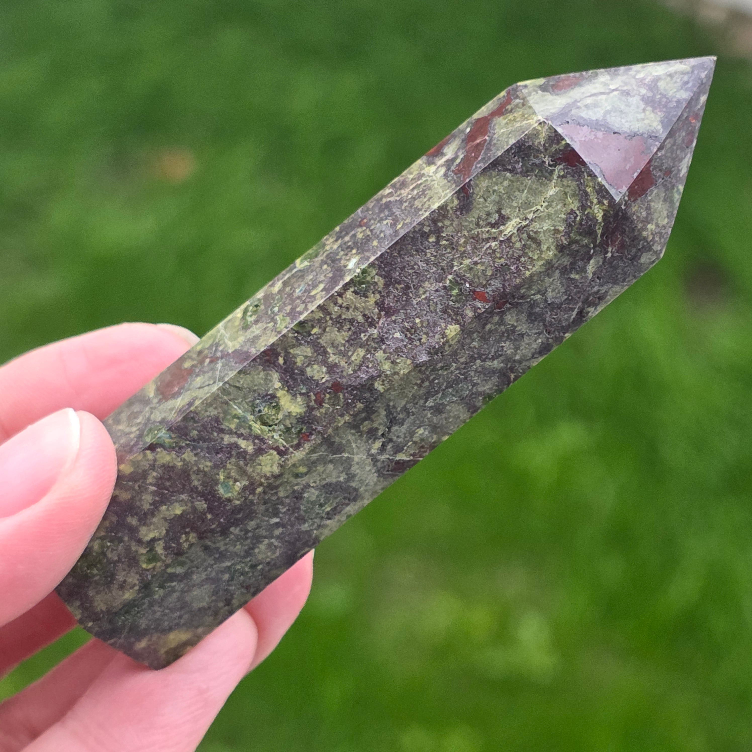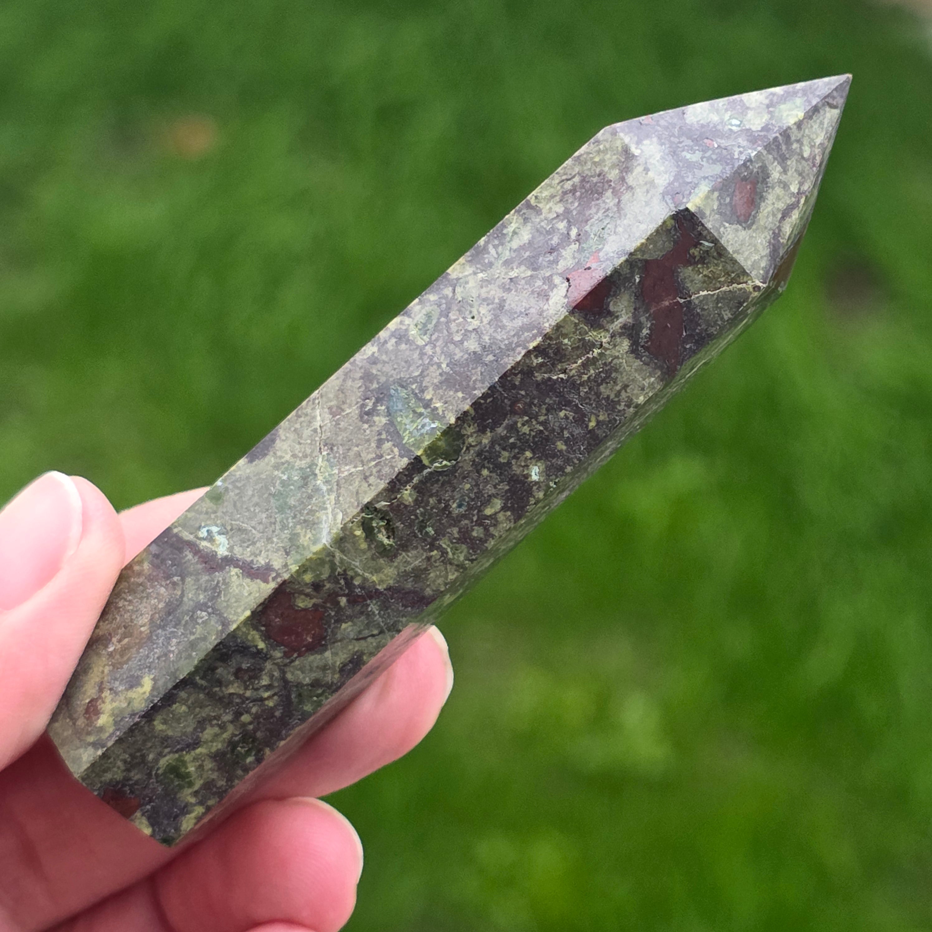 Περιγραφή - Obelisc Mini Stone Το αίμα του δράκου (Epidot & Pedmontit) M4