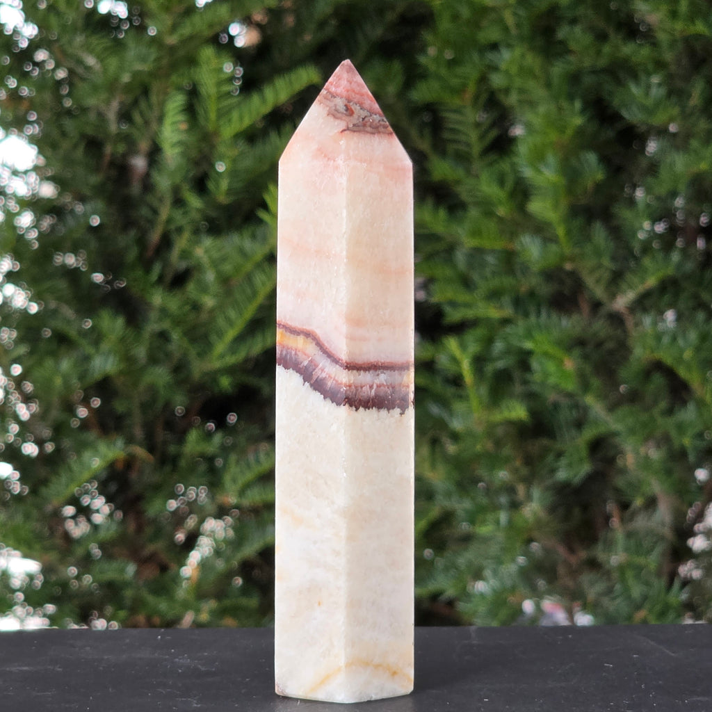 Această piatră fascinantă îmbină onixul portocaliu cu vene delicate de calcit, în straturi care par pictate de timp. Nuanțele vibrante de portocaliu, miere și chihlimbar pulsează cu energia vieții și aduc o notă de vitalitate oricărui spațiu. Este o piesă care trezește simțurile și inspiră creativitatea, dar păstrează în același timp un echilibru profund, ancorat în energia pământului.