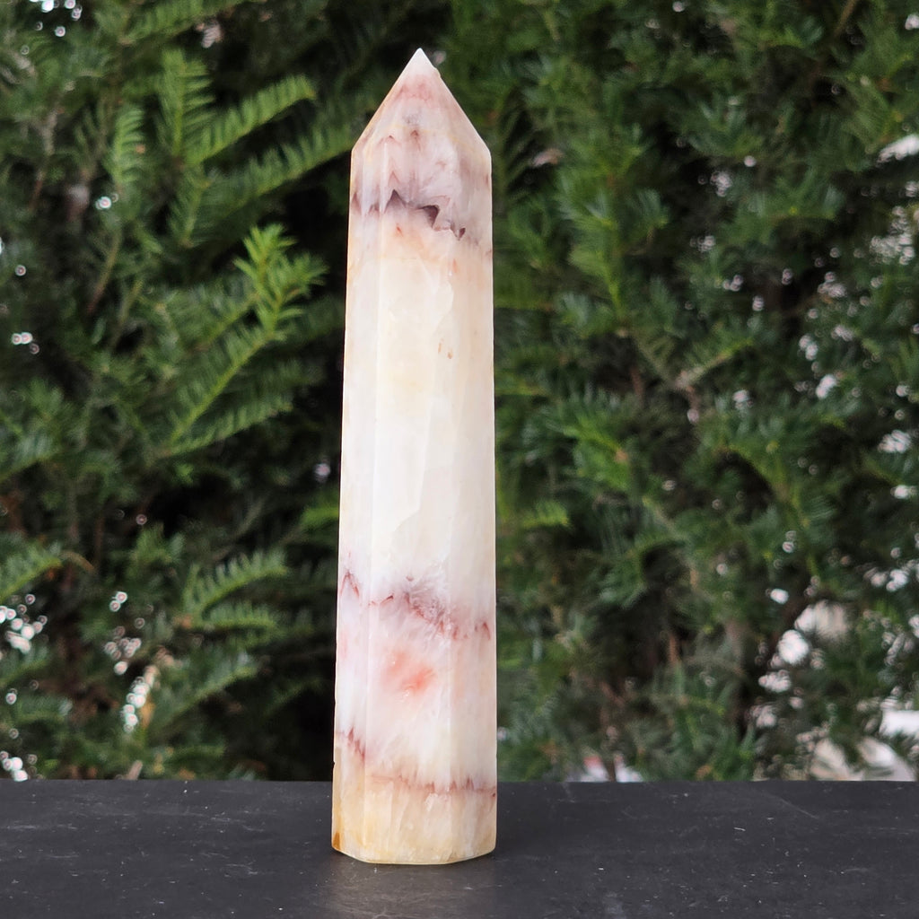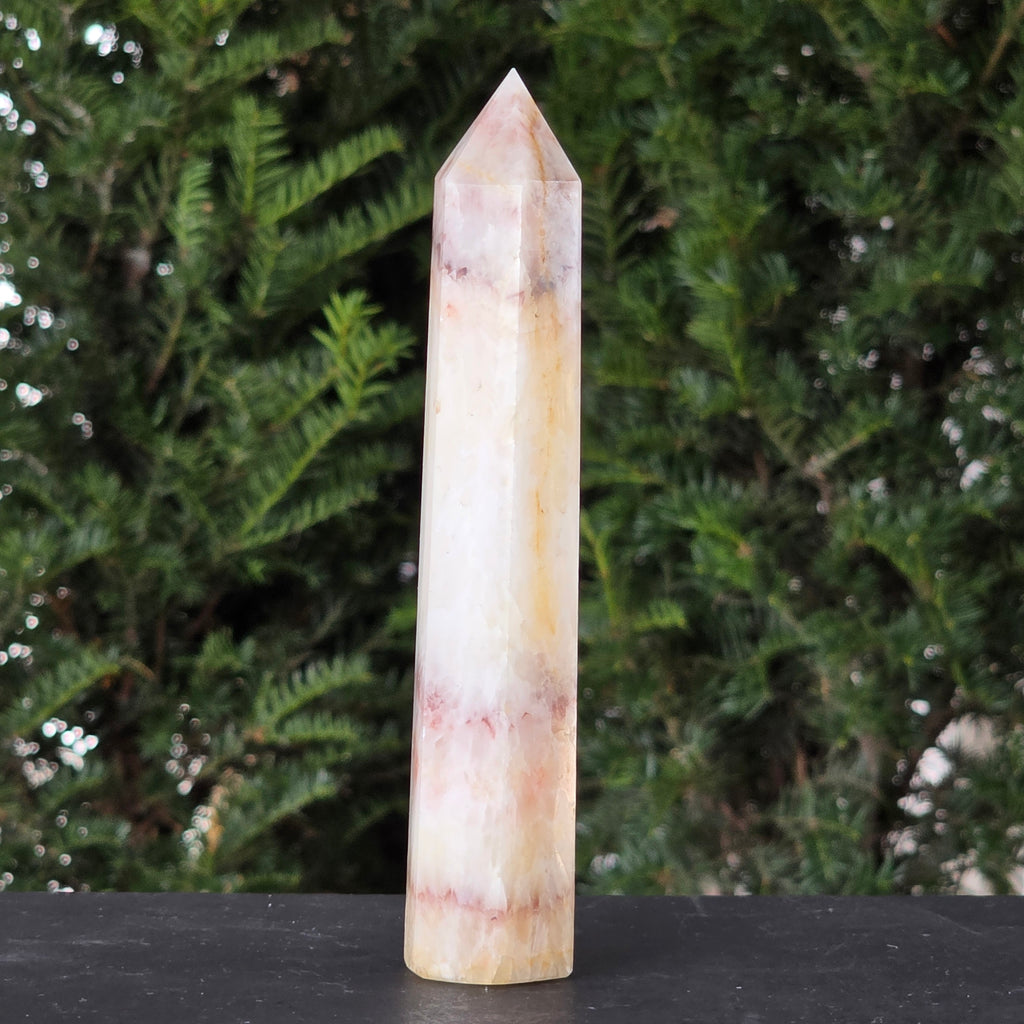 Această piatră fascinantă îmbină onixul portocaliu cu vene delicate de calcit, în straturi care par pictate de timp. Nuanțele vibrante de portocaliu, miere și chihlimbar pulsează cu energia vieții și aduc o notă de vitalitate oricărui spațiu. Este o piesă care trezește simțurile și inspiră creativitatea, dar păstrează în același timp un echilibru profund, ancorat în energia pământului.