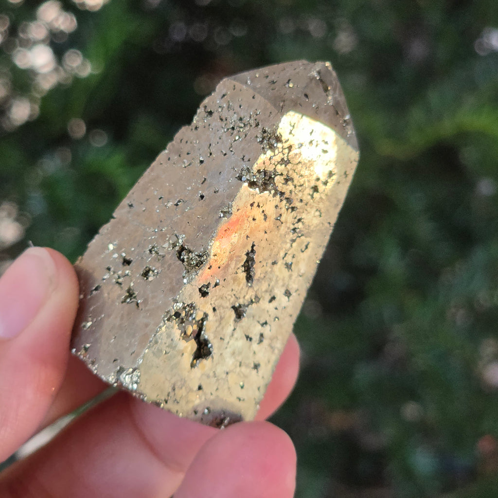 Obeliscul din pirita peruviană emană putere, abundență și claritate mentală. Fiecare reflex auriu amintește de lumina conștienței și de forța interioară care transformă intențiile în realitate. O piesă spectaculoasă, potrivită atât pentru colecționari, cât și ca obiect decorativ cu energie vibrantă.