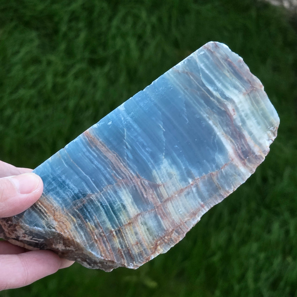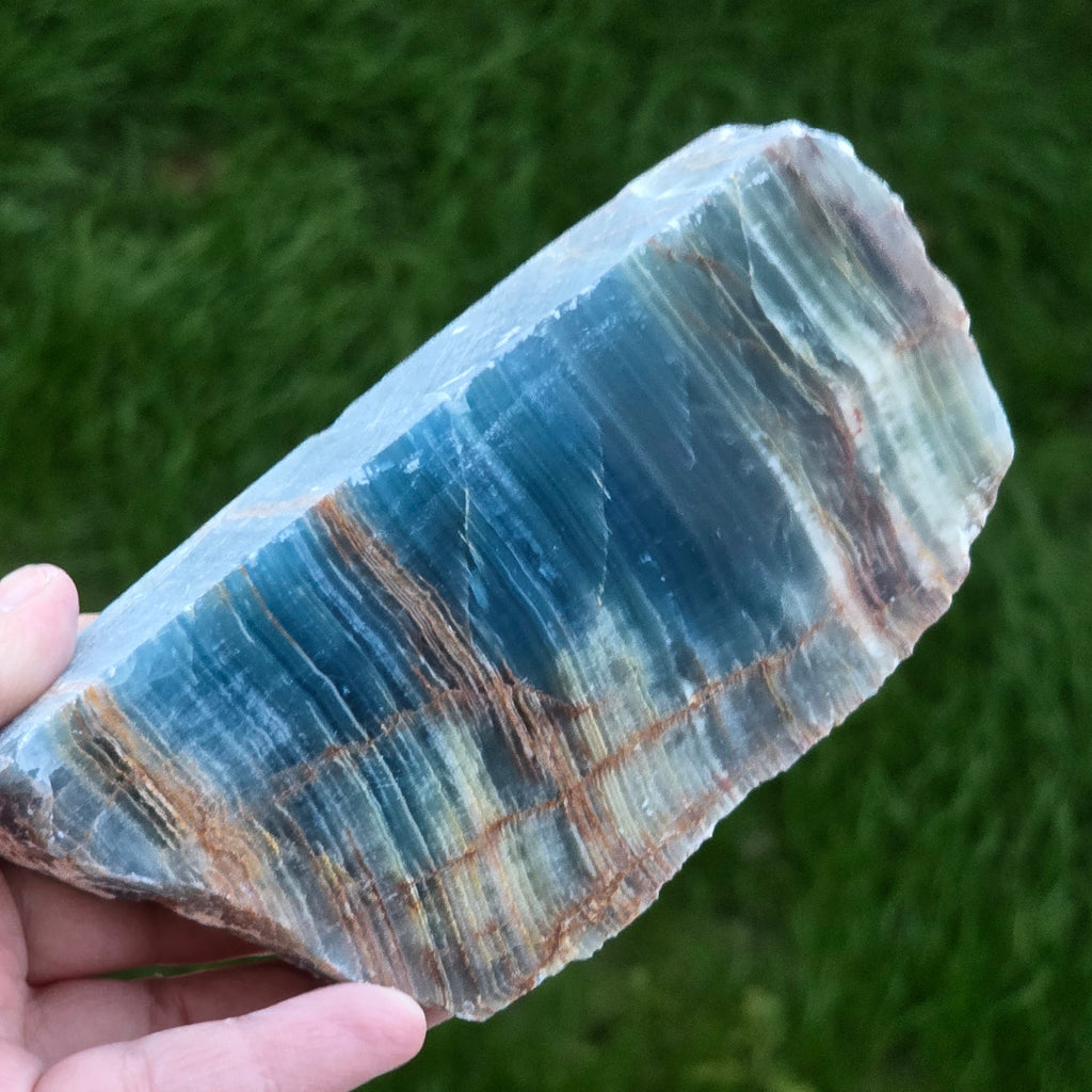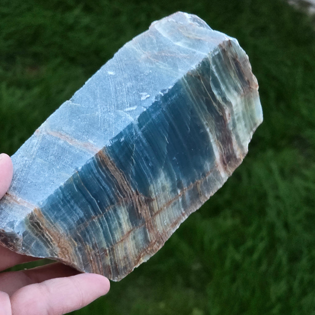 Onix albastru piatra bruta polisata pe o față | Model 2