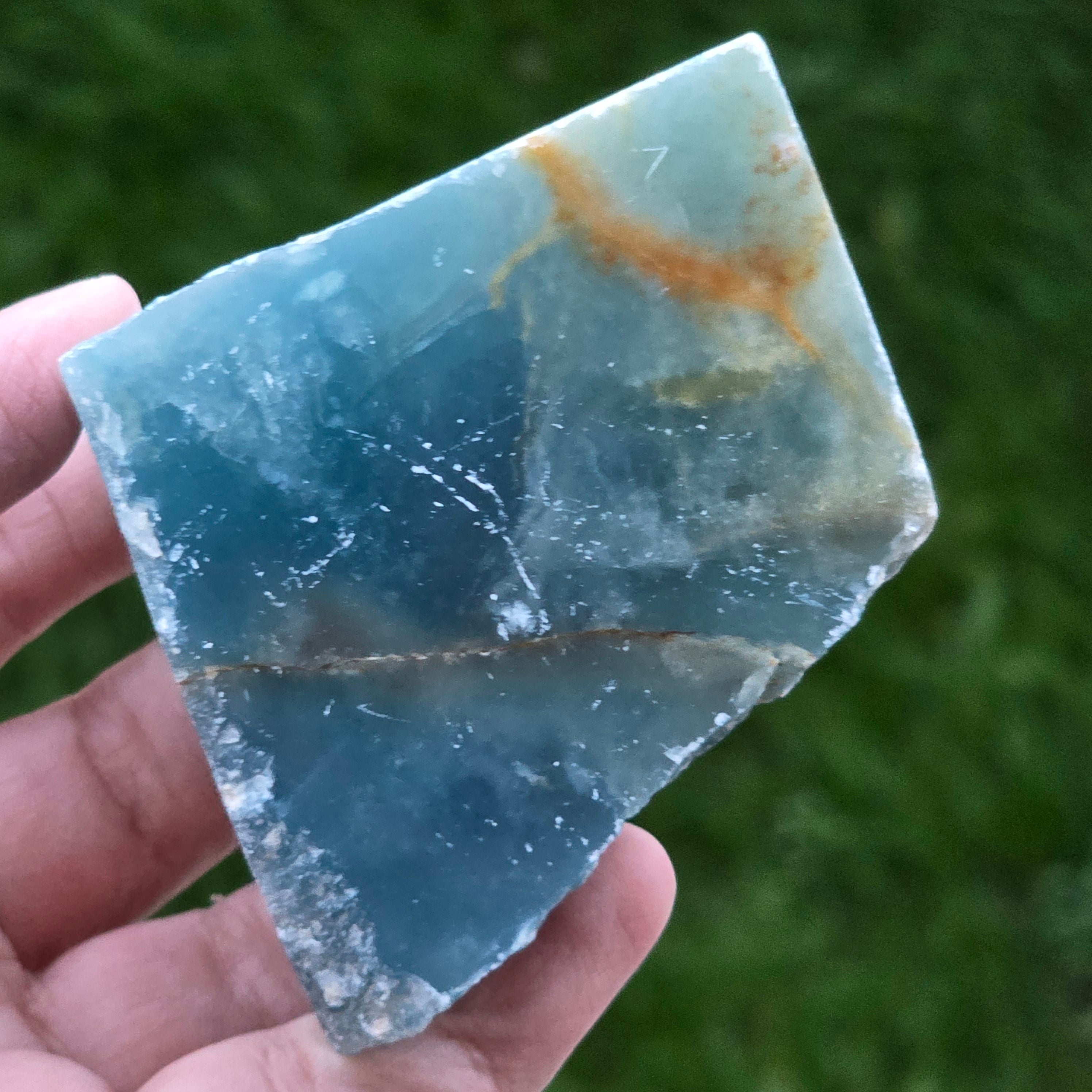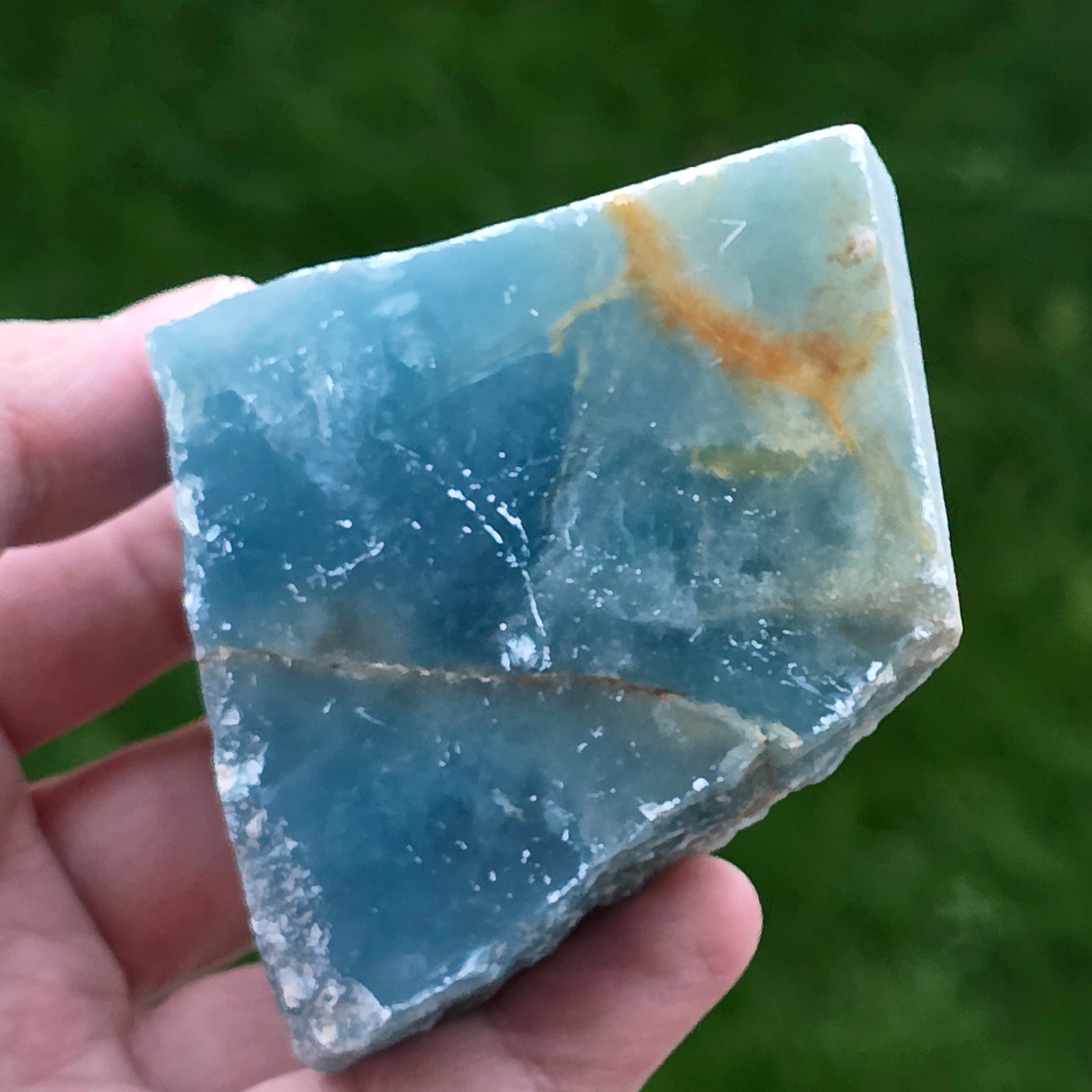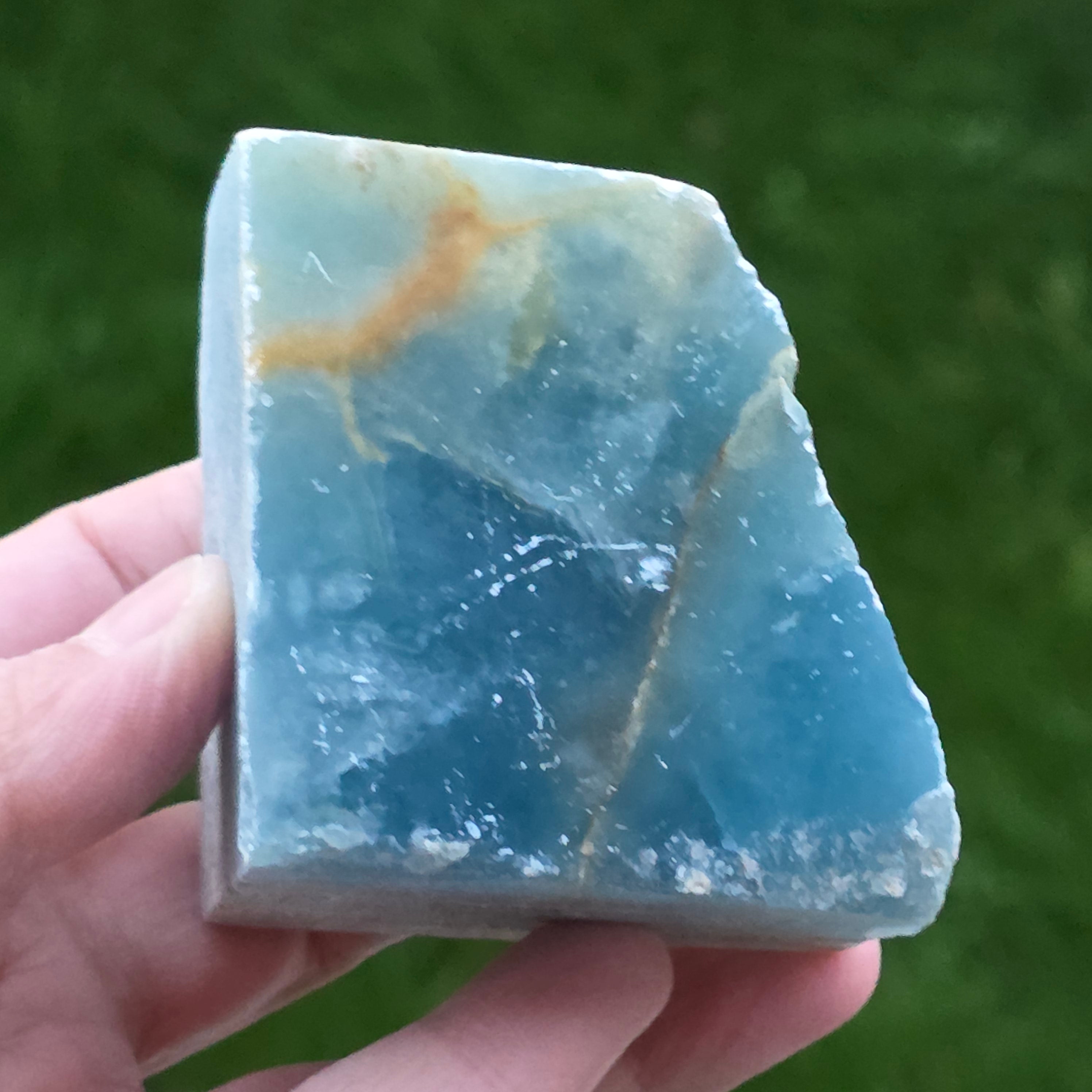 Onix albastru piatra bruta polisata pe o față | Model 4