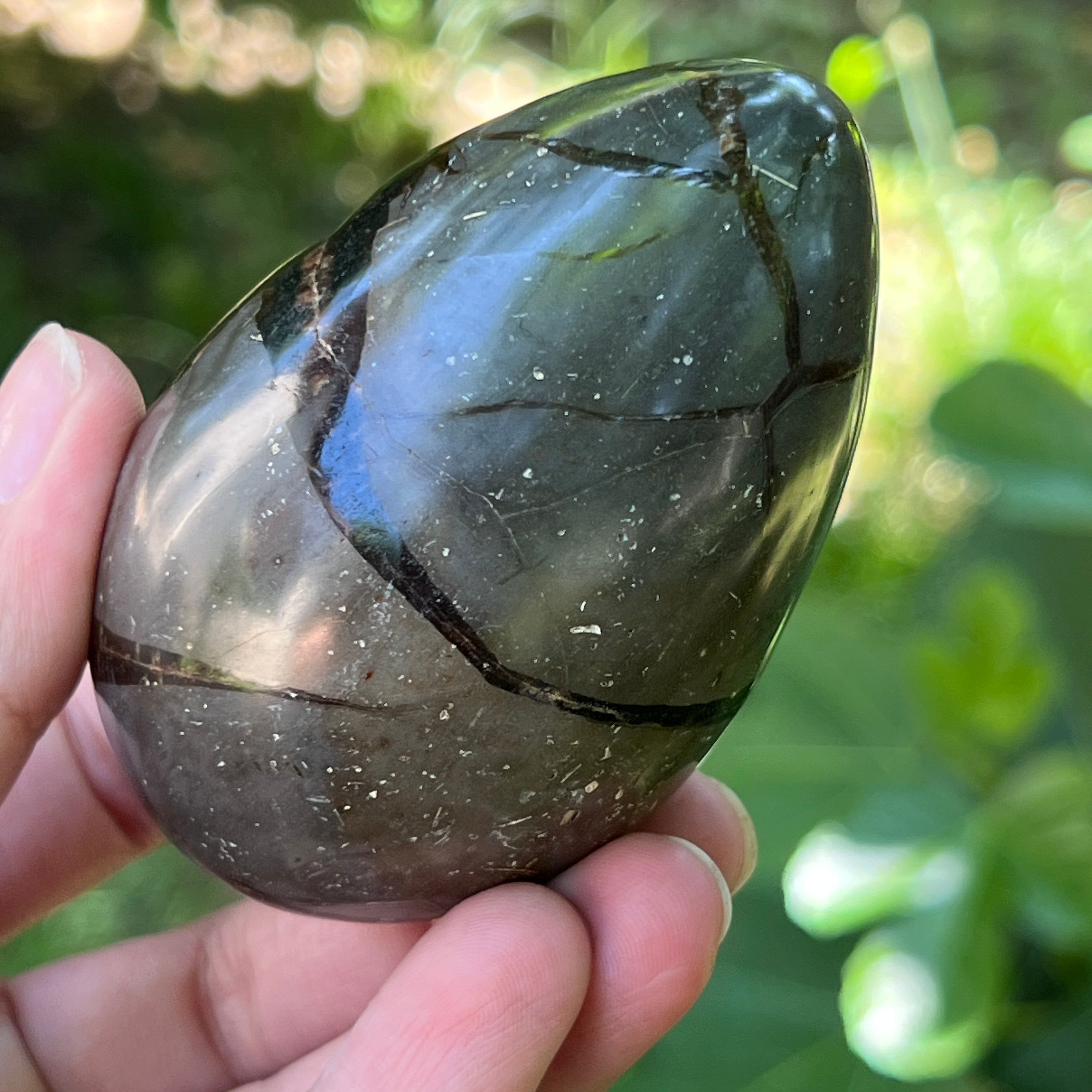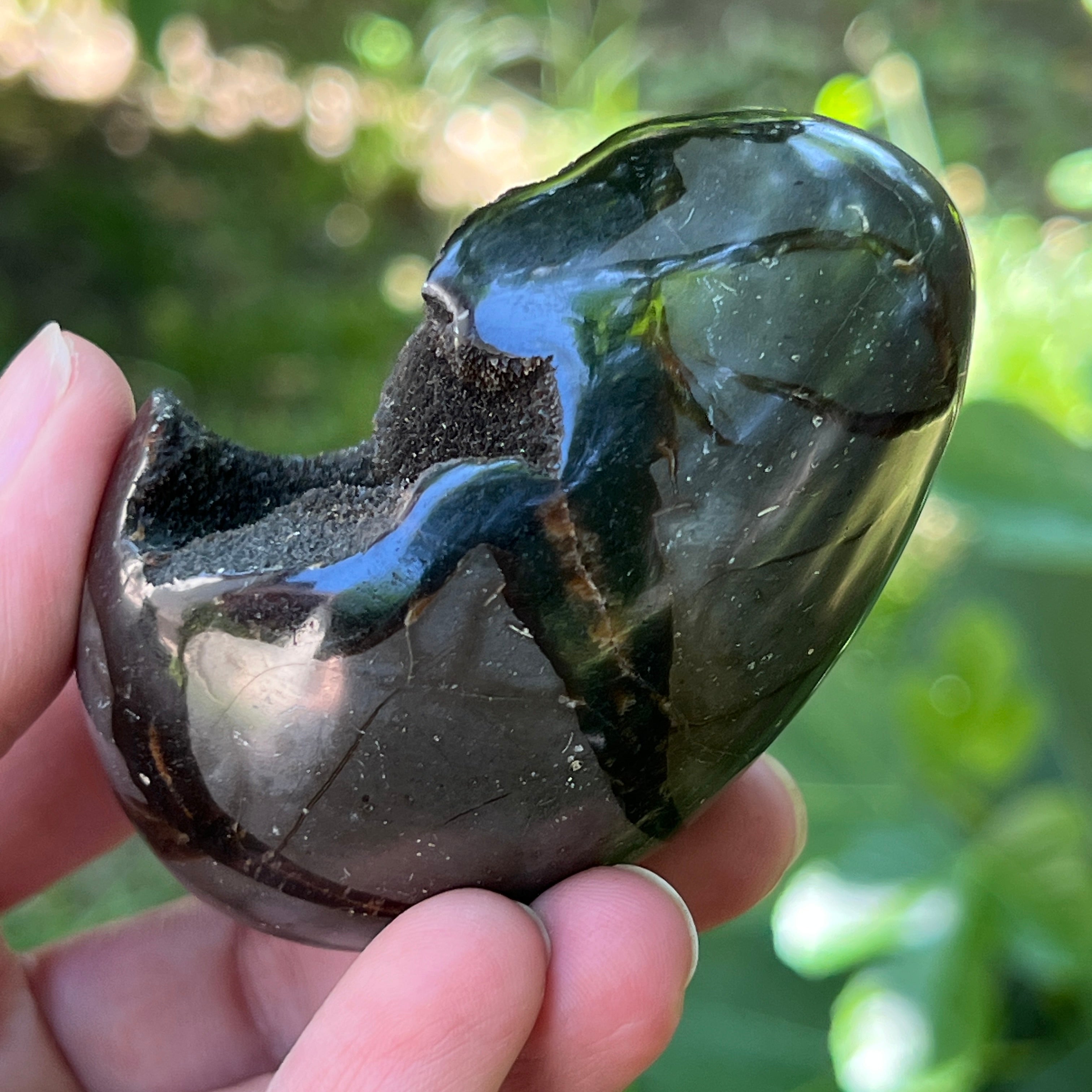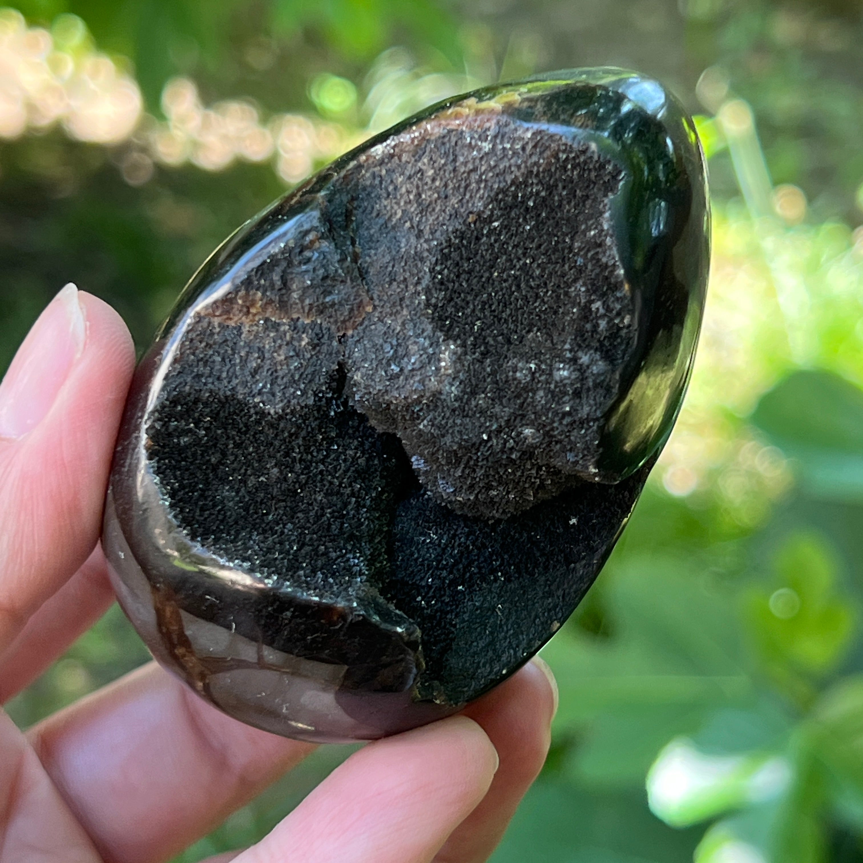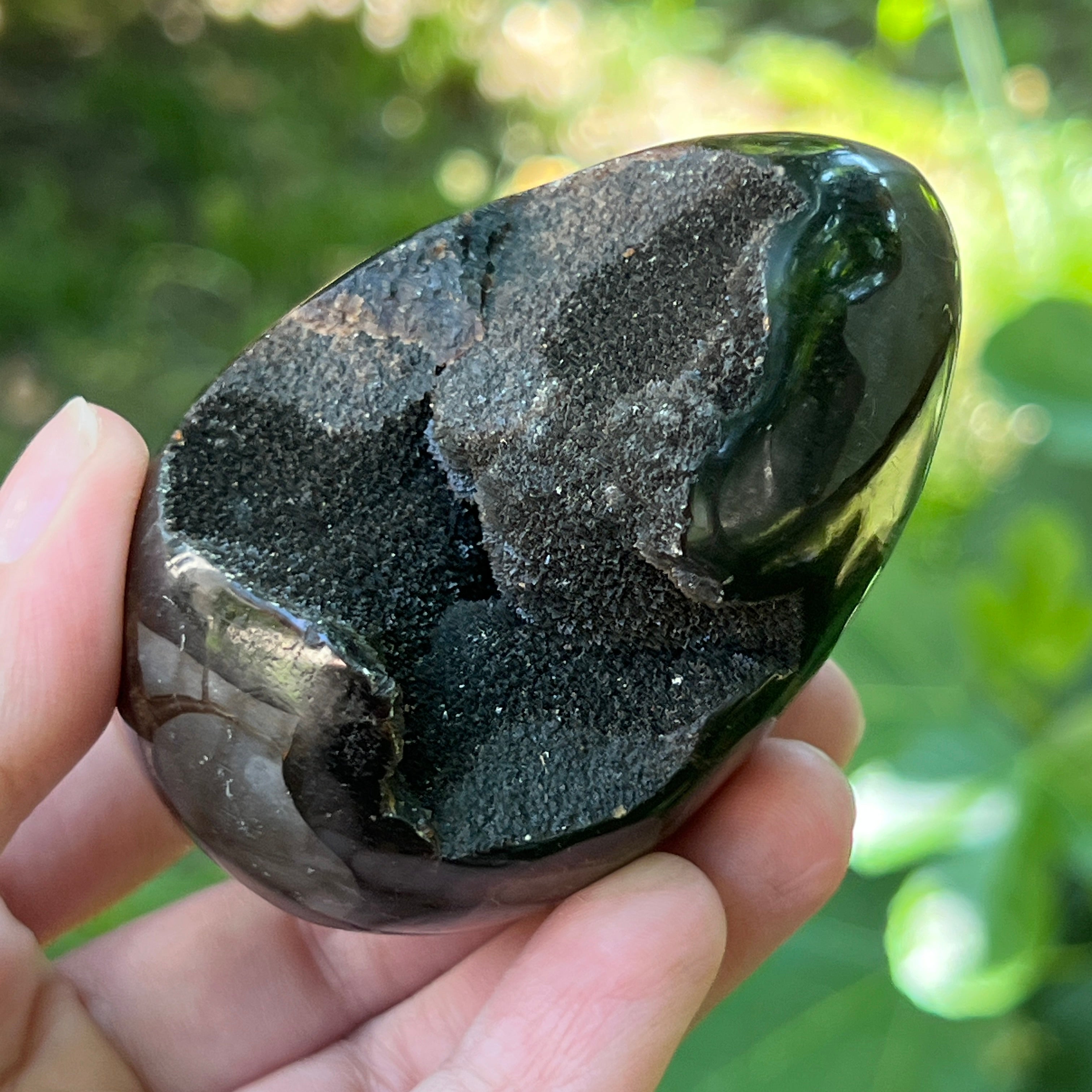 Το Septaria αποτελείται από ασβεστίτη, λιμονίτη, γύψο και βαριτίνη, ορυκτά που σχηματίζουν ένα μοναδικό παιχνίδι σε αυτή την πέτρα και δίνουν μια ιδιαίτερη εμφάνιση.