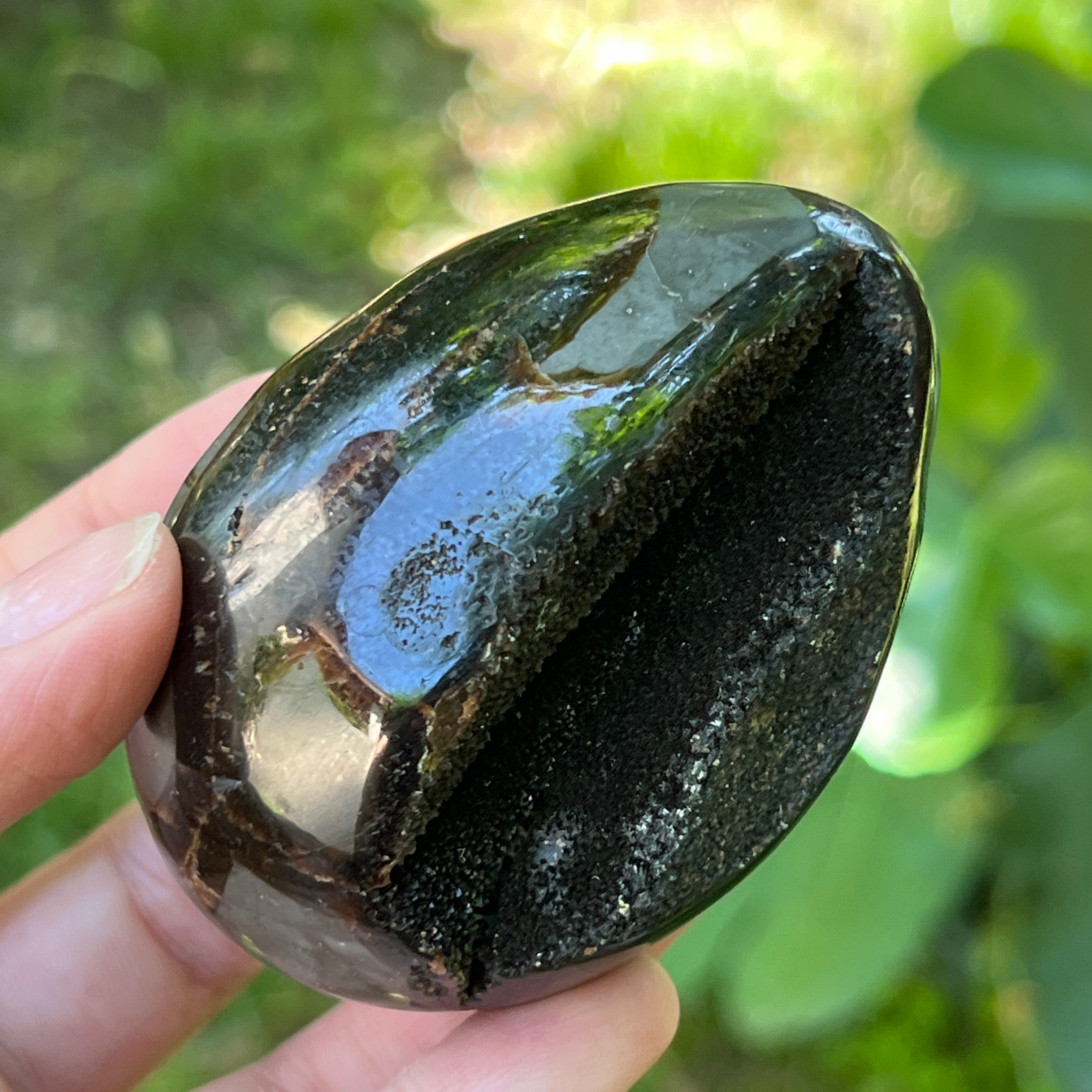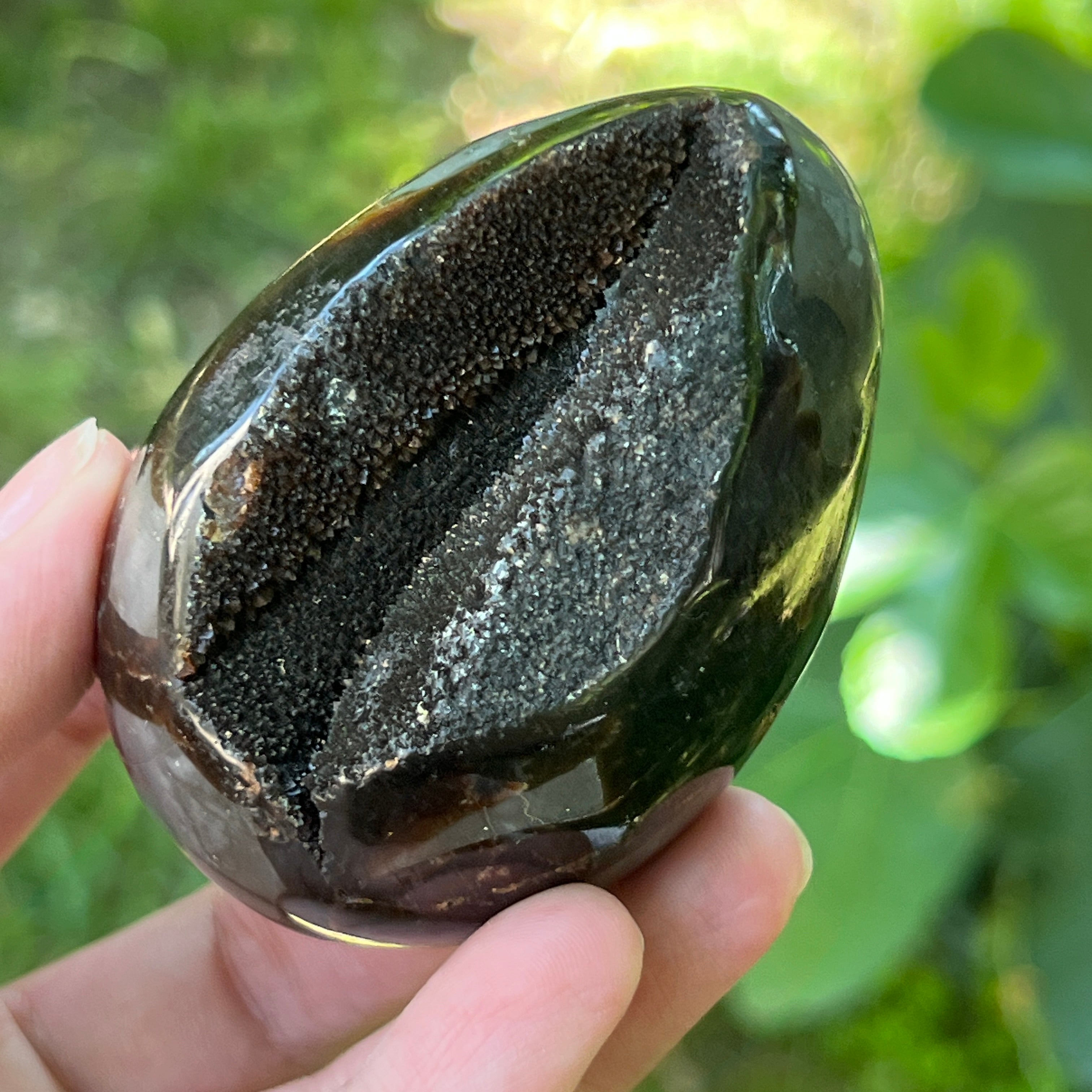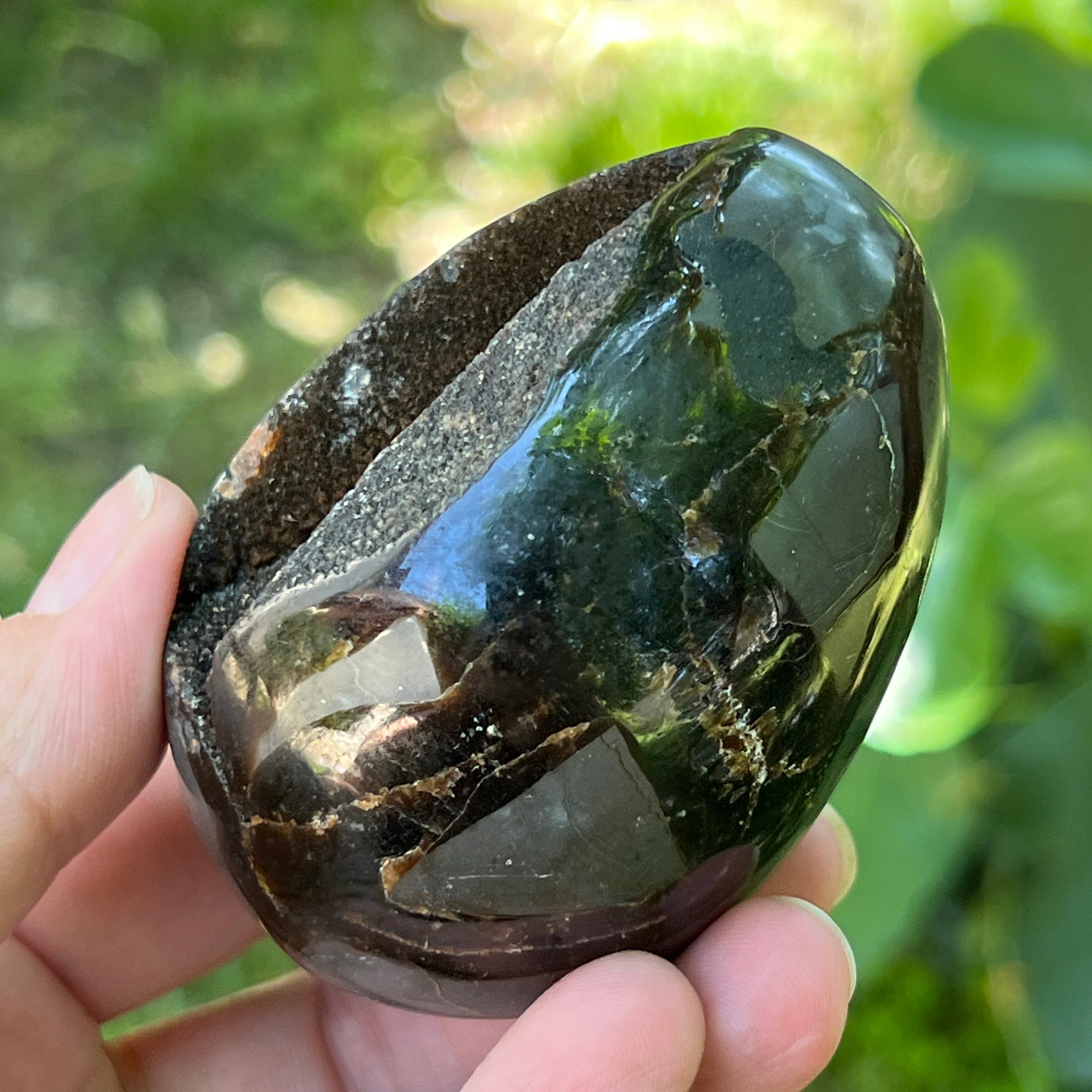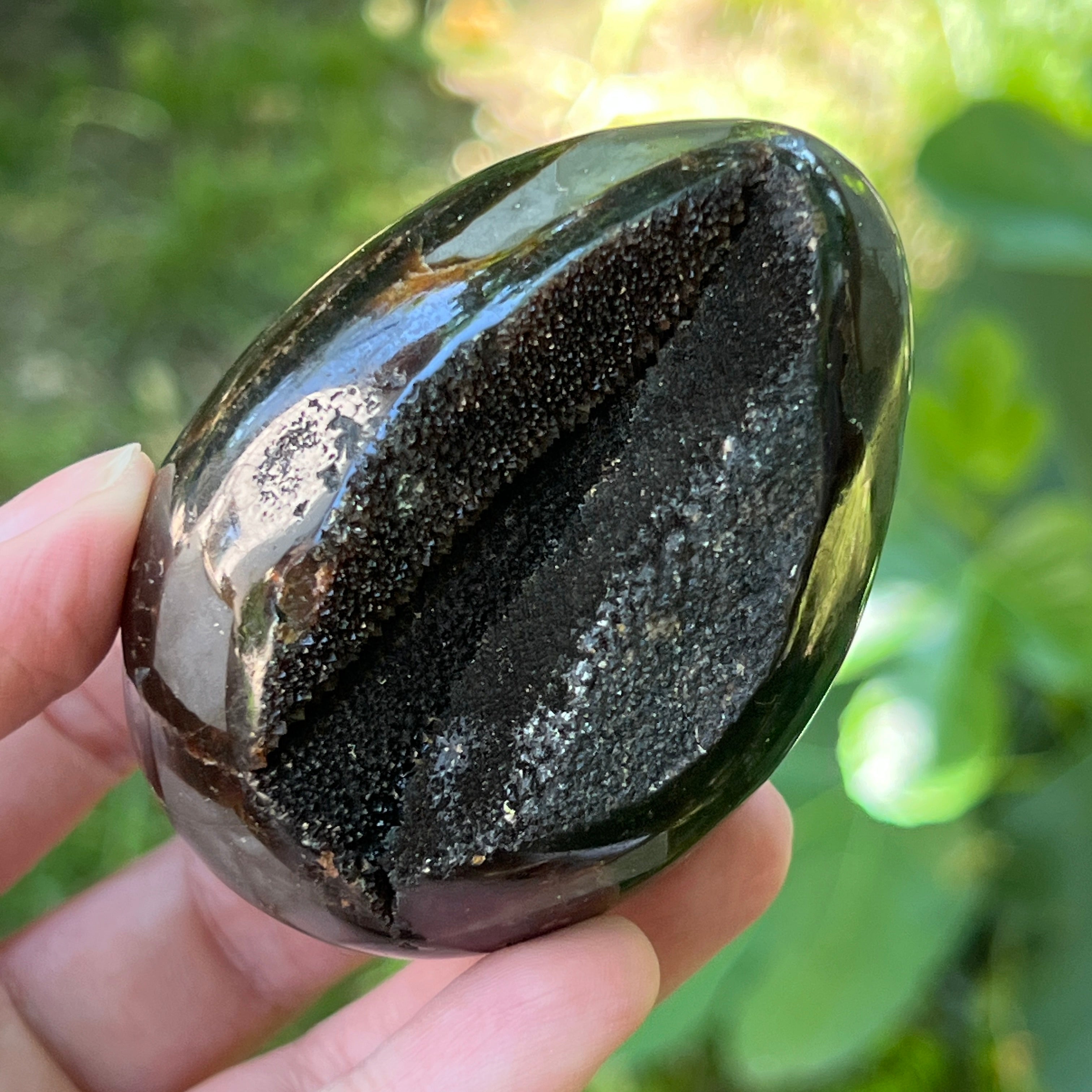 Το Septaria αποτελείται από ασβεστίτη, λιμονίτη, γύψο και βαριτίνη, ορυκτά που σχηματίζουν ένα μοναδικό παιχνίδι σε αυτή την πέτρα και δίνουν μια ιδιαίτερη εμφάνιση.