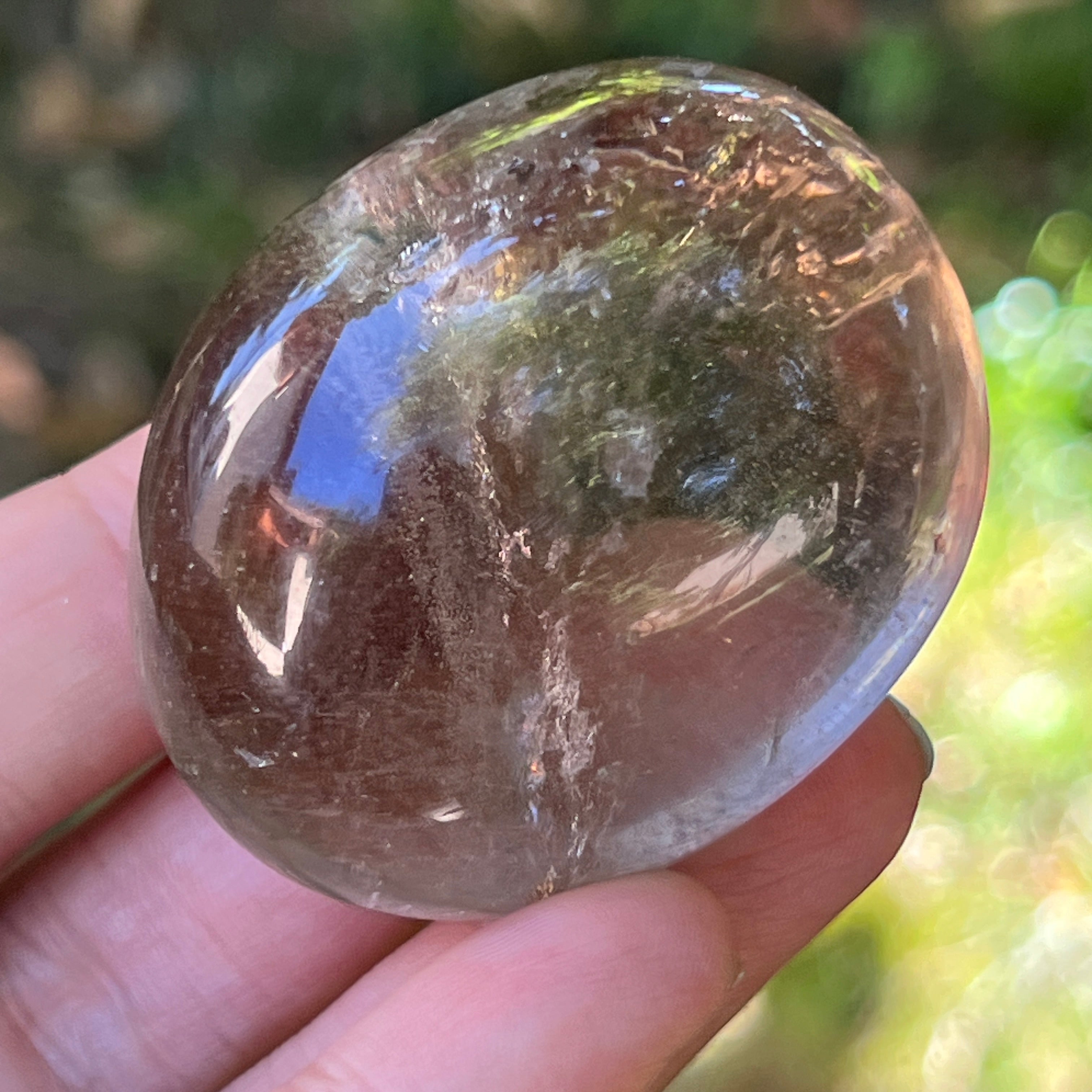 Προσεκτικά διαμορφωμένο για να ταιριάζει απόλυτα στην παλάμη, αυτό το καπνιστό χαλαζία Palmstone δεν είναι μόνο μια πέτρα - είναι ένα σημείο υποστήριξης στη μέση της καθημερινής αναταραχής. Με τις αποχρώσεις της γης, από καφέ ημιδιαφανές έως βαθύτερους τόνους, ο καπνιστής χαλαζία φέρει σε αυτό την ησυχία των παλιών βράχων και την υπομονή των βουνών.