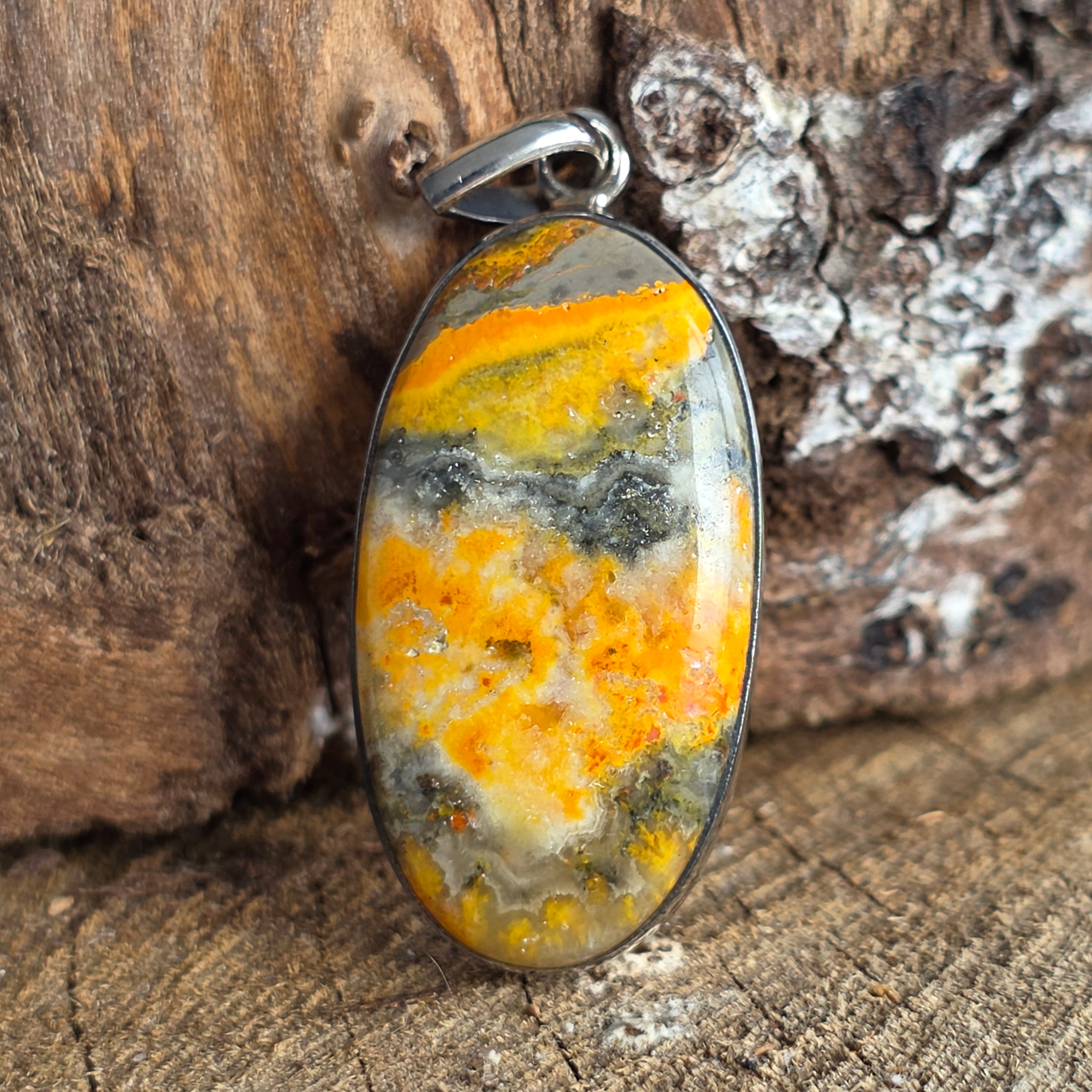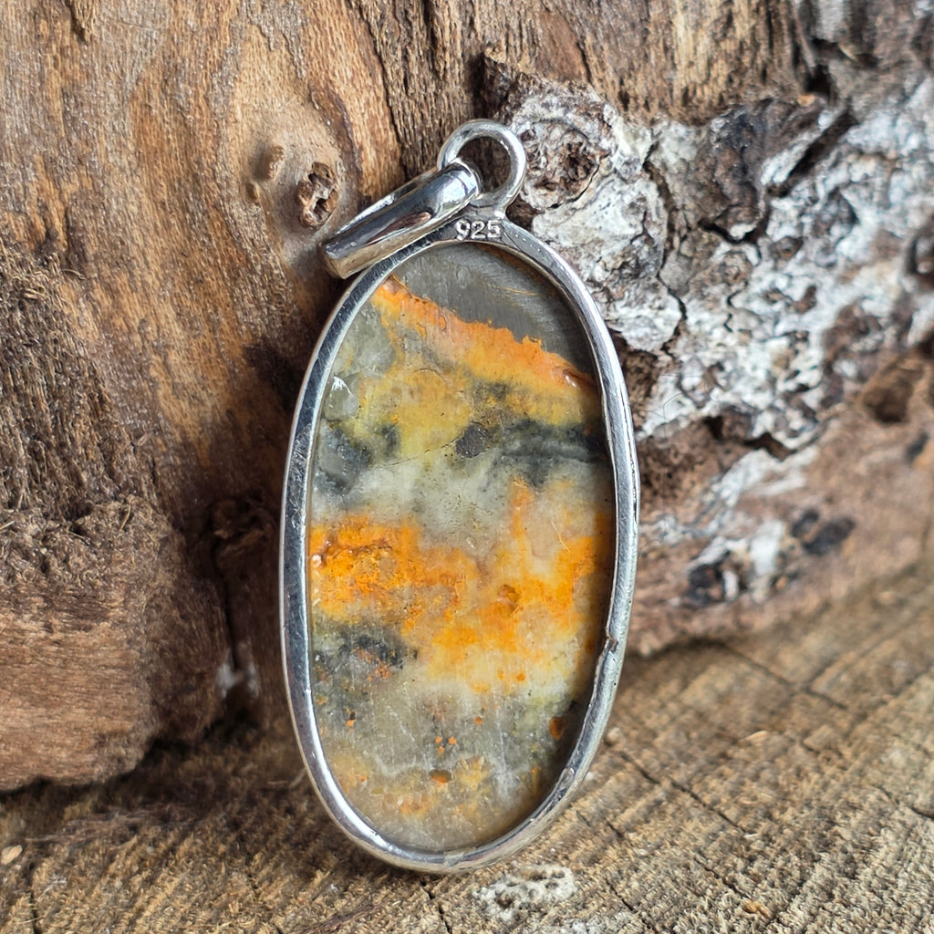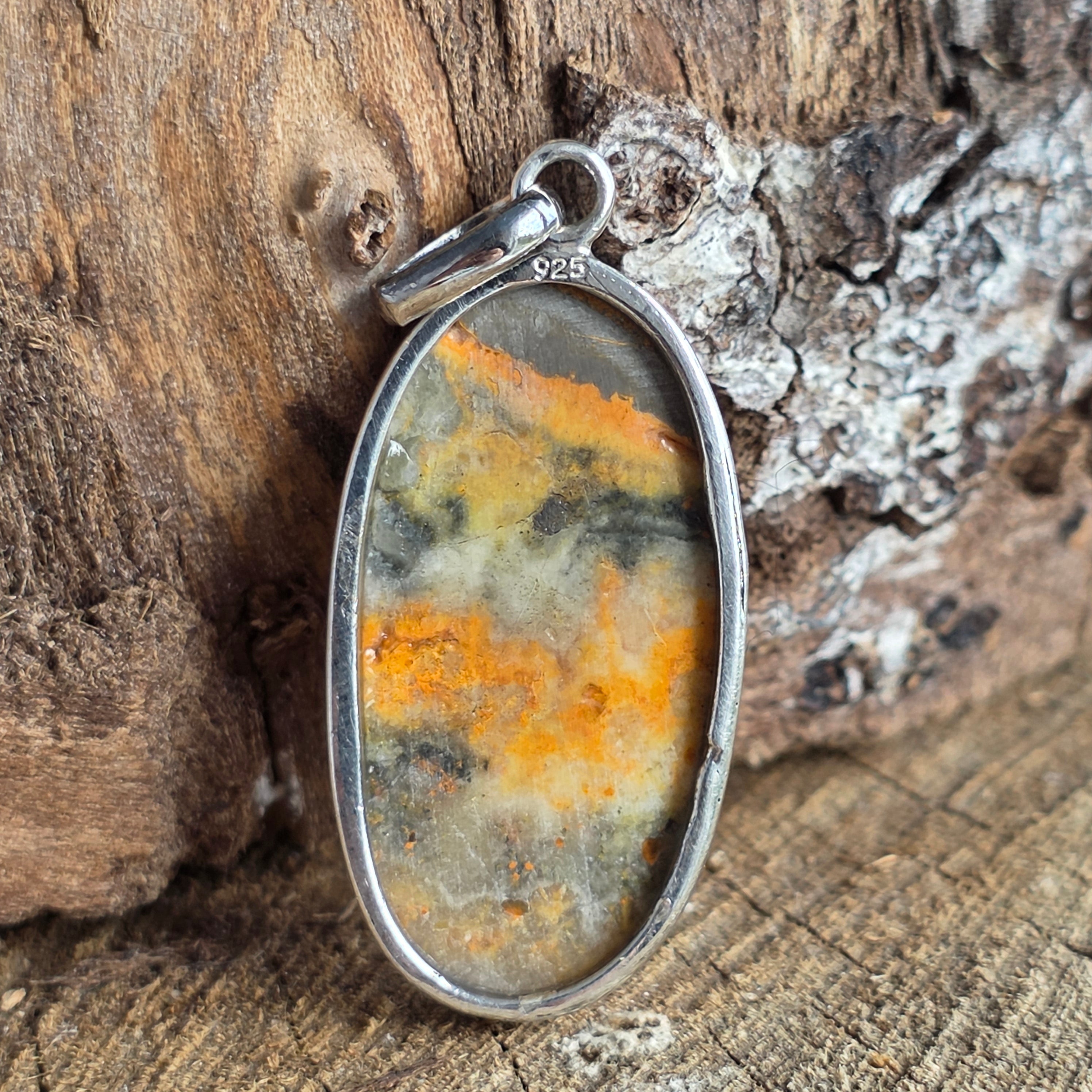 • Piatra: Bumblebee Jasp natural (nuanțe galben-portocalii cu incluziuni gri și ocru) model unicat – primești exact produsul prezentat în imagini
