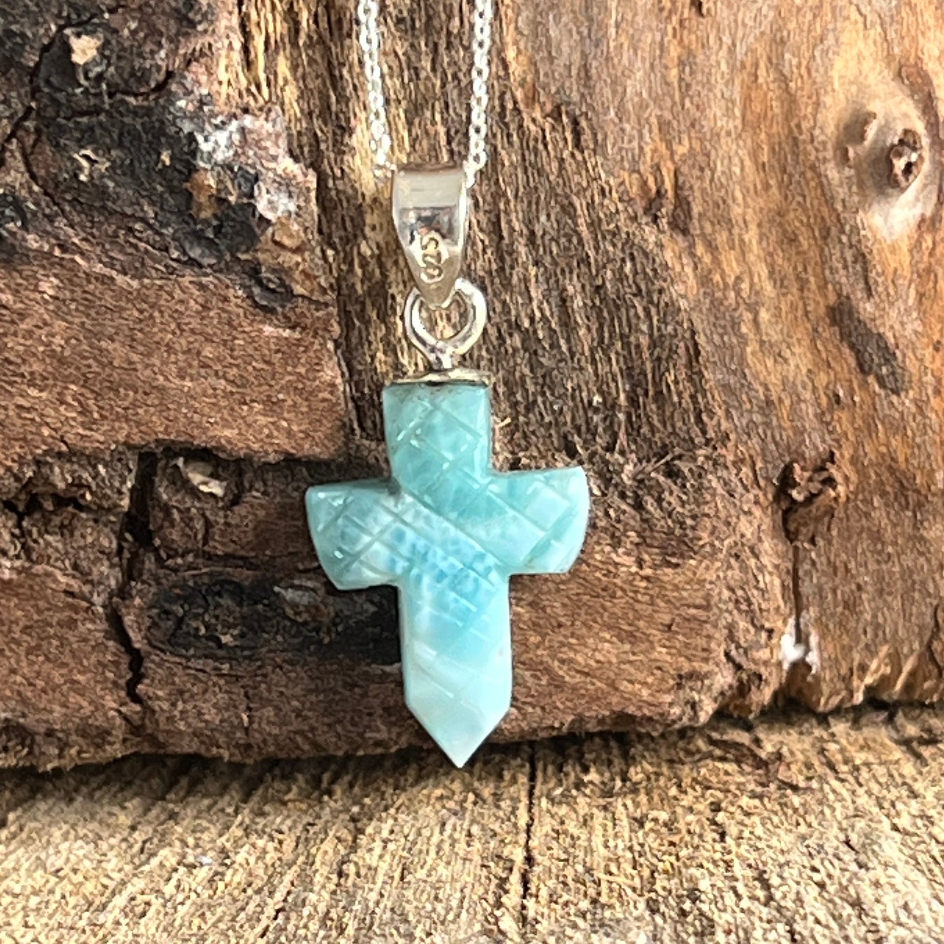 Περιγραφή - Pandantiv cruce argint larimar | Model 1