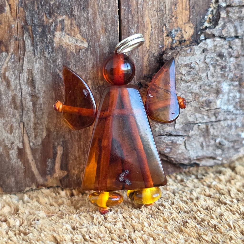Un simbol al protecției și al luminii, acest pandantiv înger din chihlimbar natural este o bijuterie care emană căldură și liniște. Sculptat cu finețe din rășină fosilizată, păstrează în el amintirea pădurilor străvechi și energia blândă a soarelui care l-a modelat de-a lungul milioanelor de ani.
