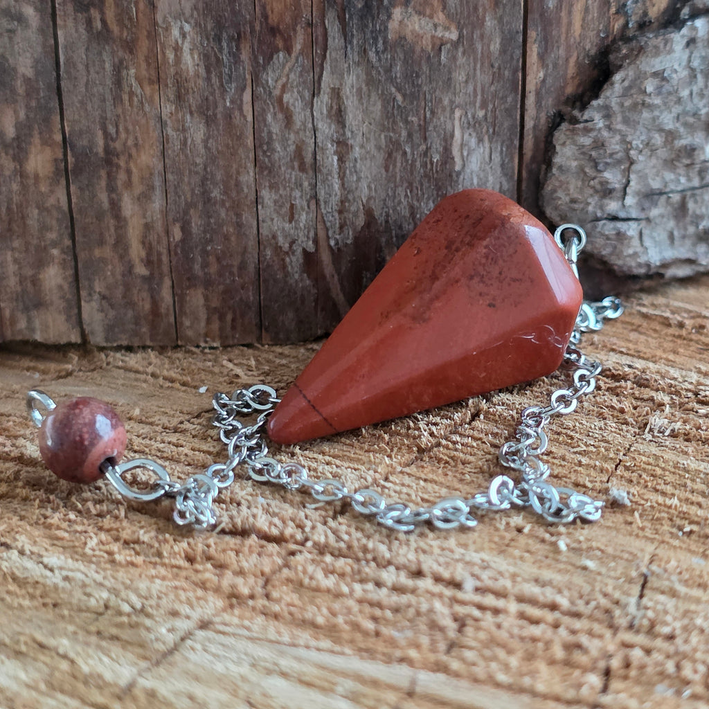Pendulul din Jasp Roșu este o piesă mică, dar plină de intensitate și caracter – un instrument clasic pentru lucru energetic, rafinat prin simplitatea lui naturală. Jaspul roșu este apreciat pentru culoarea sa caldă, pământie, un roșu intens ce amintește de argilele fierbinți și de stabilitatea adâncurilor. În forma de pendul, această piatră capătă o eleganță aparte: un vârf perfect șlefuit, proporționat, capabil să se miște fluid în răspuns la întrebări, intenții și introspecție.