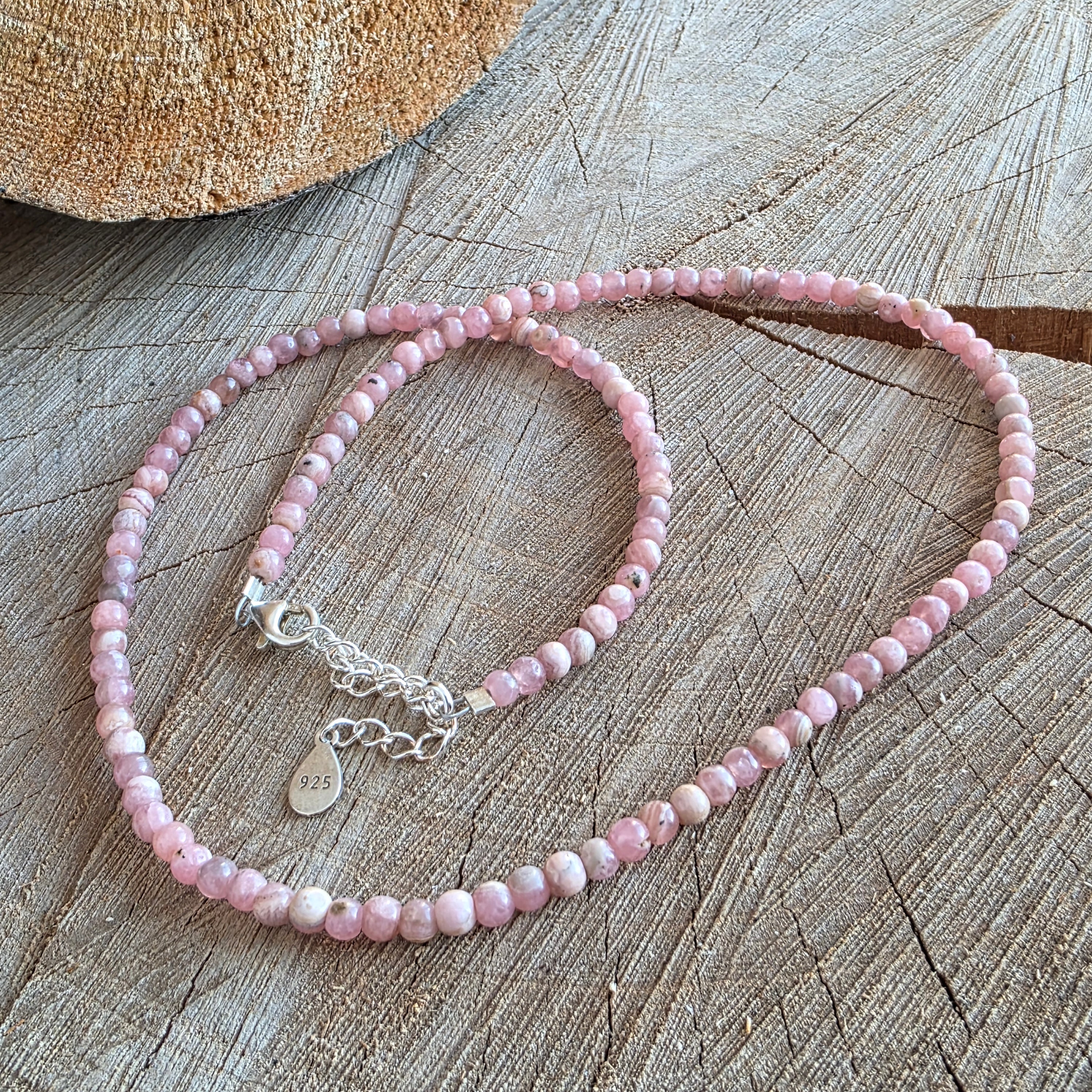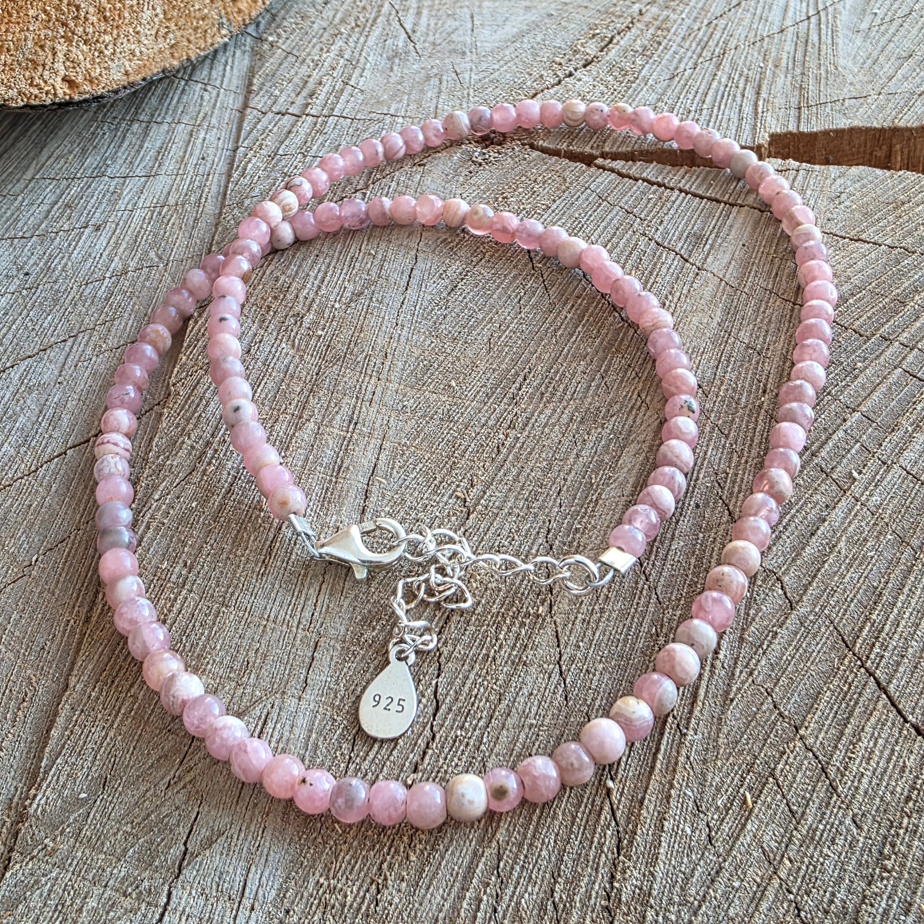 Υλικά: Φυσικό Rhodocrozit (σφαίρες 4 mm), αλυσίδα και 925 ασημένια διακοπή