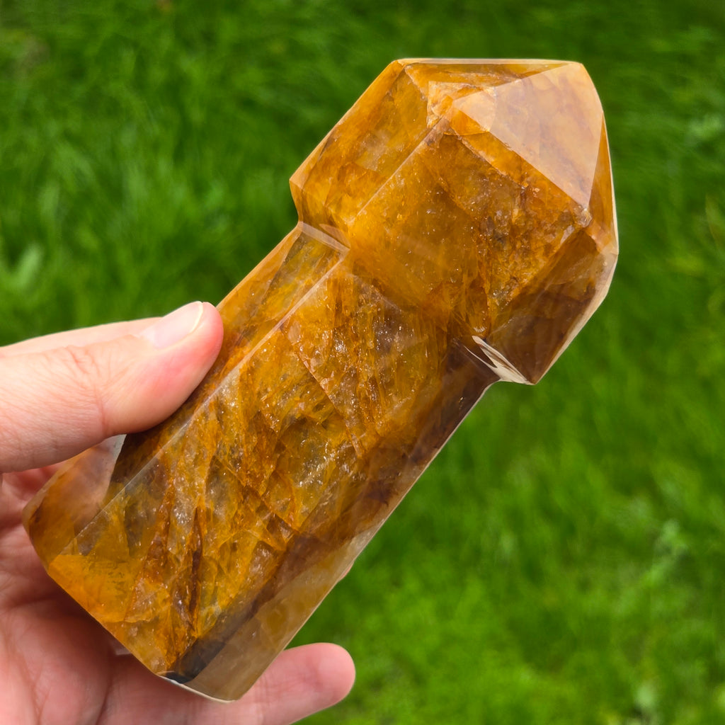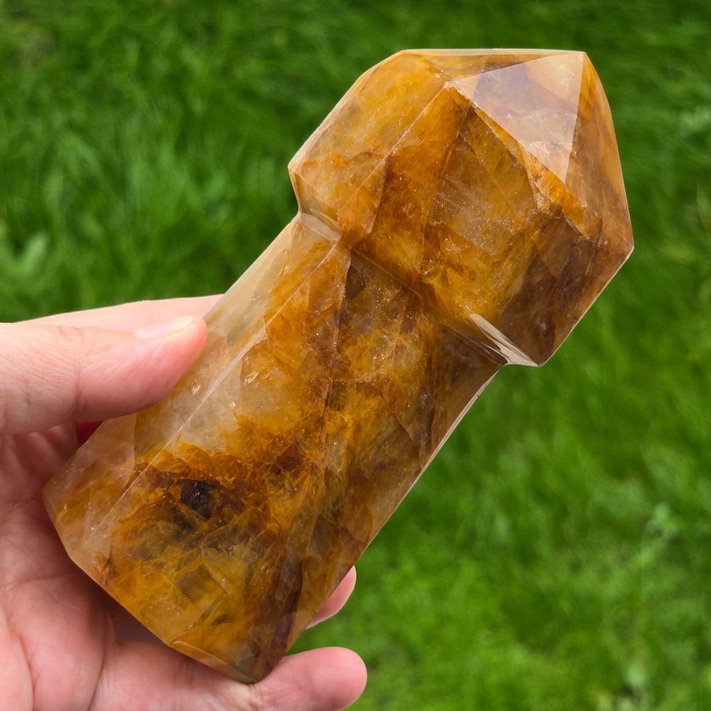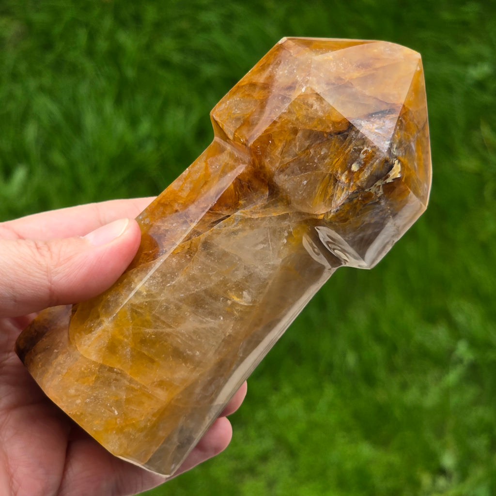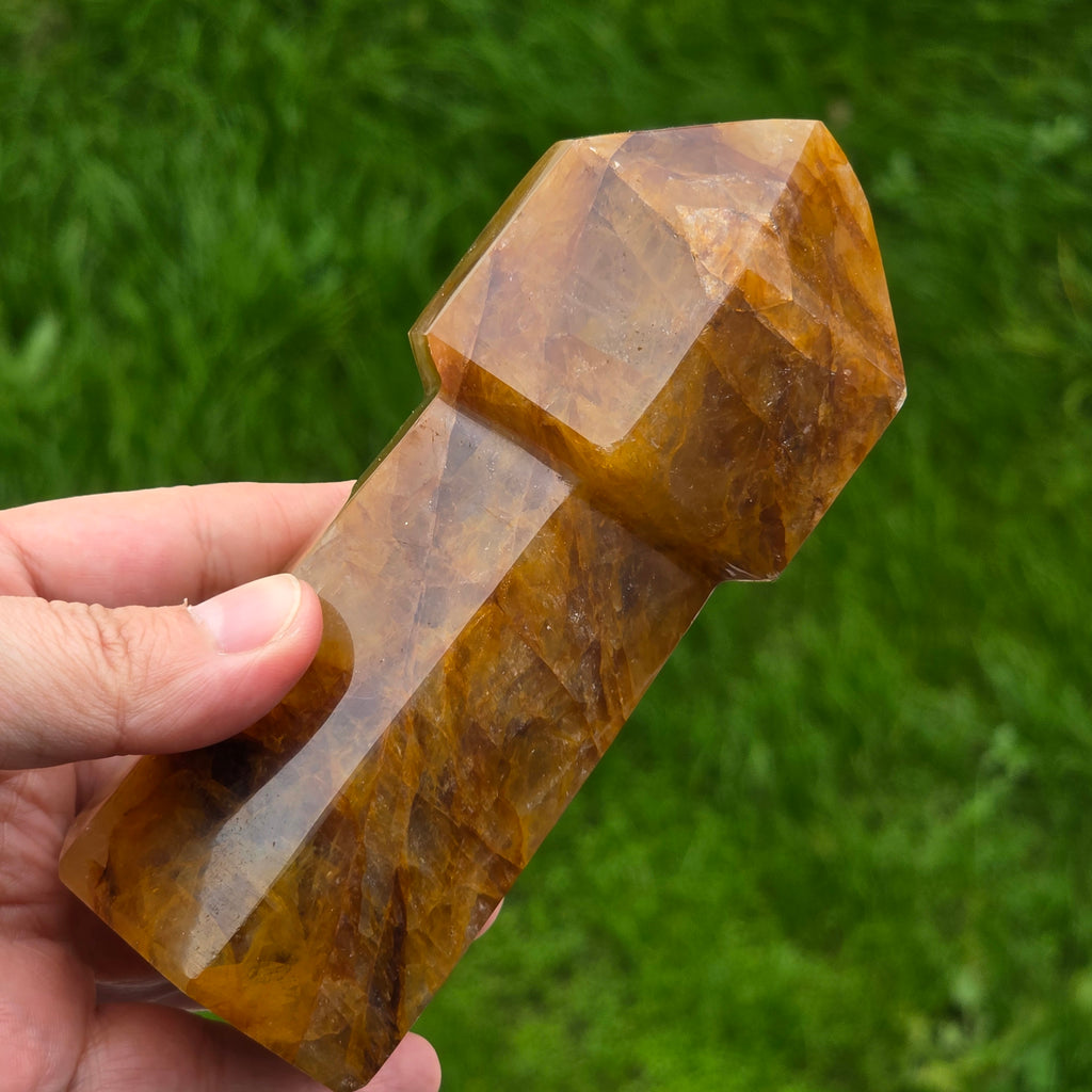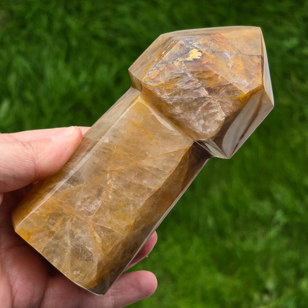 Sceptrul din Cuart Lămâie este o piesă luminoasă și expresivă, sculptată pentru a evidenția transparența blândă a cristalului și nuanțele sale calde de galben. Cuartul lămâie este cunoscut pentru claritatea sa vizuală și pentru reflexiile delicate care se formează atunci când este atins de lumină, iar forma de sceptru îi conferă o prezență elegantă și direcțională. În forma de sceptru, cristalul devine ideal pentru direcționarea energiei, lucrul pe meridiane, masaj energetic, activarea intențiilor și eliberarea tensiunilor din corp. Vârful său bine definit permite lucrul precis, iar partea inferioară stabilizează fluxul energetic în timpul meditației sau terapiei.