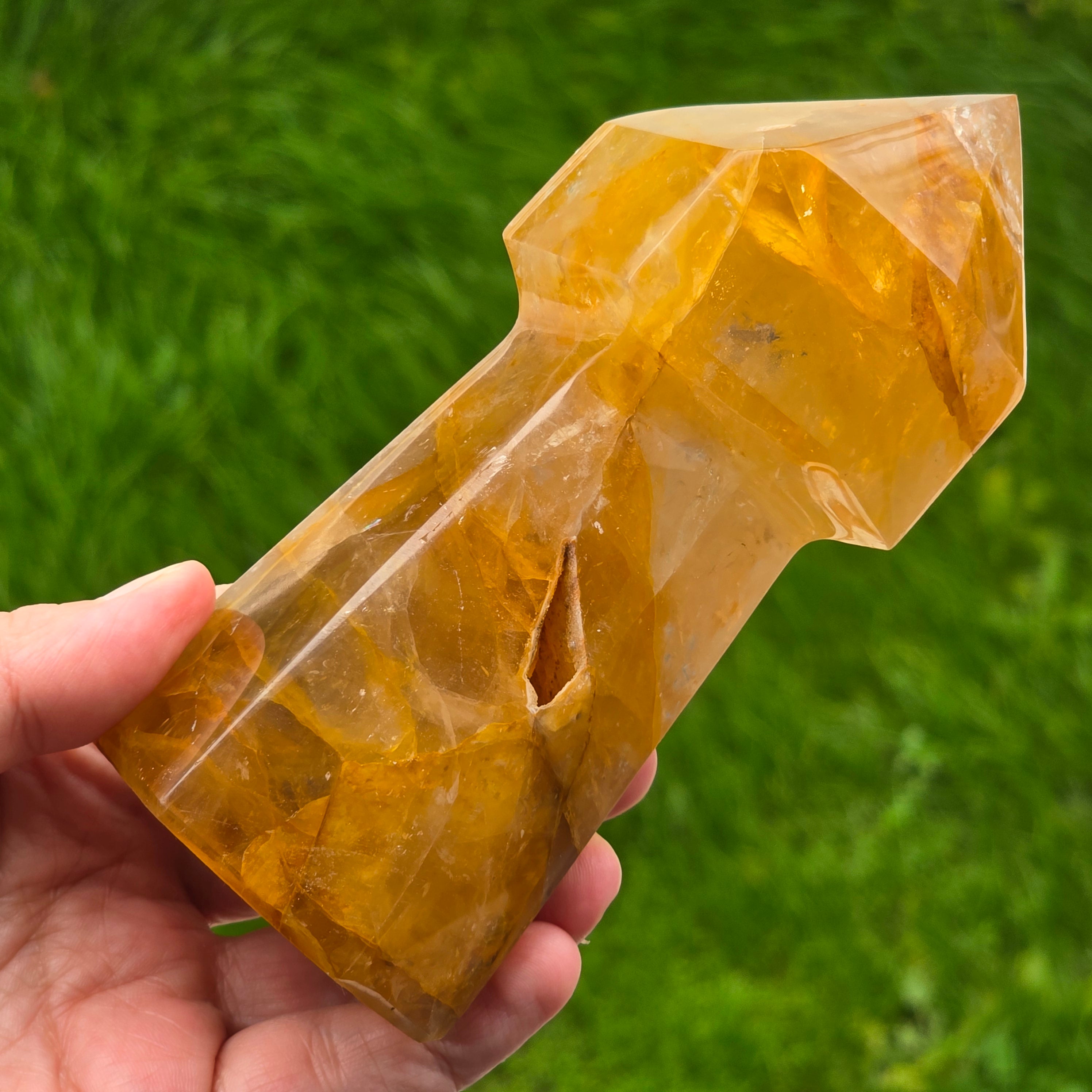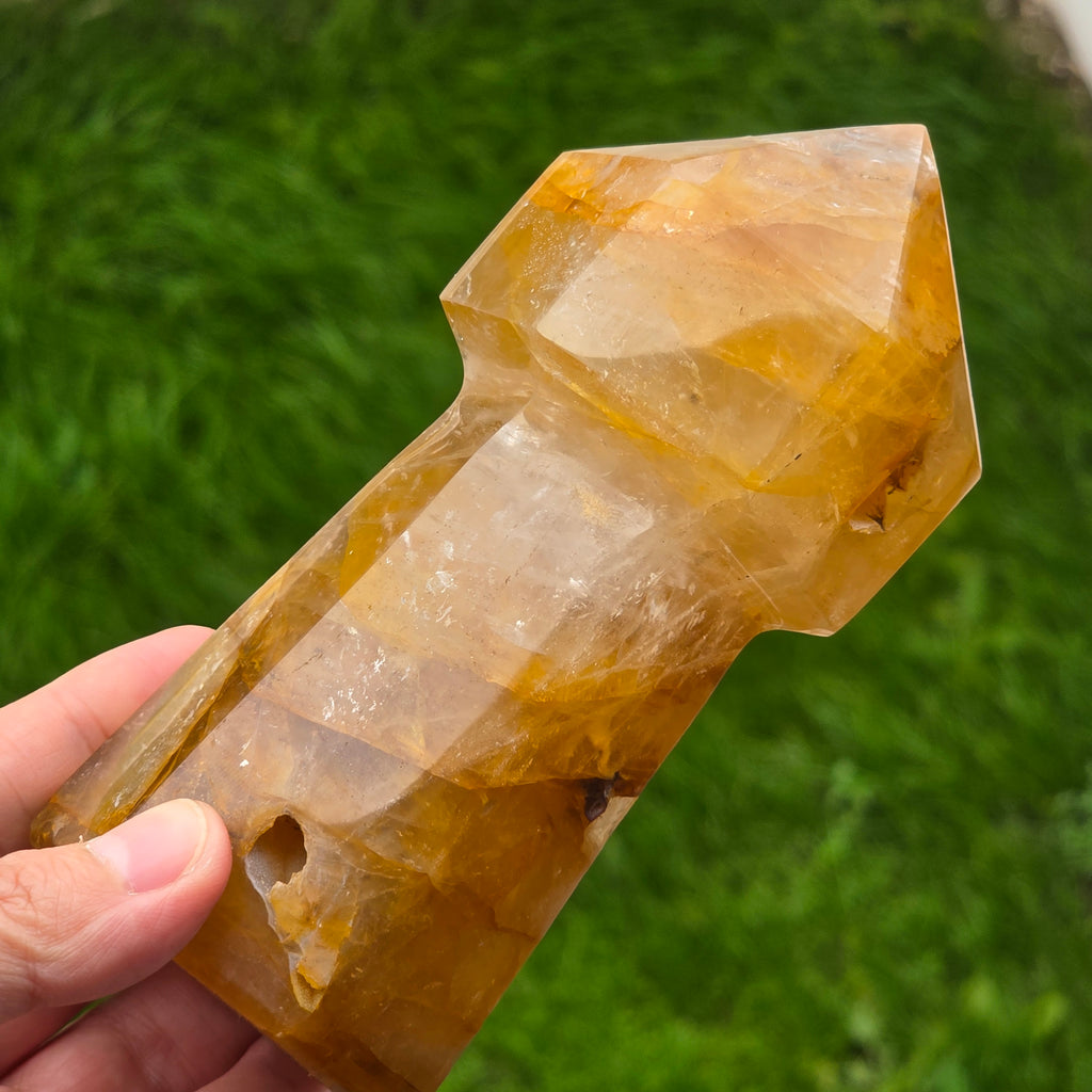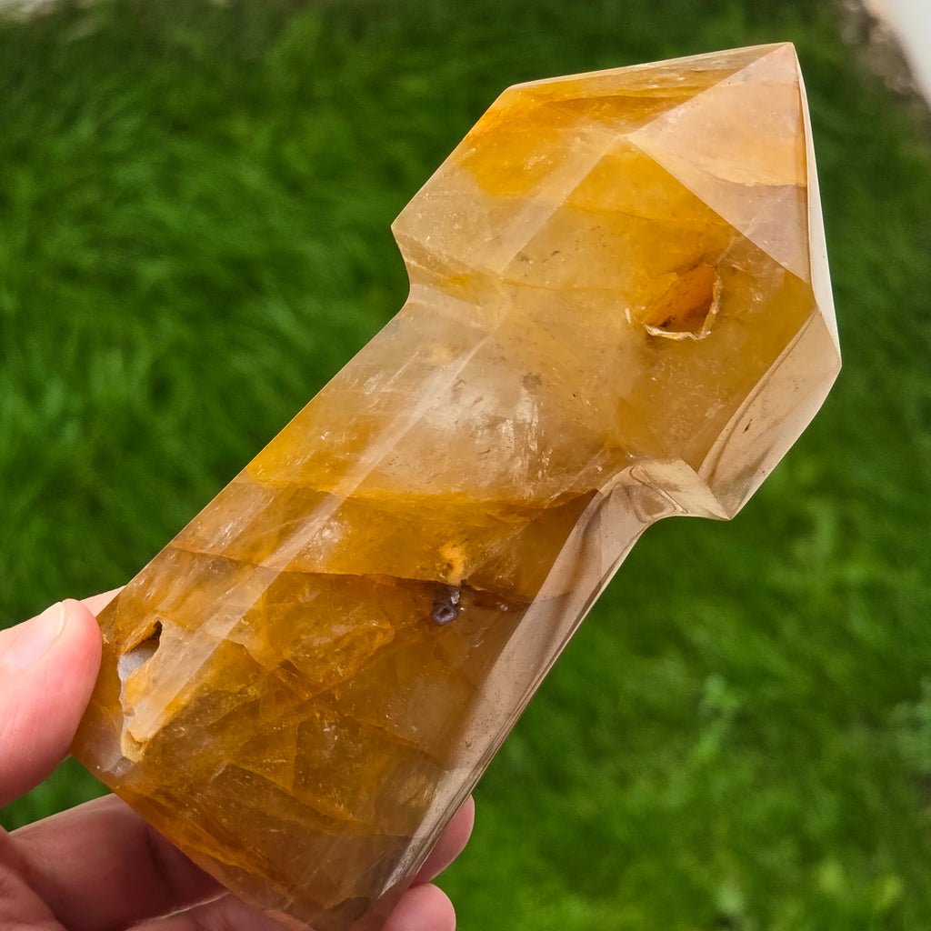 Sceptrul din Cuart Lămâie este o piesă luminoasă și expresivă, sculptată pentru a evidenția transparența blândă a cristalului și nuanțele sale calde de galben. Cuartul lămâie este cunoscut pentru claritatea sa vizuală și pentru reflexiile delicate care se formează atunci când este atins de lumină, iar forma de sceptru îi conferă o prezență elegantă și direcțională. În forma de sceptru, cristalul devine ideal pentru direcționarea energiei, lucrul pe meridiane, masaj energetic, activarea intențiilor și eliberarea tensiunilor din corp. Vârful său bine definit permite lucrul precis, iar partea inferioară stabilizează fluxul energetic în timpul meditației sau terapiei.