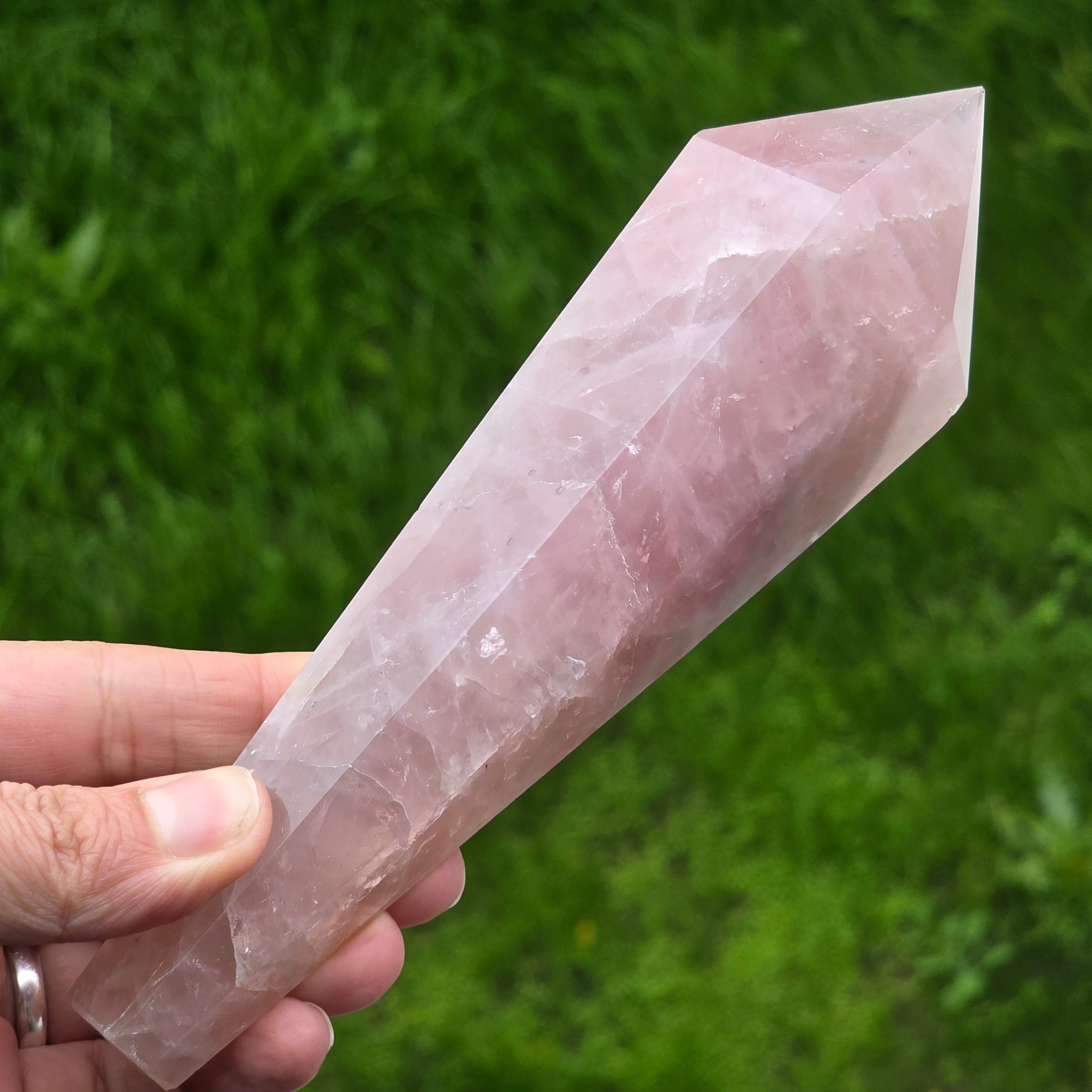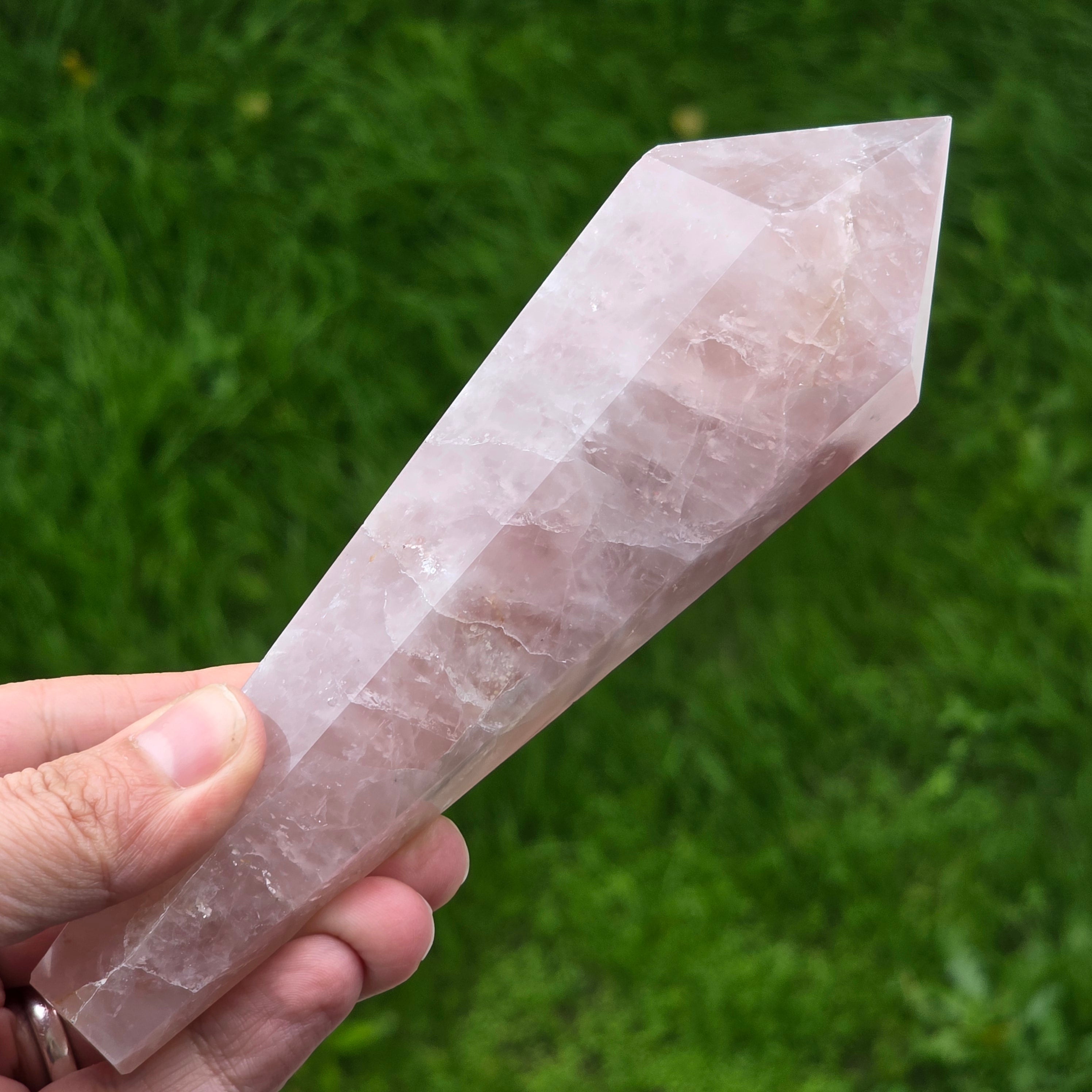 Sceptrul din cuart roz este un instrument folosit în special în practici energetice, masaj holistic și meditație. Forma sa alungită și vârful bine definit permit direcționarea intenției, echilibrarea fluxului energetic și focalizarea atenției în zonele în care ai nevoie de calm sau claritate. Este utilizat deseori pentru masaj energetic, fiind ideal pentru trasee lungi pe meridiane, pentru relaxarea zonei umerilor, spatelui sau palmelor. În meditație, poate fi ținut în mână pentru a amplifica starea de liniște și conectare interioară.