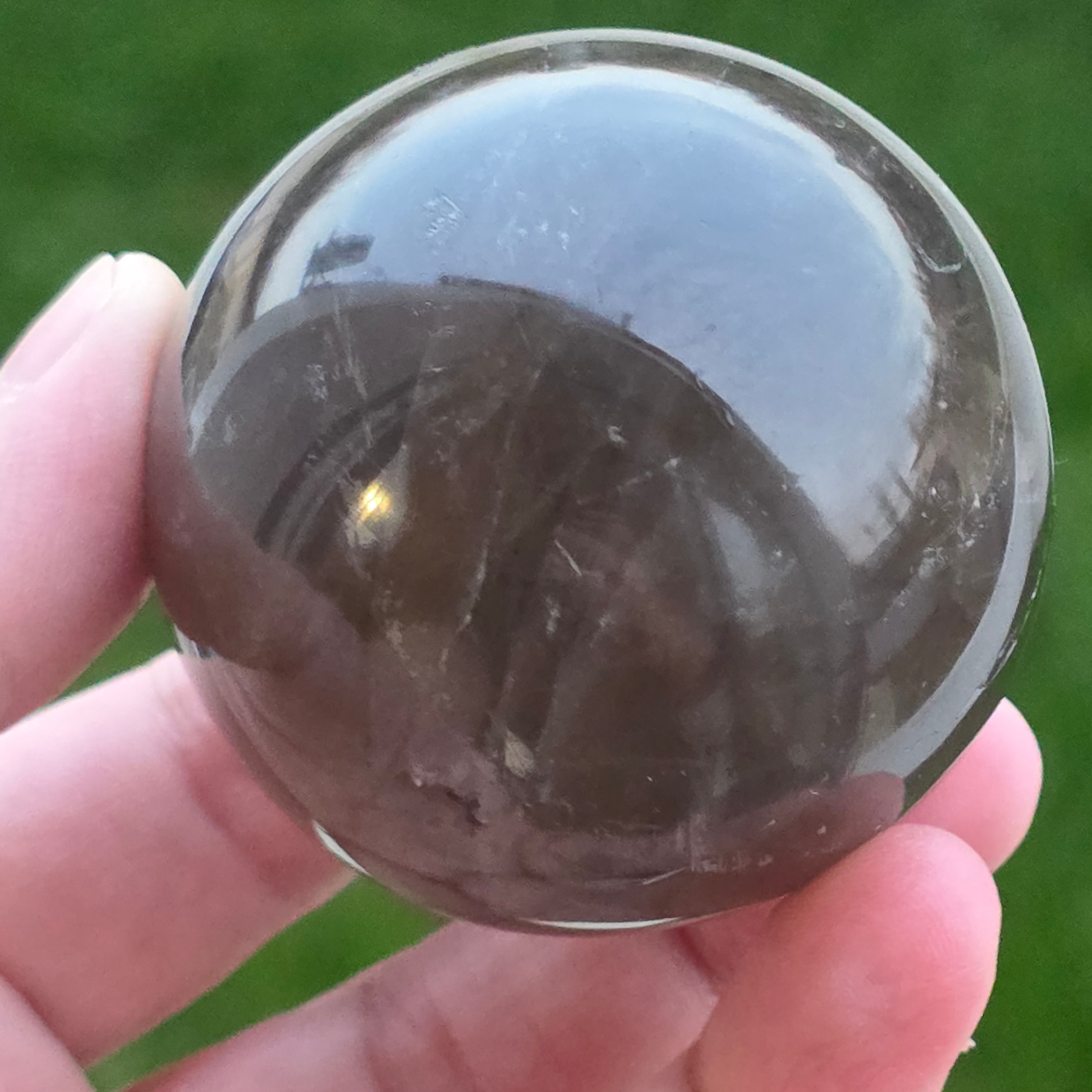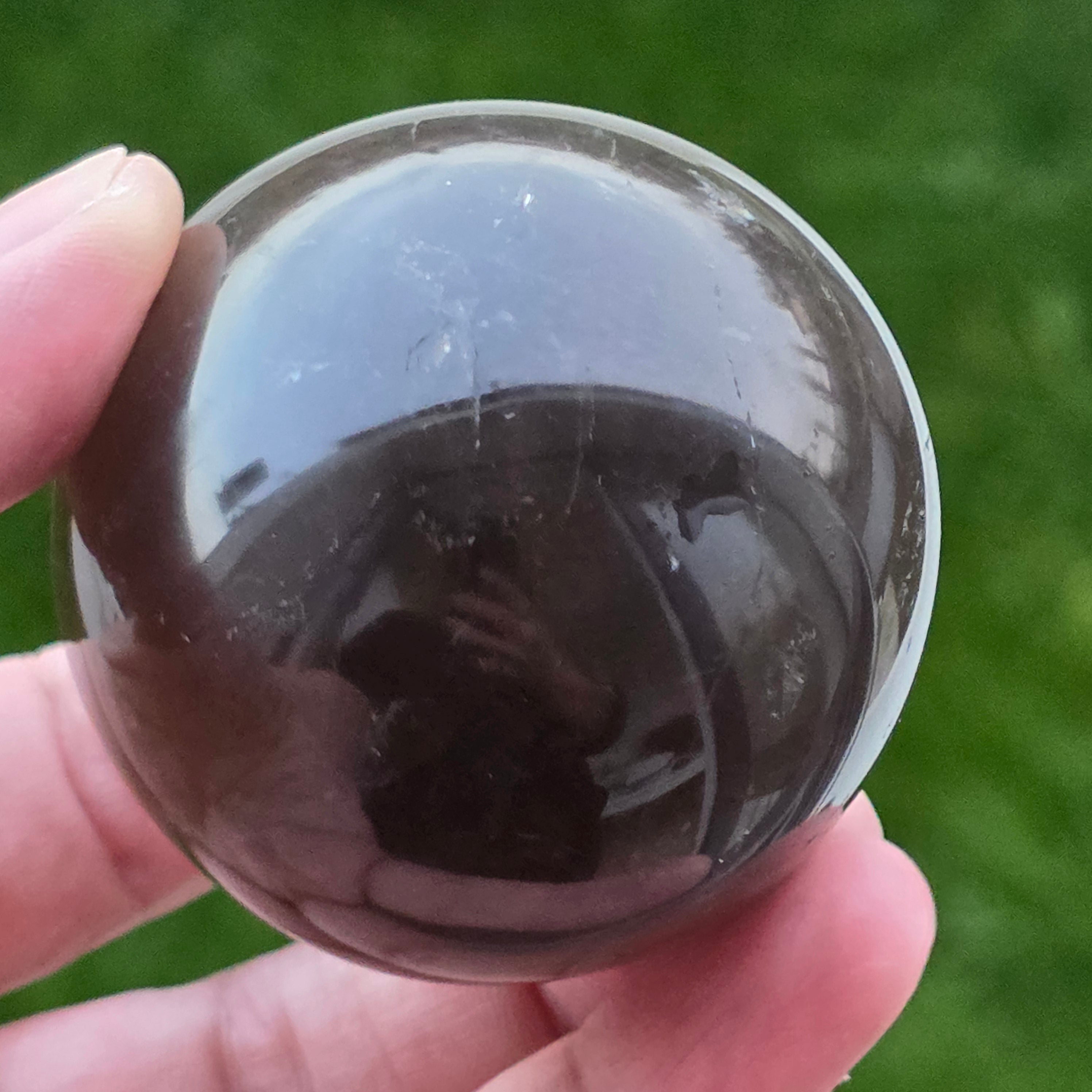 Sfera din cuarț morion este o piesă puternică și elegantă, cunoscută pentru nuanța sa profundă, asemănătoare fumului dens sau obsidianului transparent. Morionul este cea mai închisă varietate de cuarț fumuriu, iar în această formă perfect rotundă dezvăluie reflexii discrete, detalii interne fine și o prezență vizuală cu adevărat sofisticată.