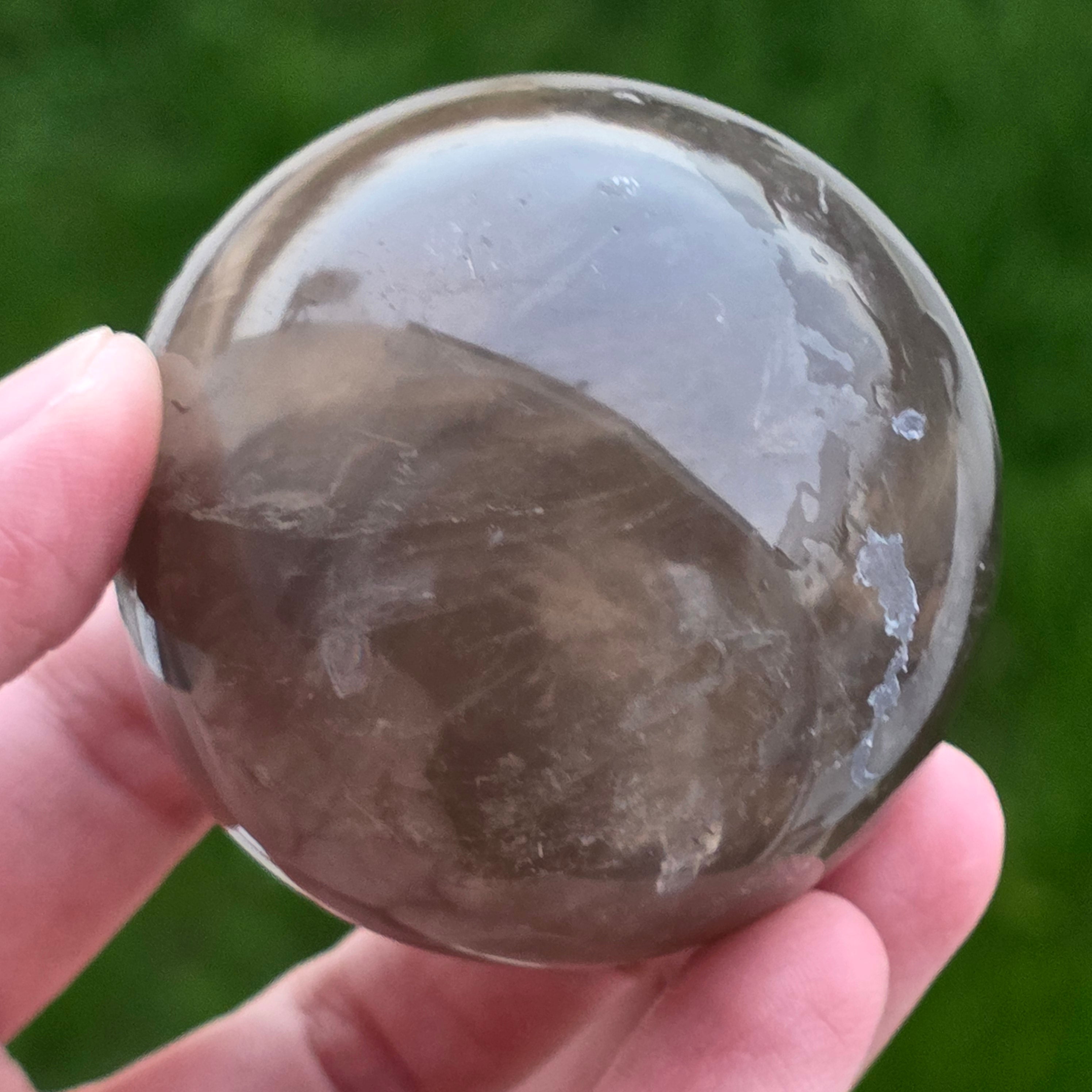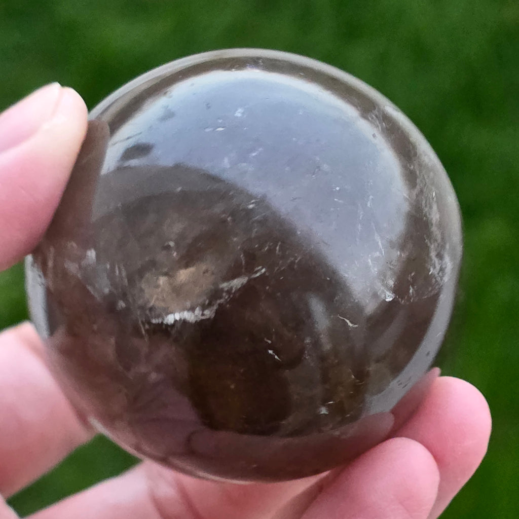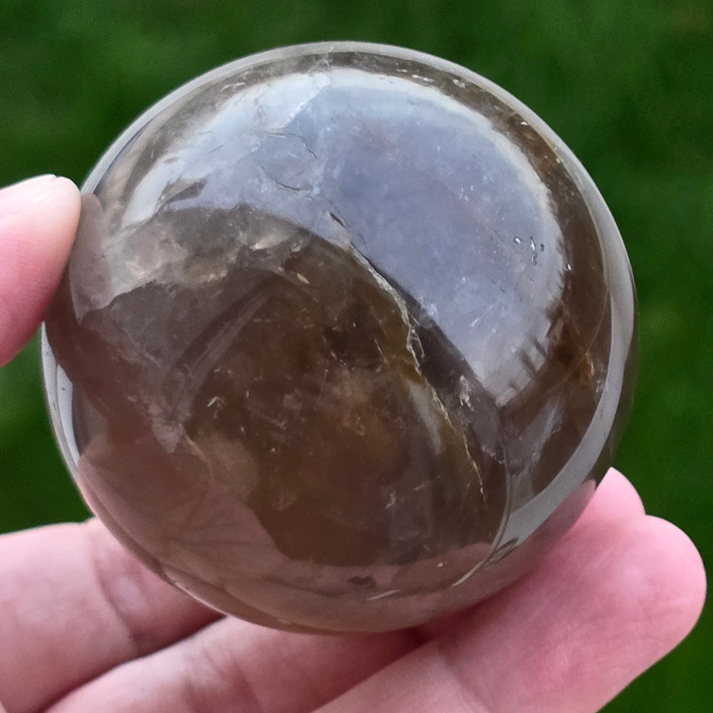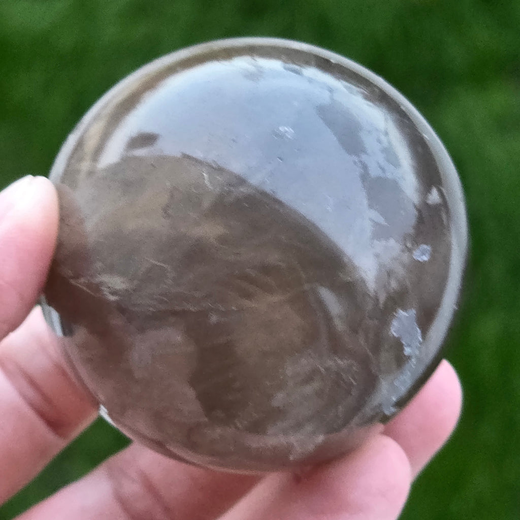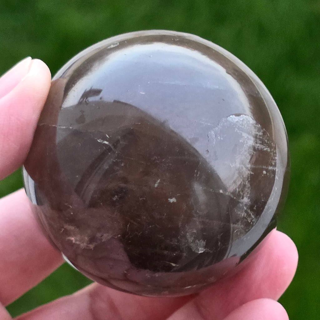 Sfera din cuarț morion este o piesă puternică și elegantă, cunoscută pentru nuanța sa profundă, asemănătoare fumului dens sau obsidianului transparent. Morionul este cea mai închisă varietate de cuarț fumuriu, iar în această formă perfect rotundă dezvăluie reflexii discrete, detalii interne fine și o prezență vizuală cu adevărat sofisticată.