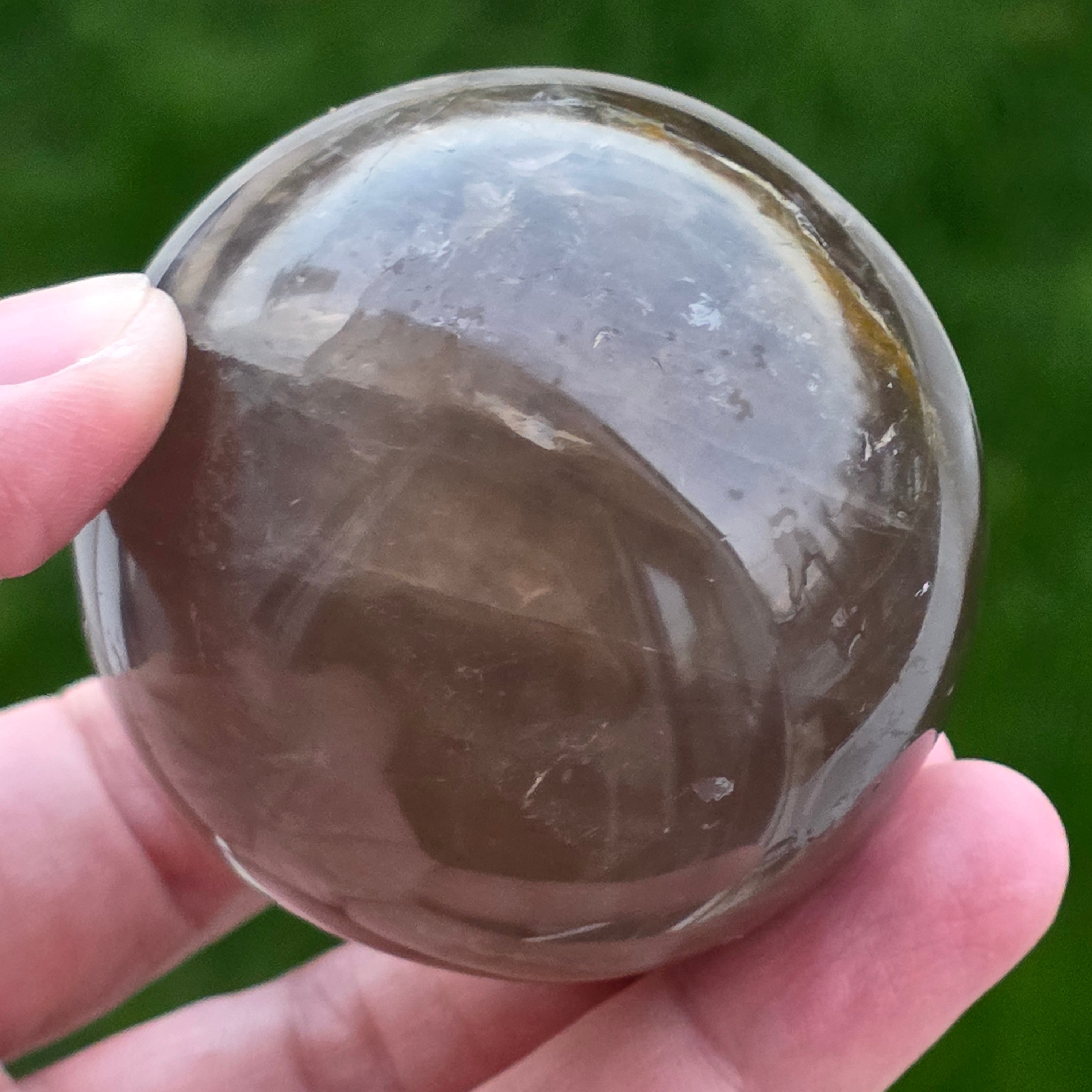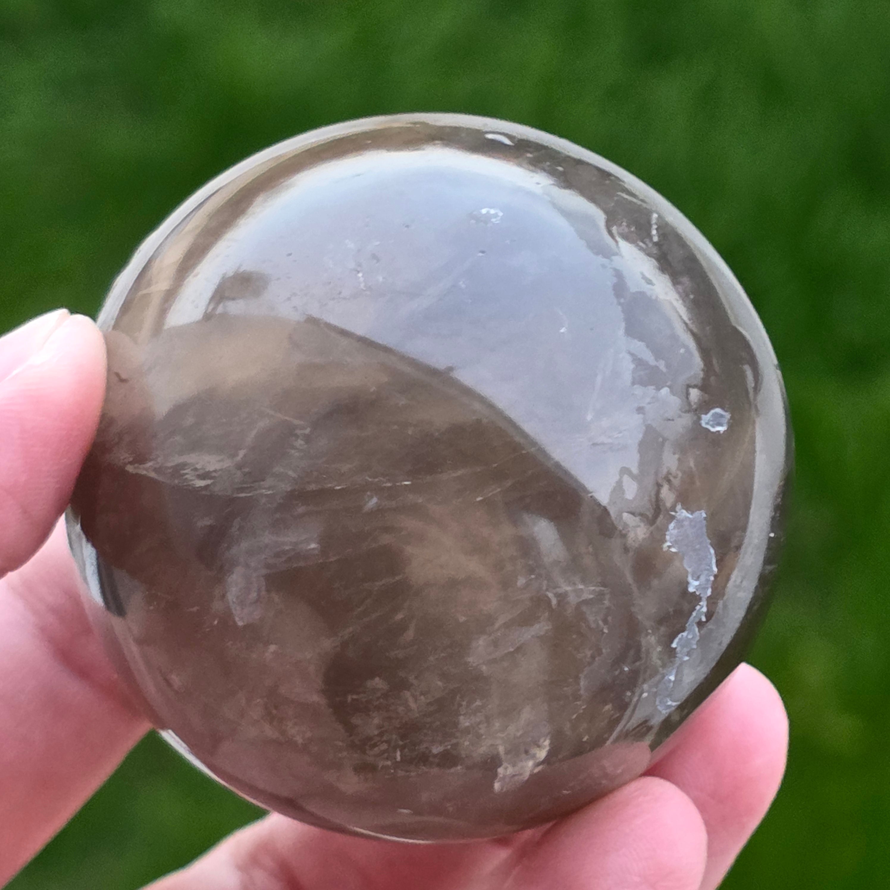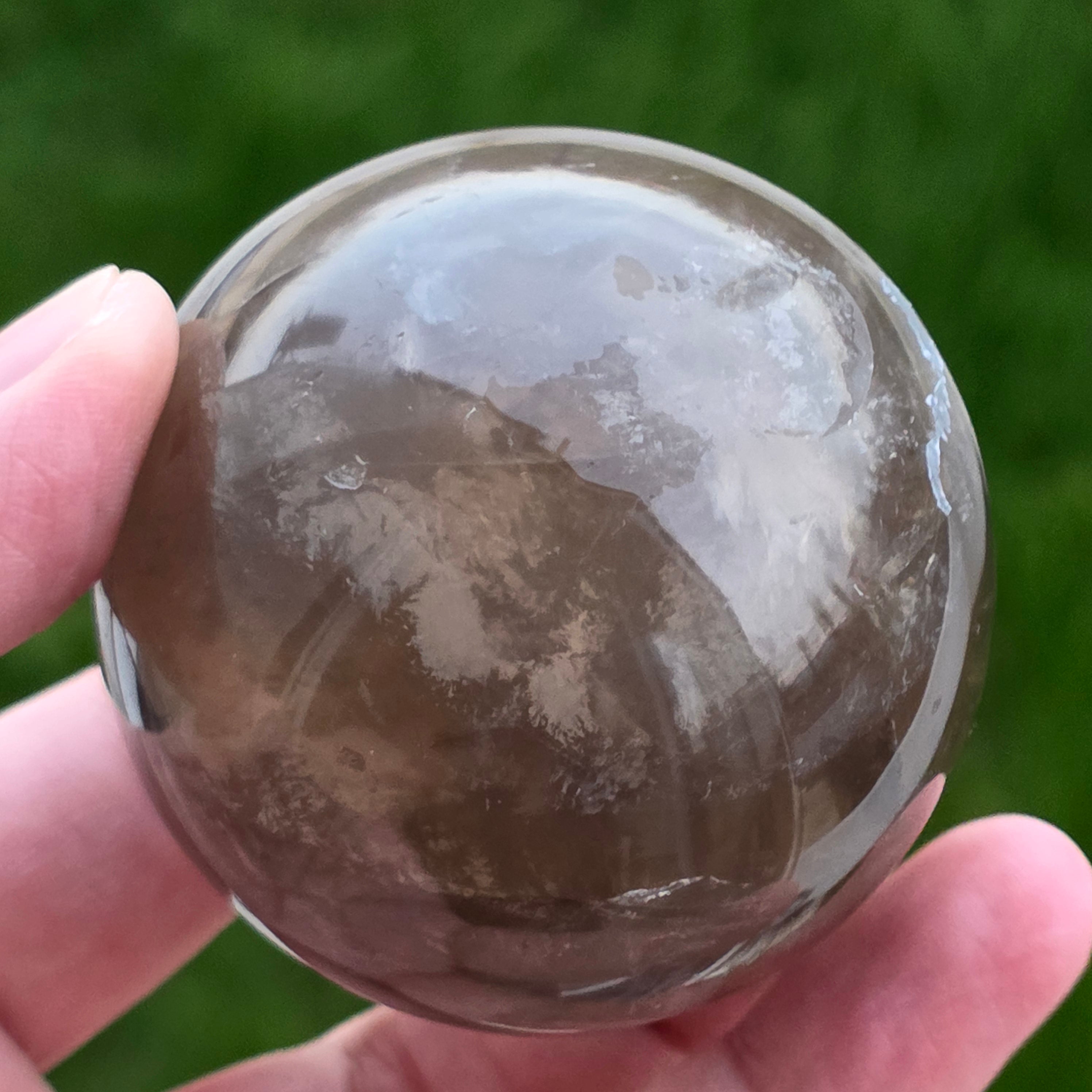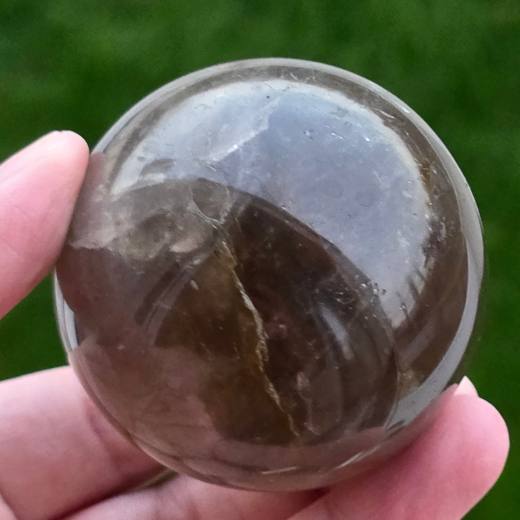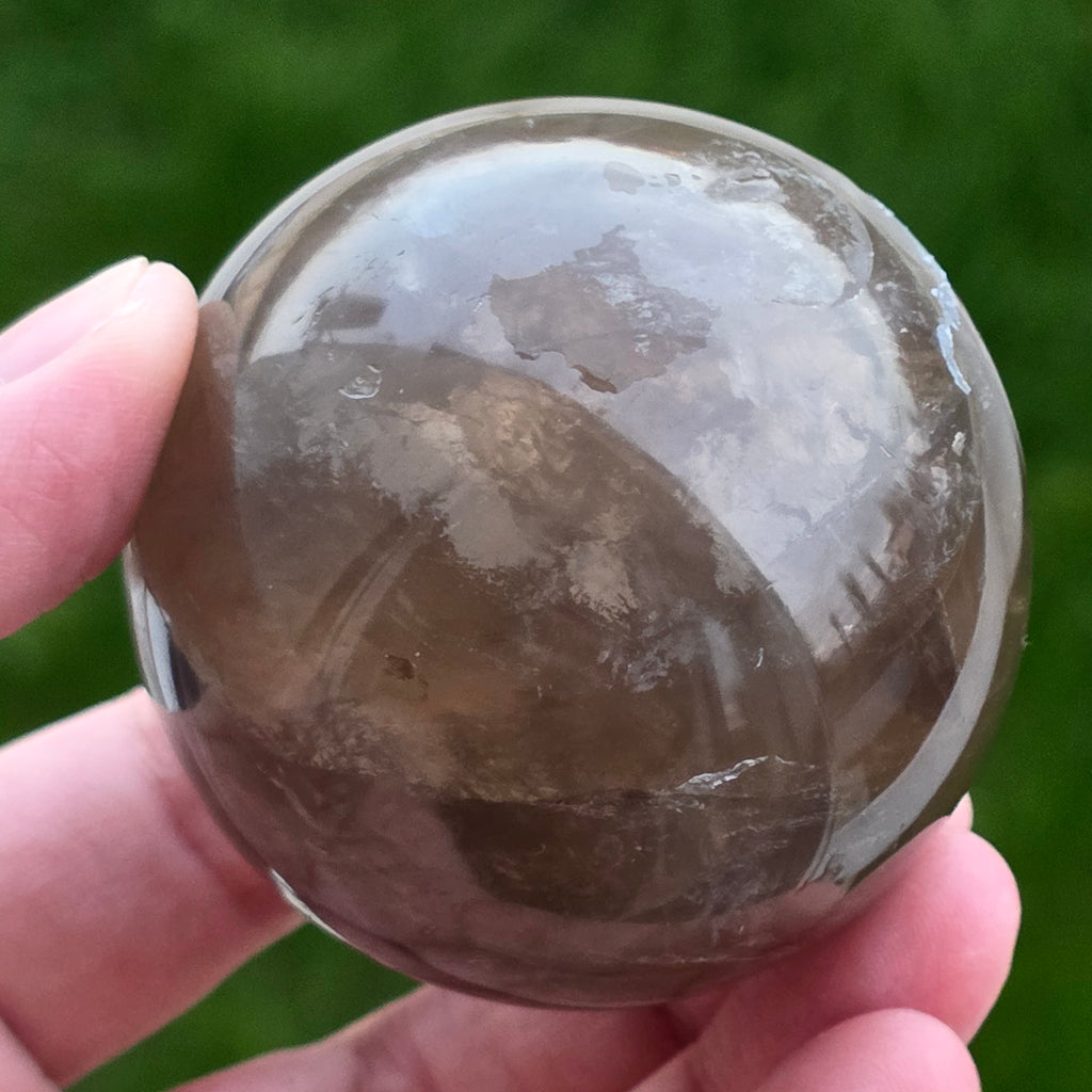 Sfera din cuarț morion este o piesă puternică și elegantă, cunoscută pentru nuanța sa profundă, asemănătoare fumului dens sau obsidianului transparent. Morionul este cea mai închisă varietate de cuarț fumuriu, iar în această formă perfect rotundă dezvăluie reflexii discrete, detalii interne fine și o prezență vizuală cu adevărat sofisticată.
