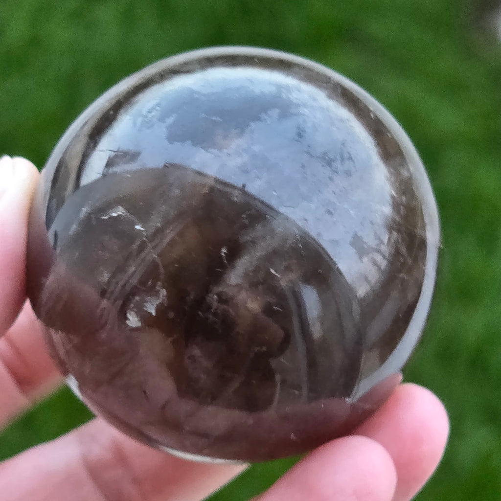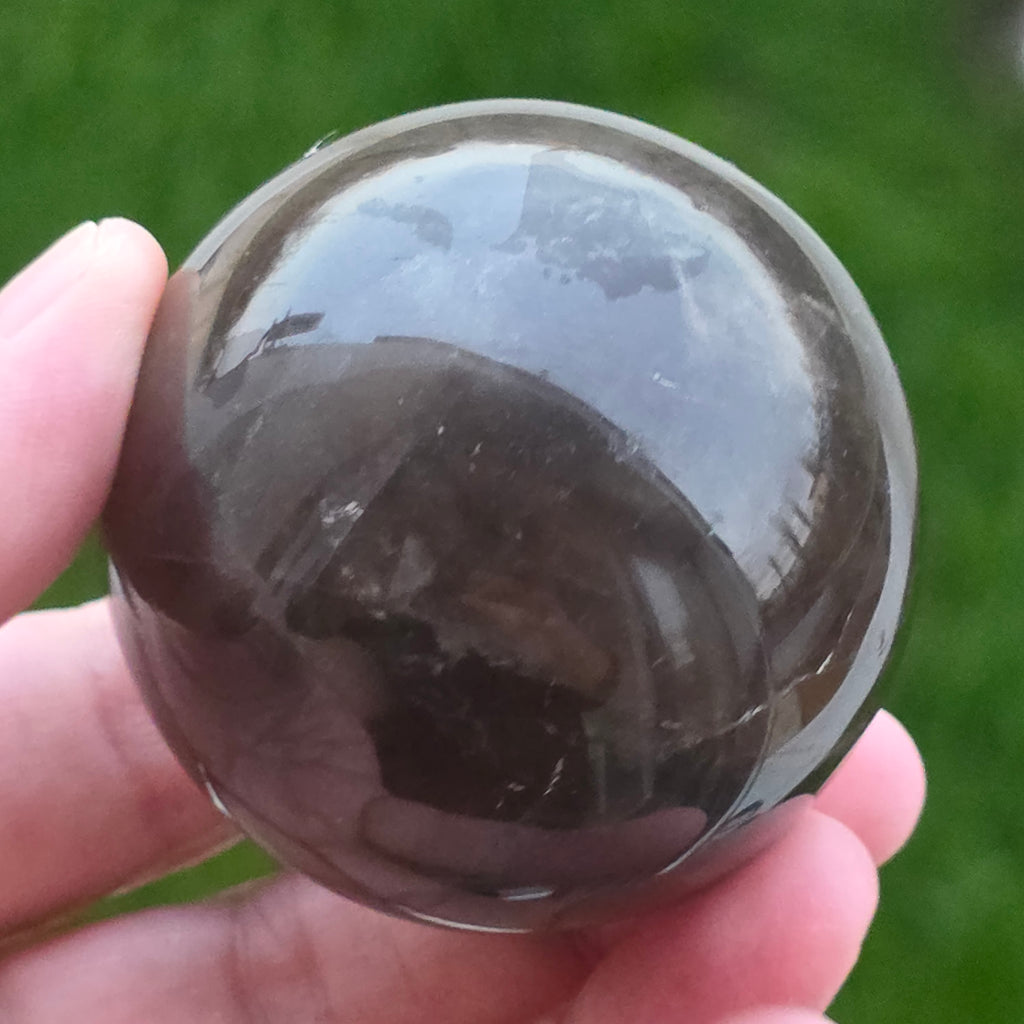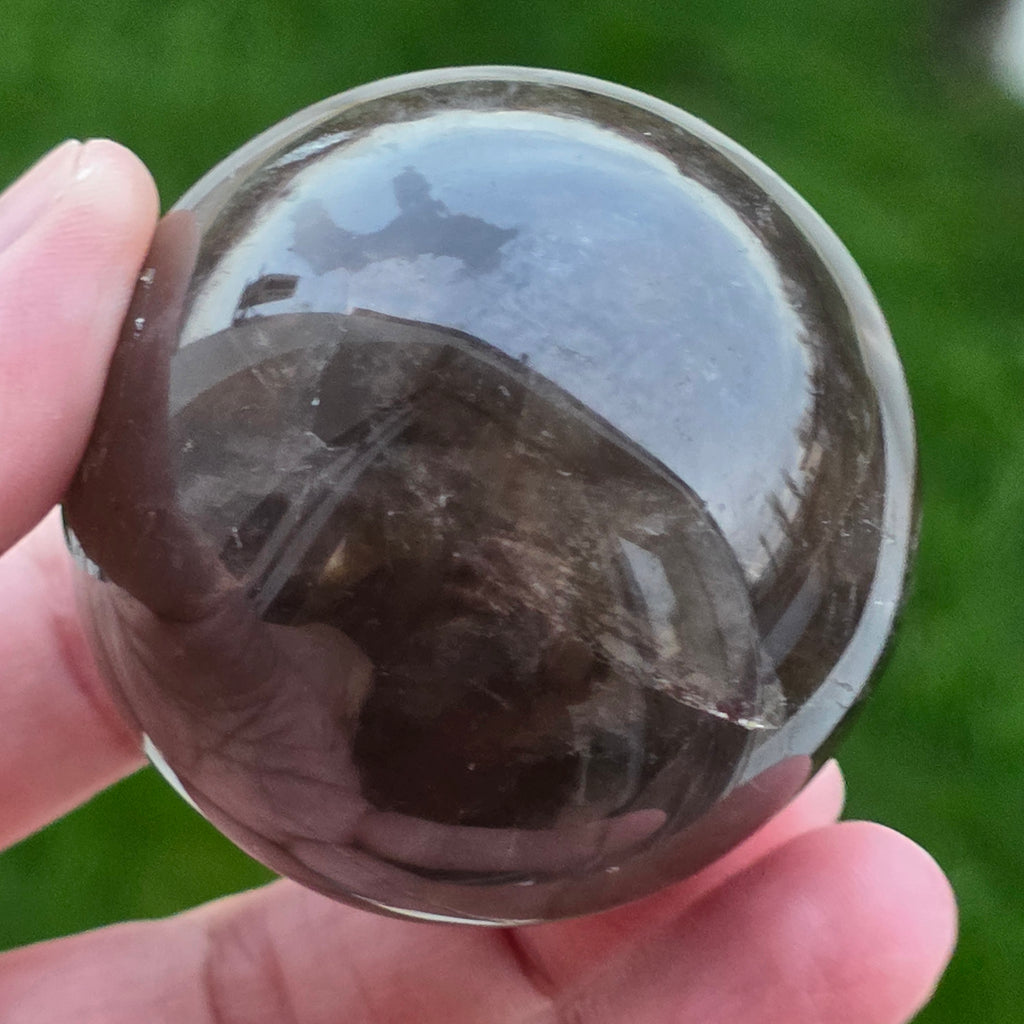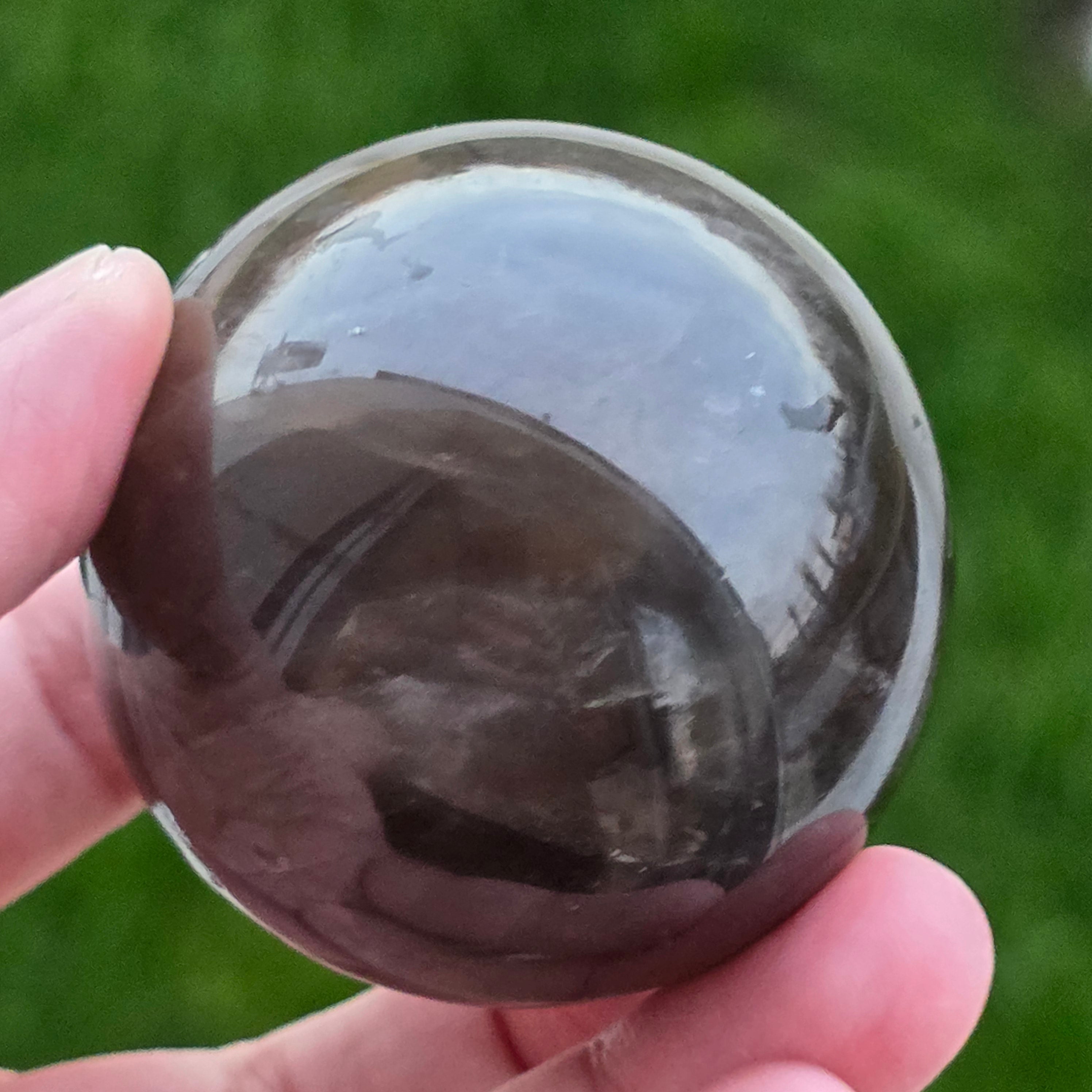 Sfera din cuarț morion este o piesă puternică și elegantă, cunoscută pentru nuanța sa profundă, asemănătoare fumului dens sau obsidianului transparent. Morionul este cea mai închisă varietate de cuarț fumuriu, iar în această formă perfect rotundă dezvăluie reflexii discrete, detalii interne fine și o prezență vizuală cu adevărat sofisticată.