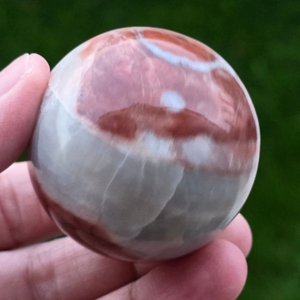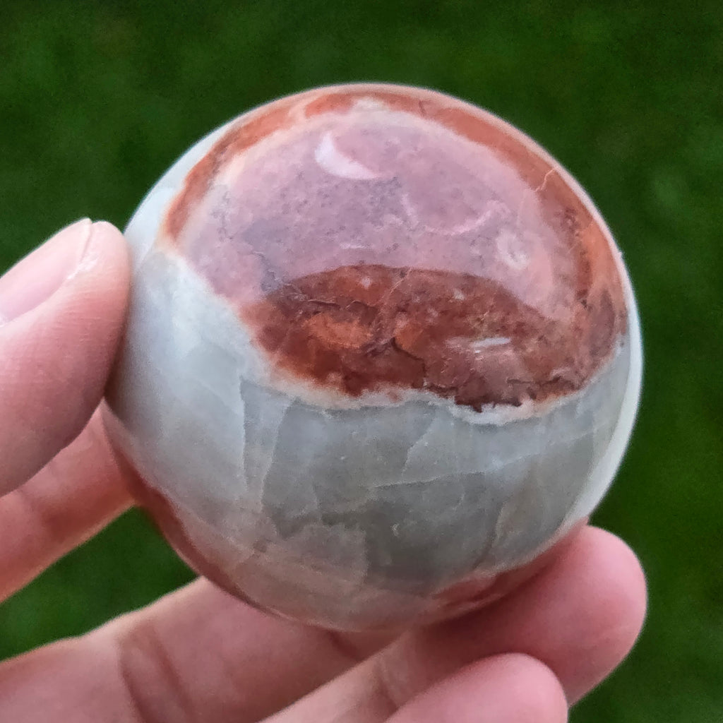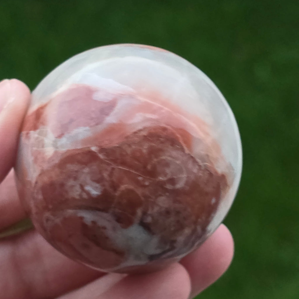 Sfera din Jasp Căpșună este o piesă vibrantă și expresivă, sculptată cu atenție pentru a evidenția nuanțele calde de roșu căpșună, texturile organice și desenul mineral specific acestei varietăți de jasp. Fiecare piesă este complet unică, cu modele naturale care se împletesc în forme fluide, evocând stratificarea rocilor și frumusețea lor brută.