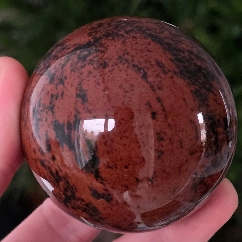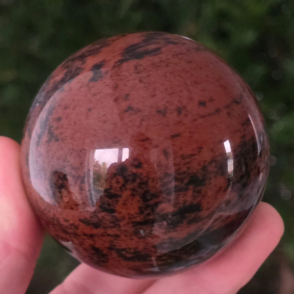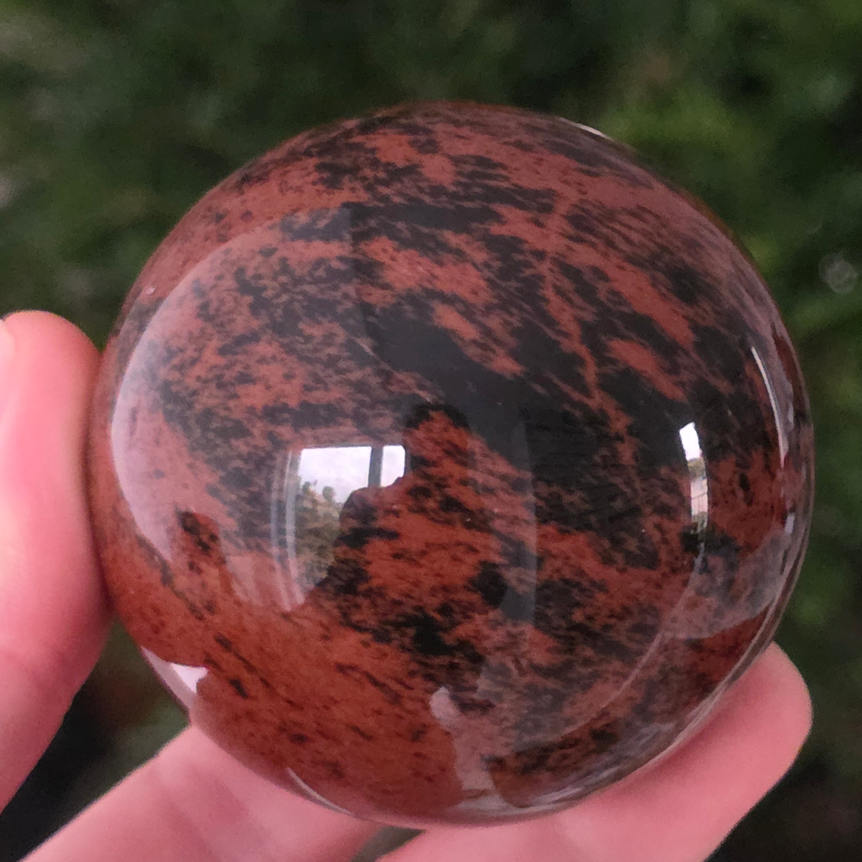 Lasă-te inspirat de forța liniștită a Pământului prin această sferă din obsidian mahon.