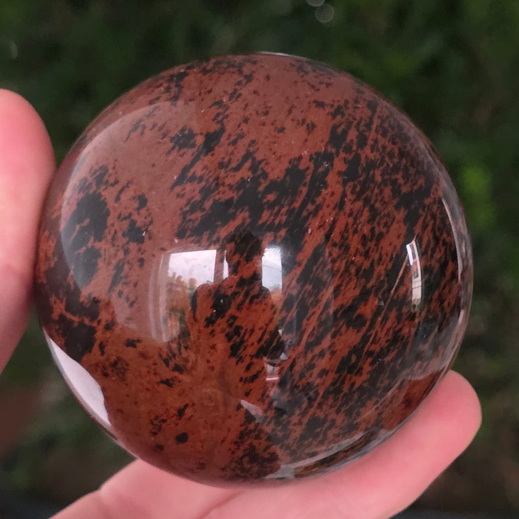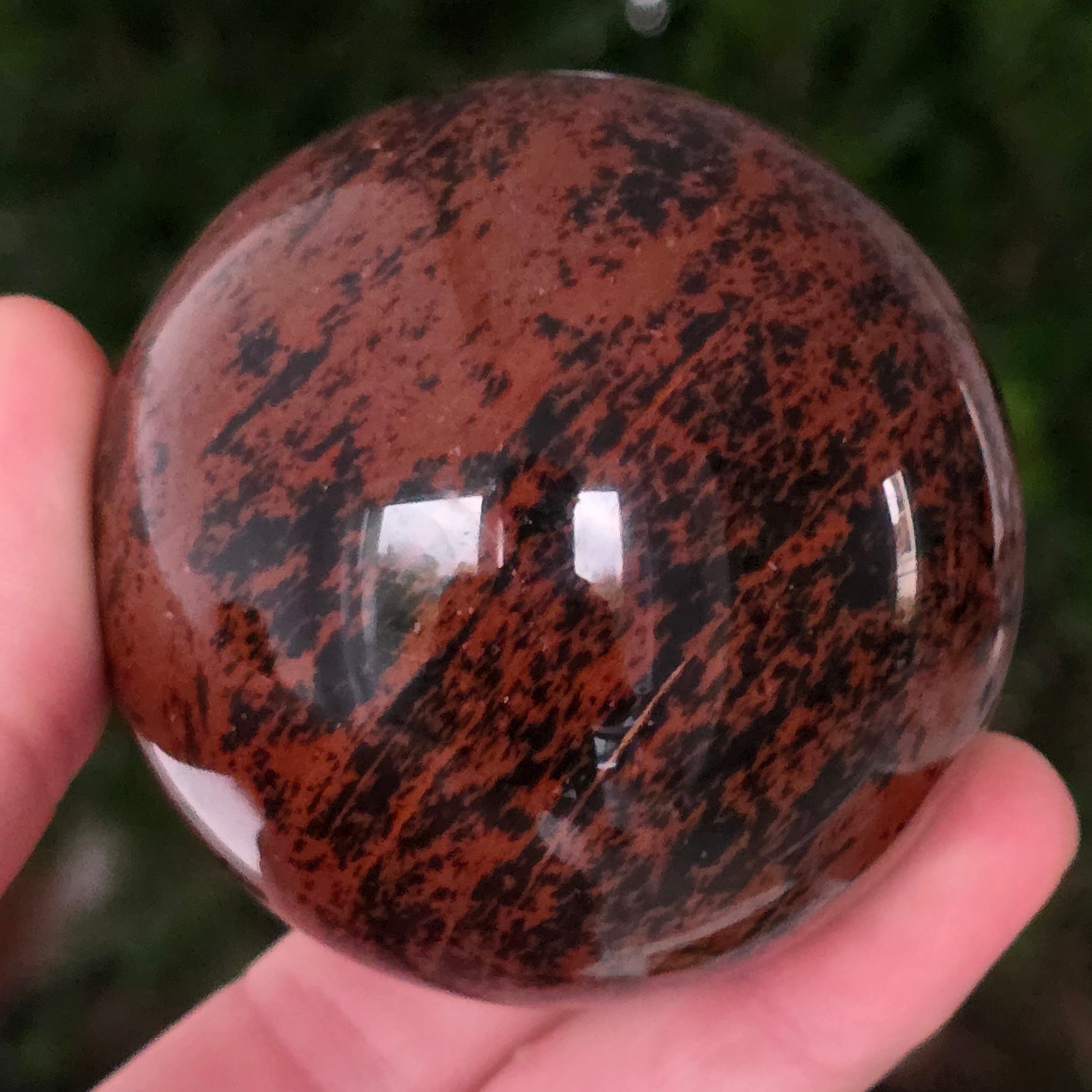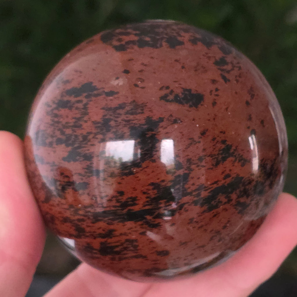 Lasă-te inspirat de forța liniștită a Pământului prin această sferă din obsidian mahon.