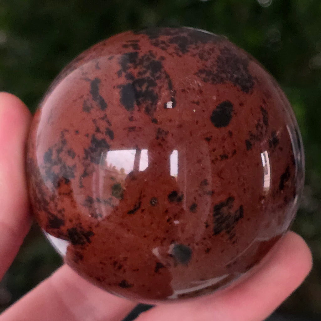 Această sferă din obsidian mahon este o întrupare a forței primordiale a Pământului — o piatră a rădăcinilor, a siguranței și a transformării interioare.