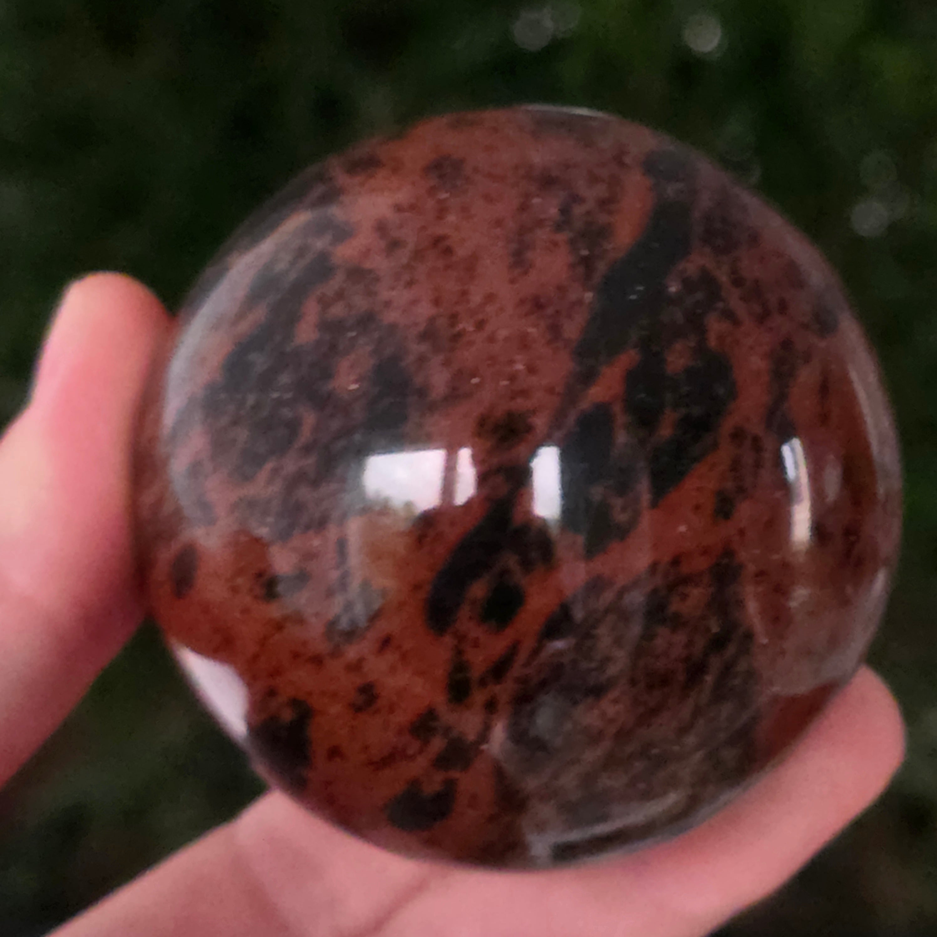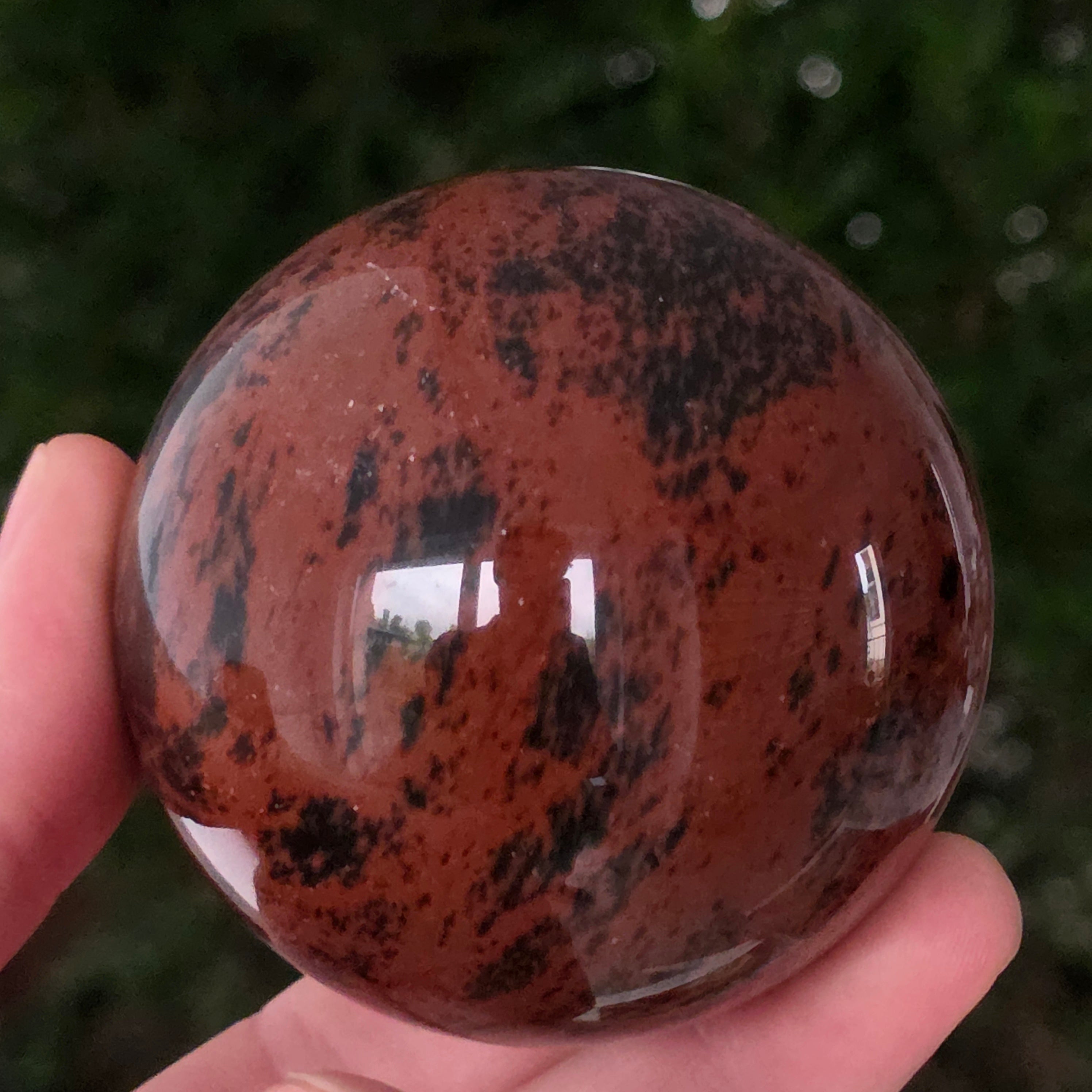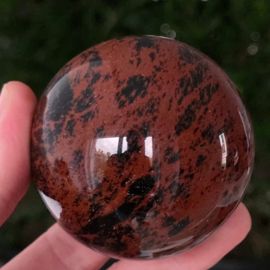 Lasă-te inspirat de forța liniștită a Pământului prin această sferă din obsidian mahon.