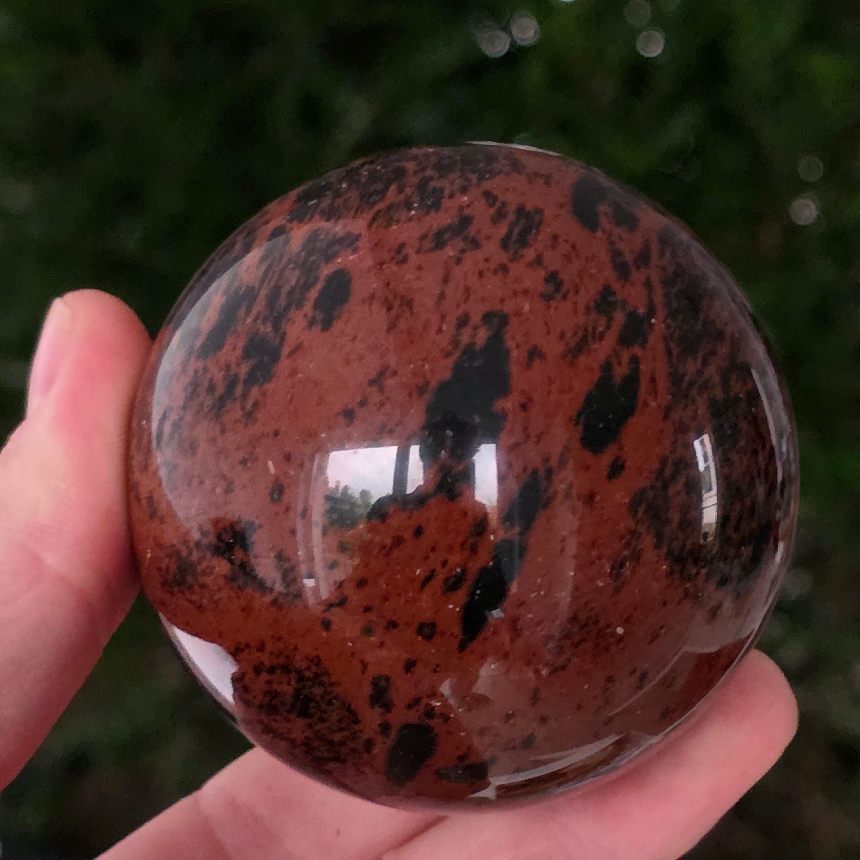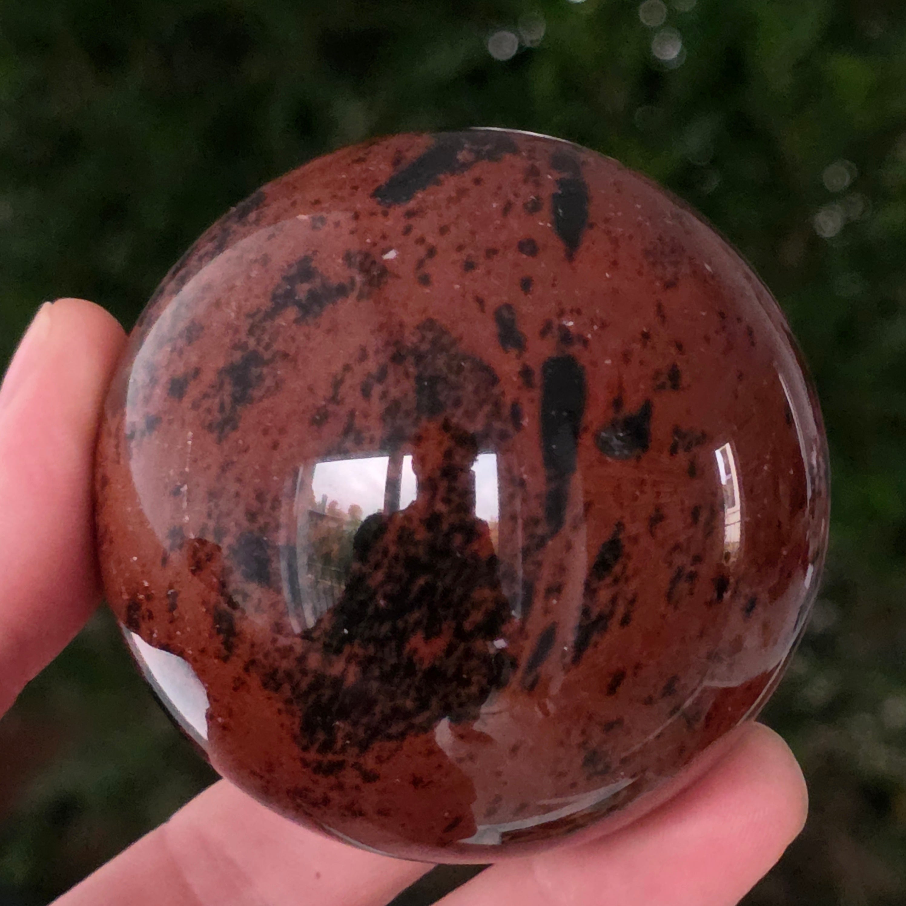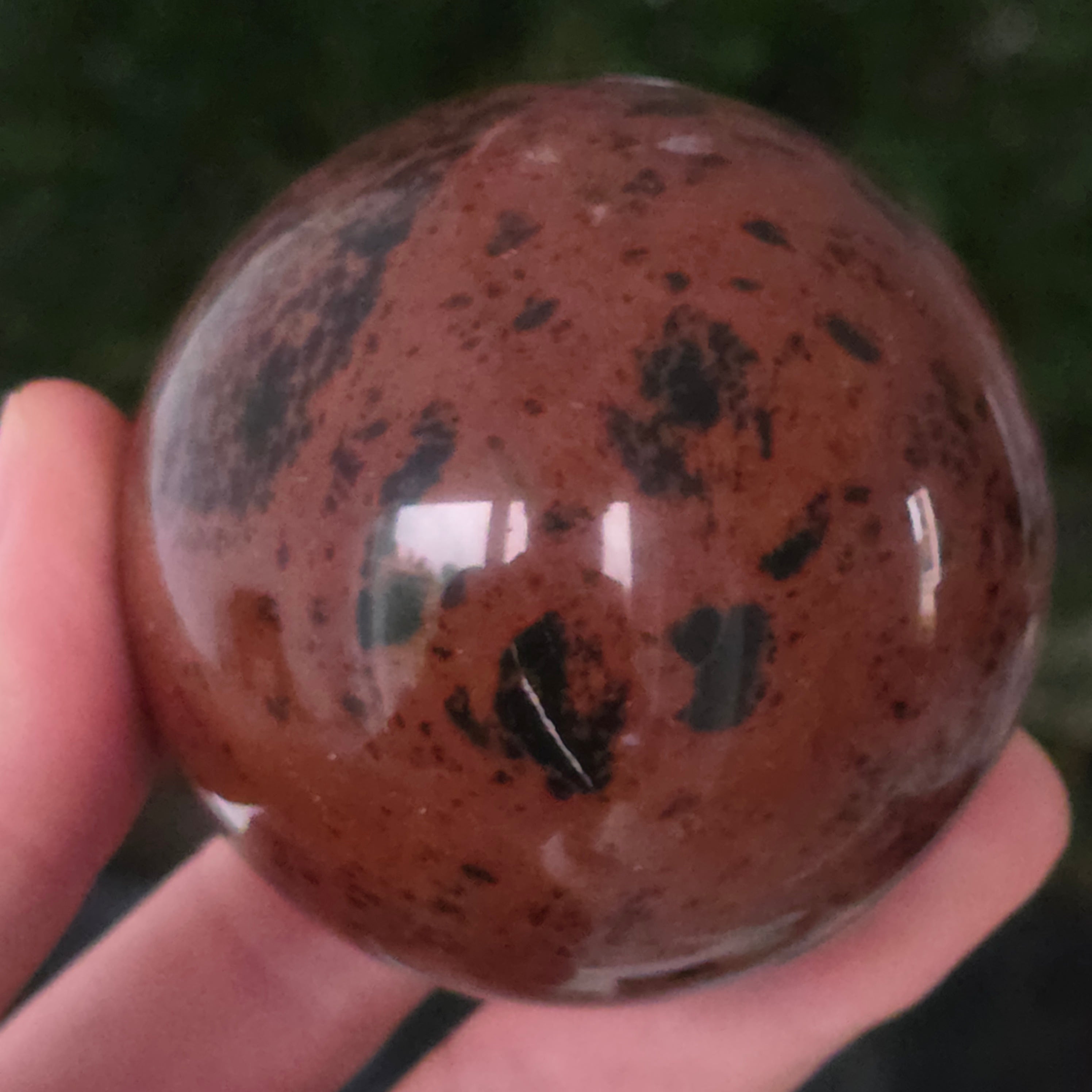 Lasă-te inspirat de forța liniștită a Pământului prin această sferă din obsidian mahon.