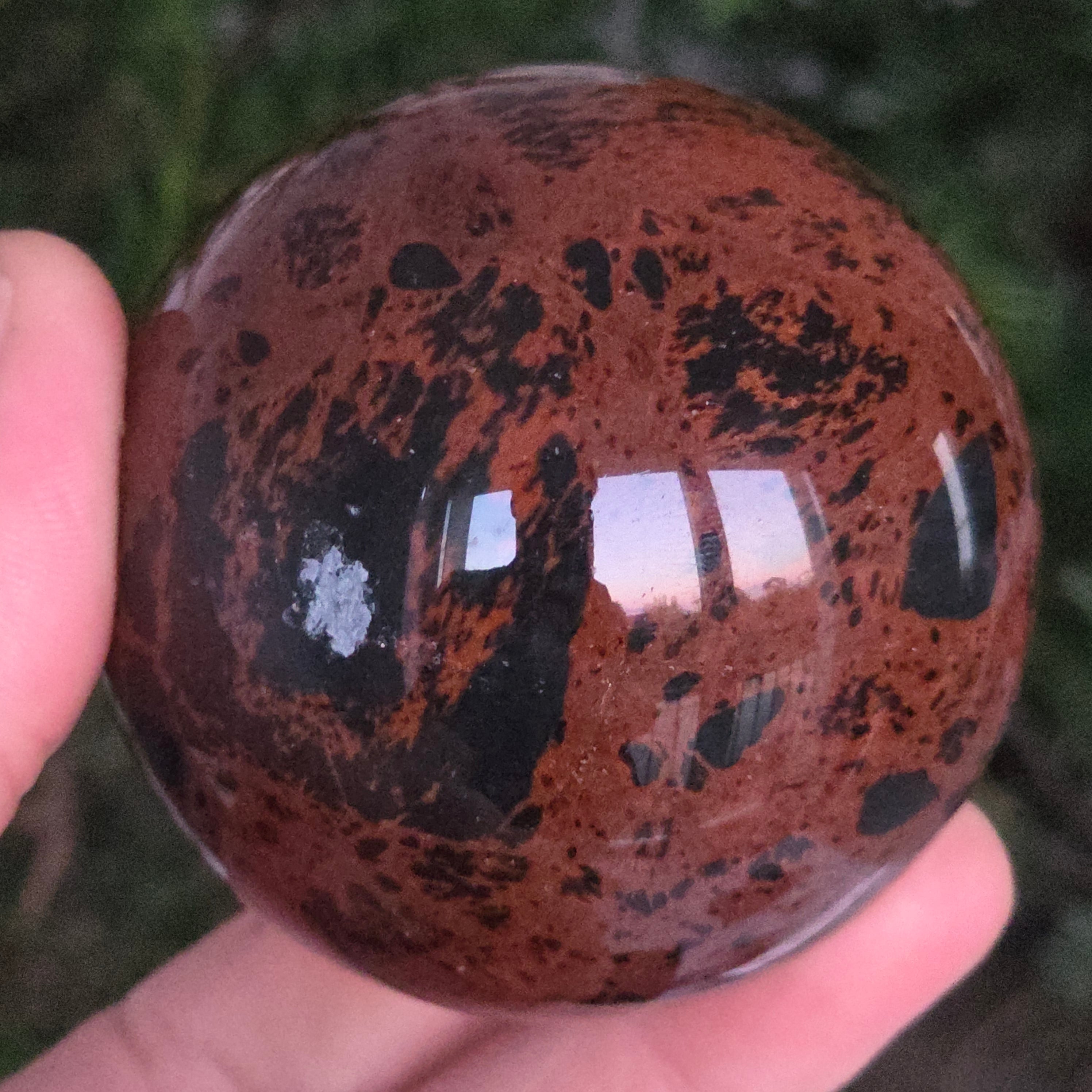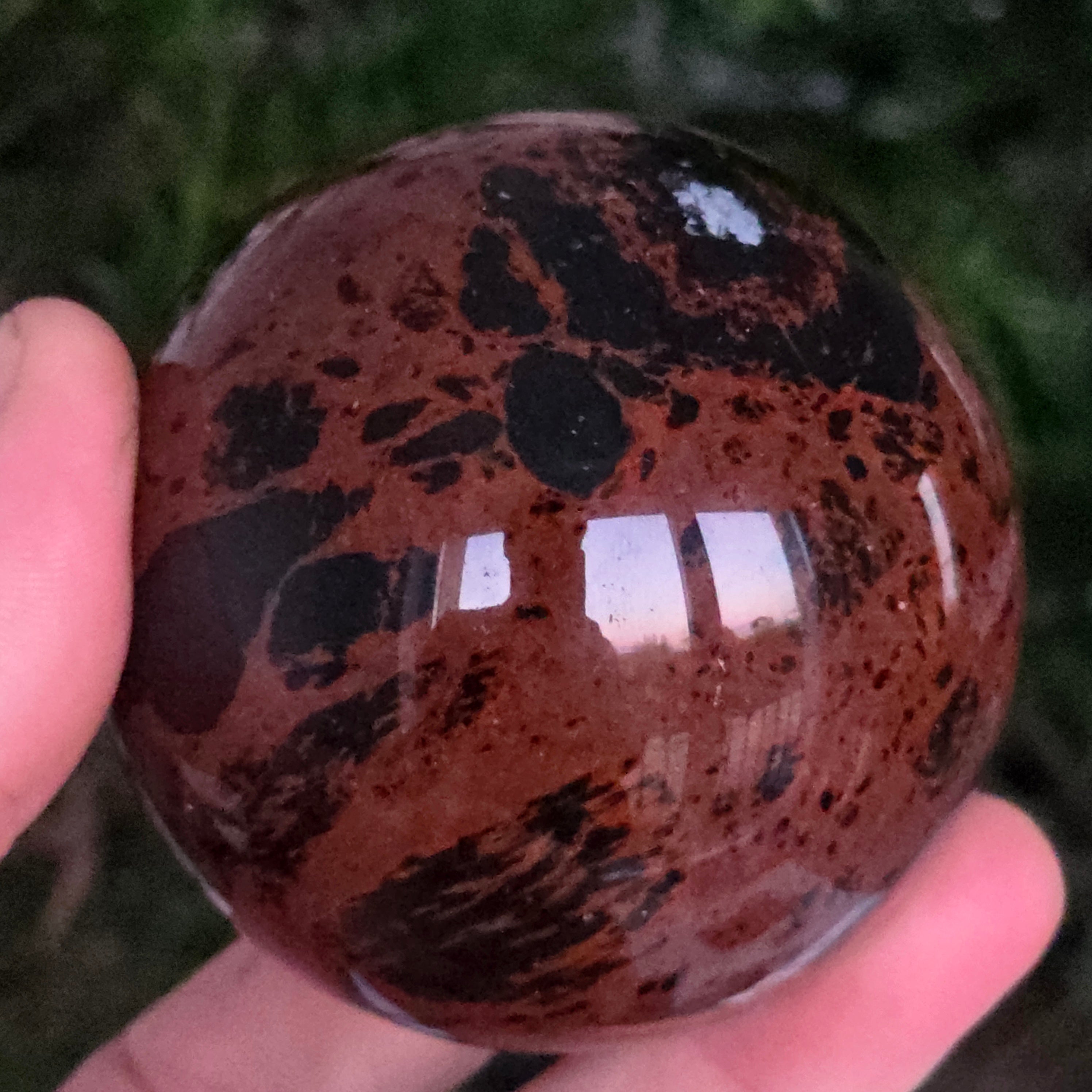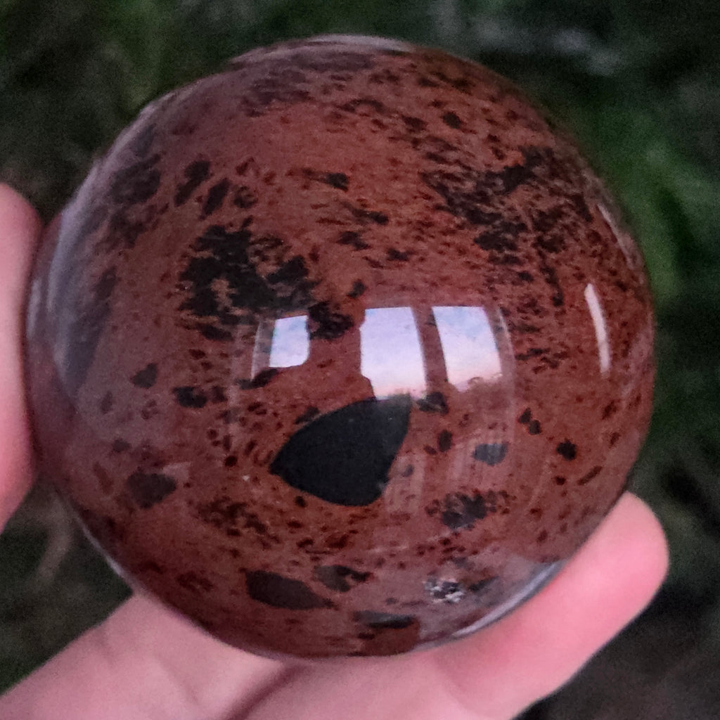 Lasă-te inspirat de forța liniștită a Pământului prin această sferă din obsidian mahon.