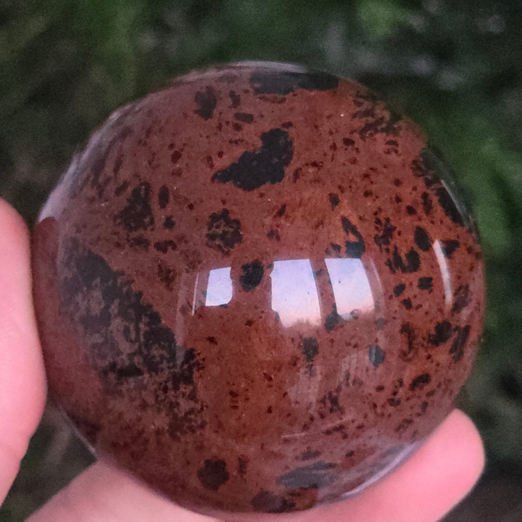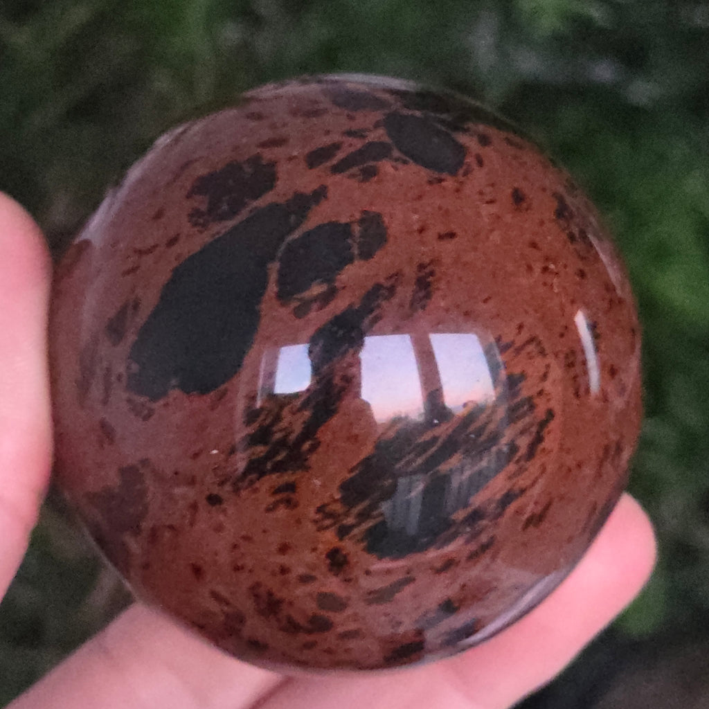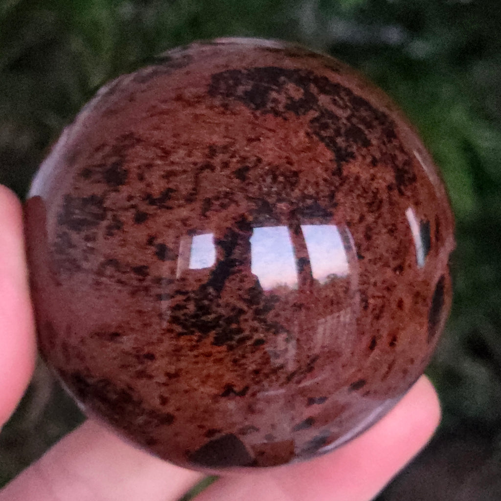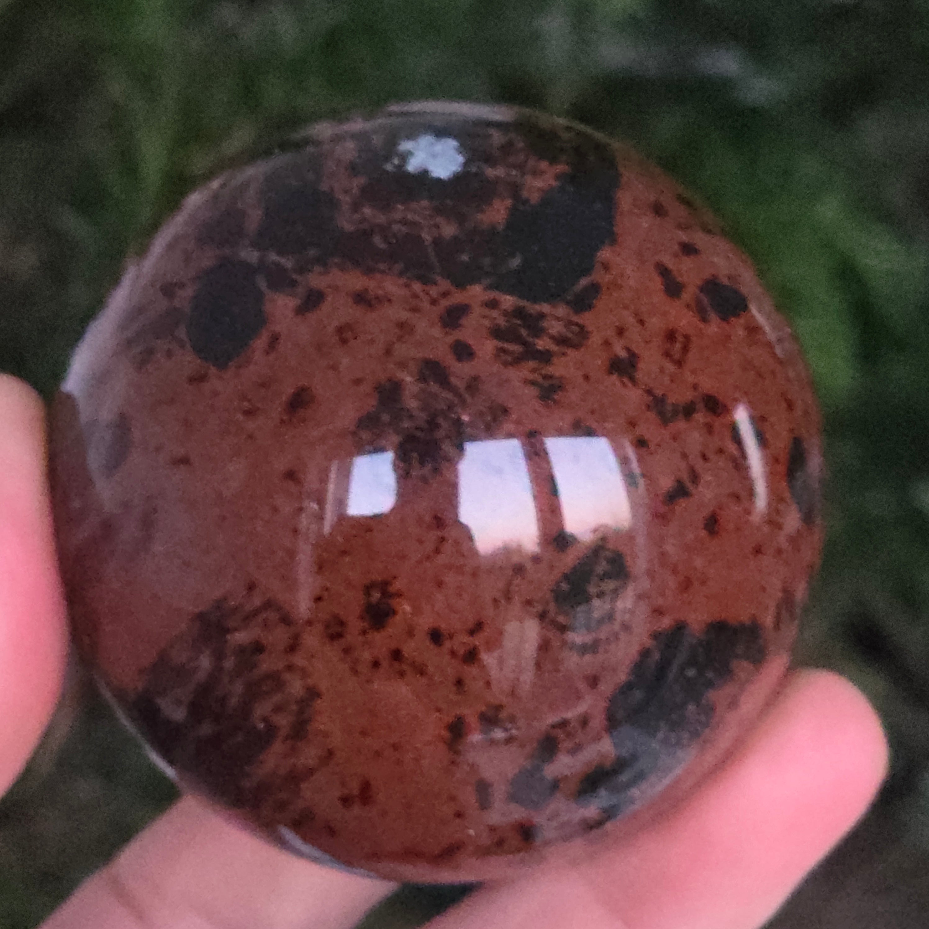Lasă-te inspirat de forța liniștită a Pământului prin această sferă din obsidian mahon.