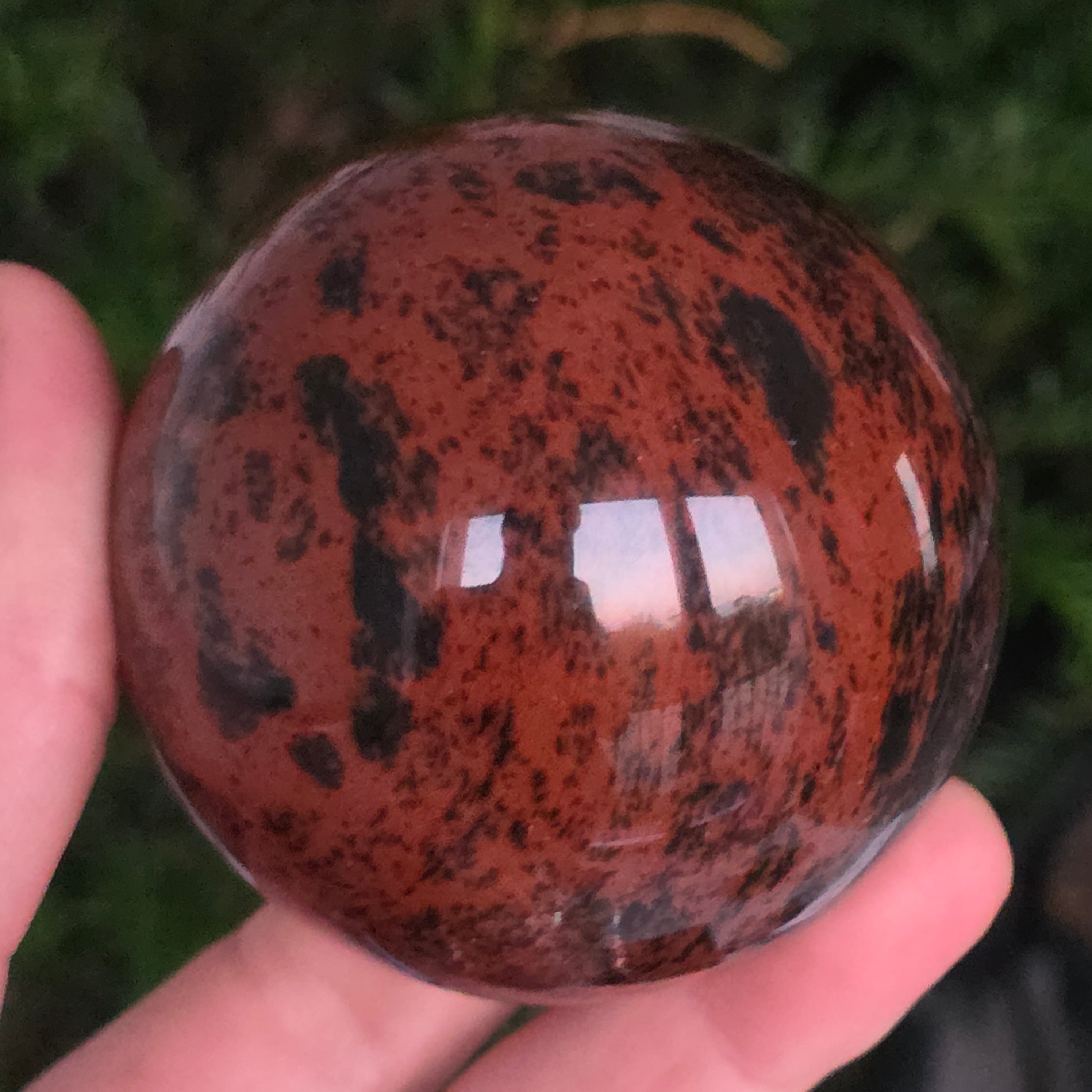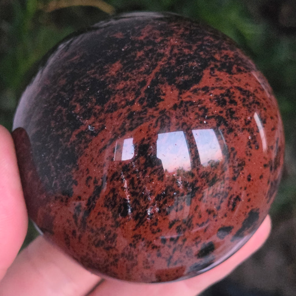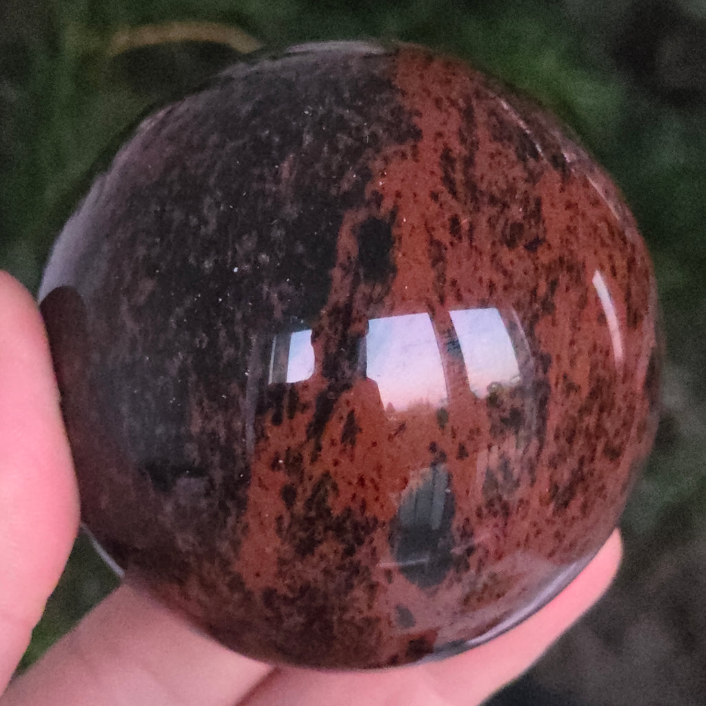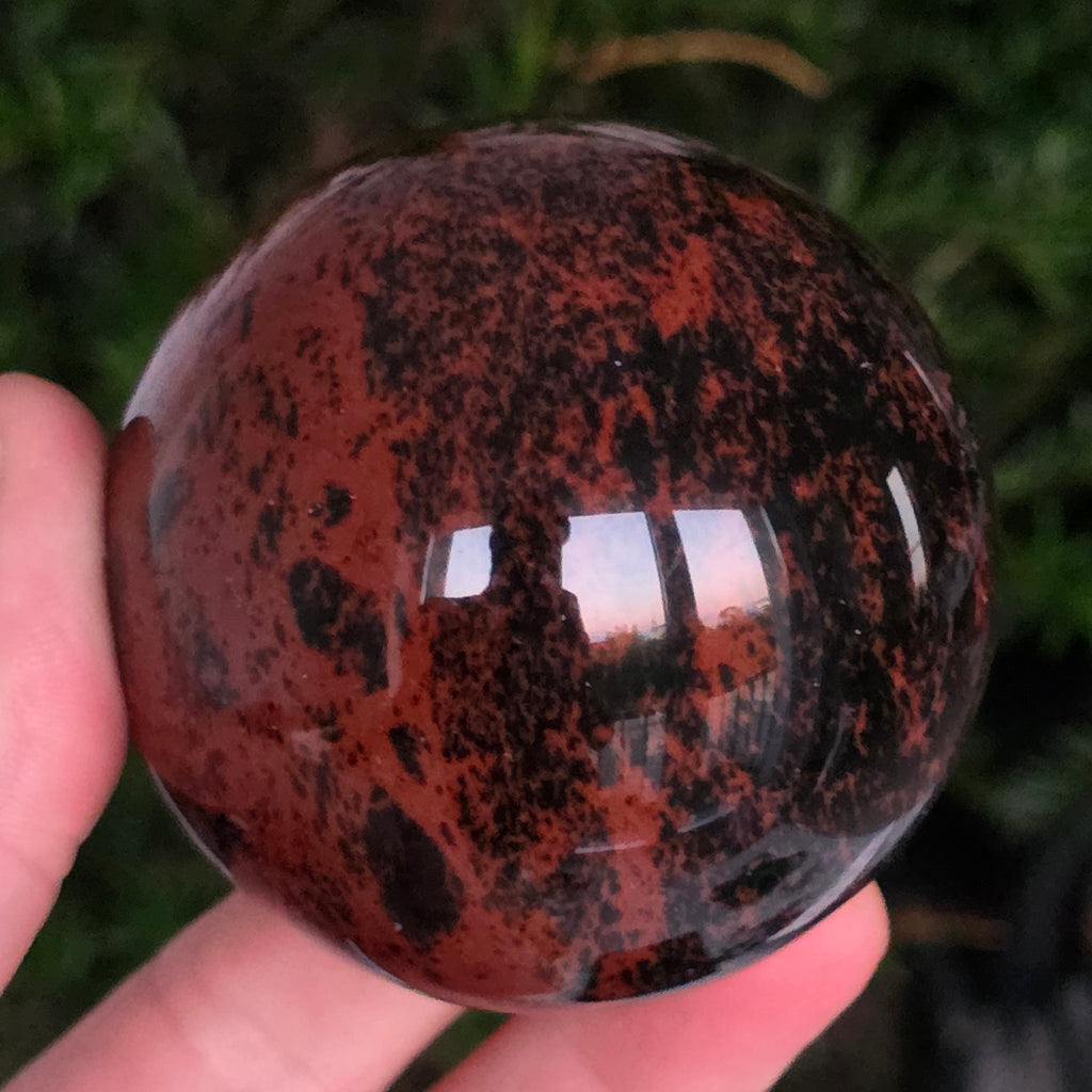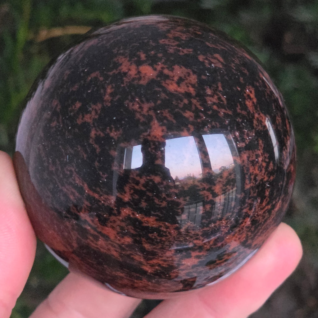Lasă-te inspirat de forța liniștită a Pământului prin această sferă din obsidian mahon.