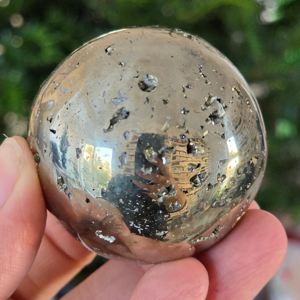 Sfera din pirita peruviană emană putere, abundență și claritate mentală. Fiecare reflex auriu amintește de lumina conștienței și de forța interioară care transformă intențiile în realitate. O piesă spectaculoasă, potrivită atât pentru colecționari, cât și ca obiect decorativ cu energie vibrantă.