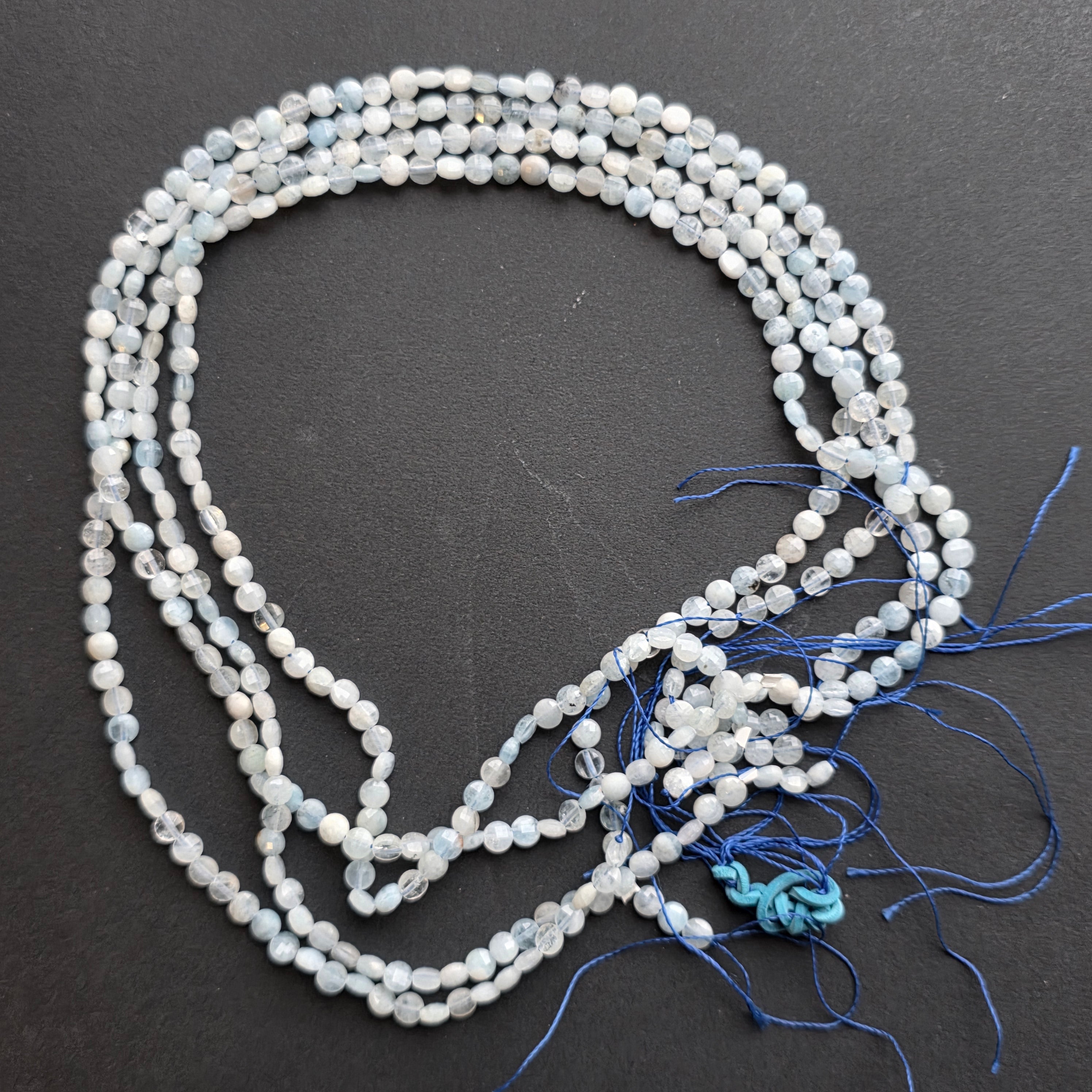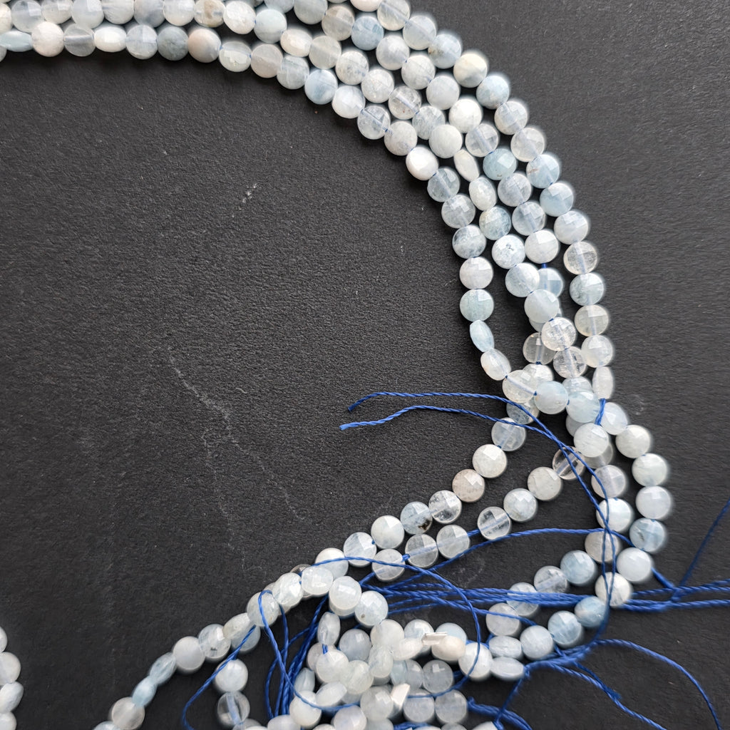 Sirag de ACVAMARIN, alcătuit din discuri fatetate naturale, perfect pentru coliere, brățări sau alte bijuterii handmade.