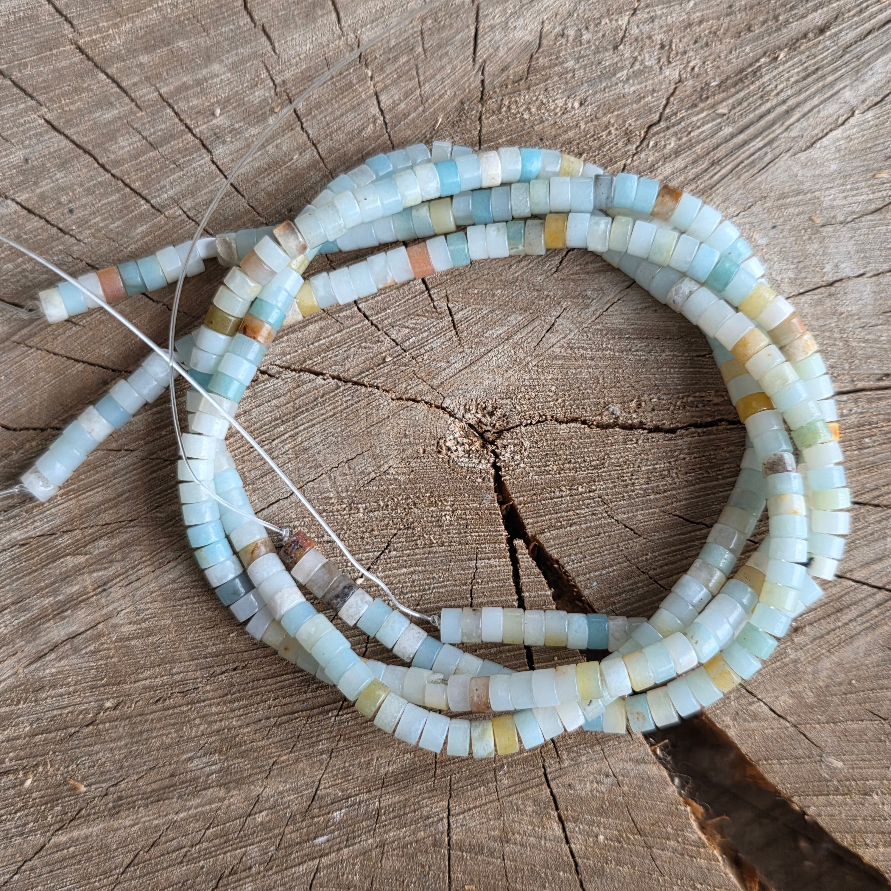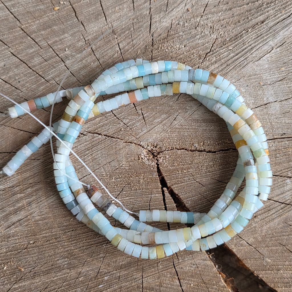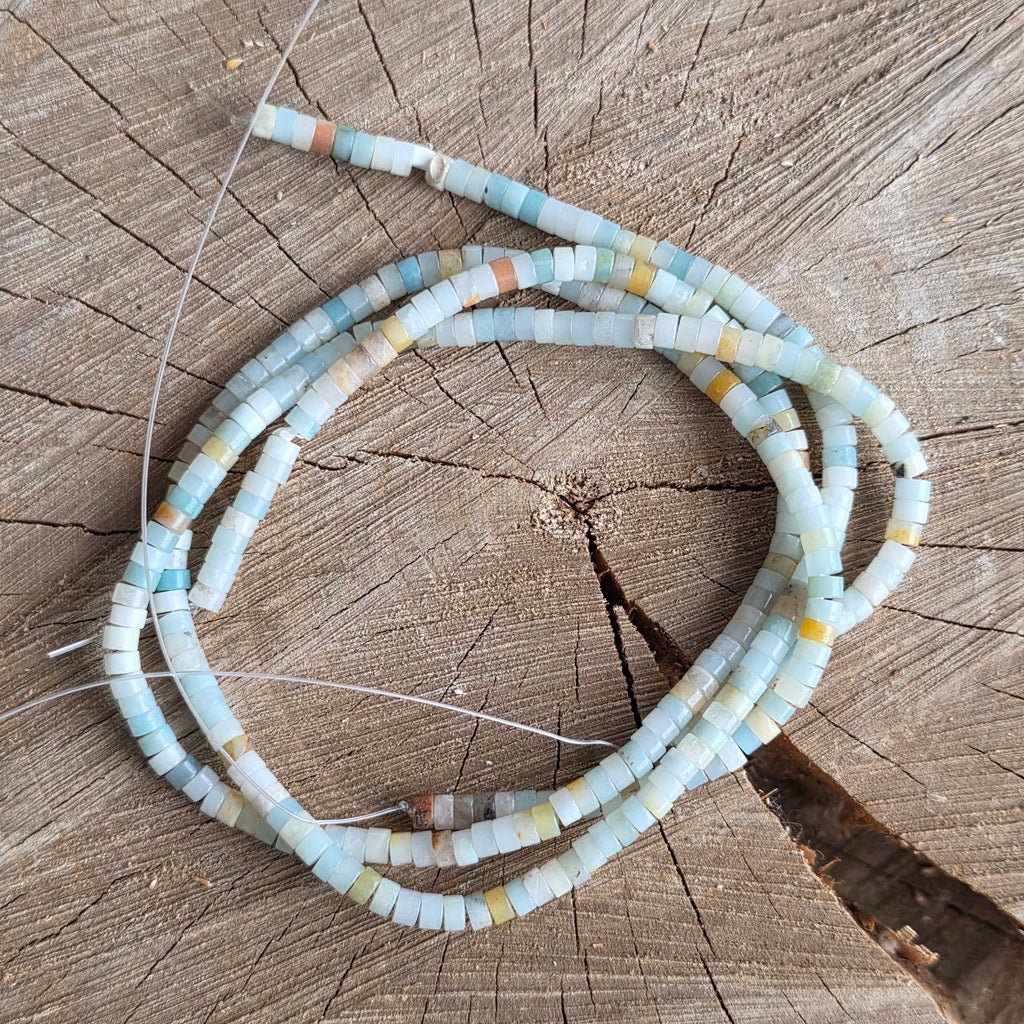 Sirag de AMAZONIT, alcătuit din discuri naturale, perfect pentru coliere, brățări sau alte bijuterii handmade.