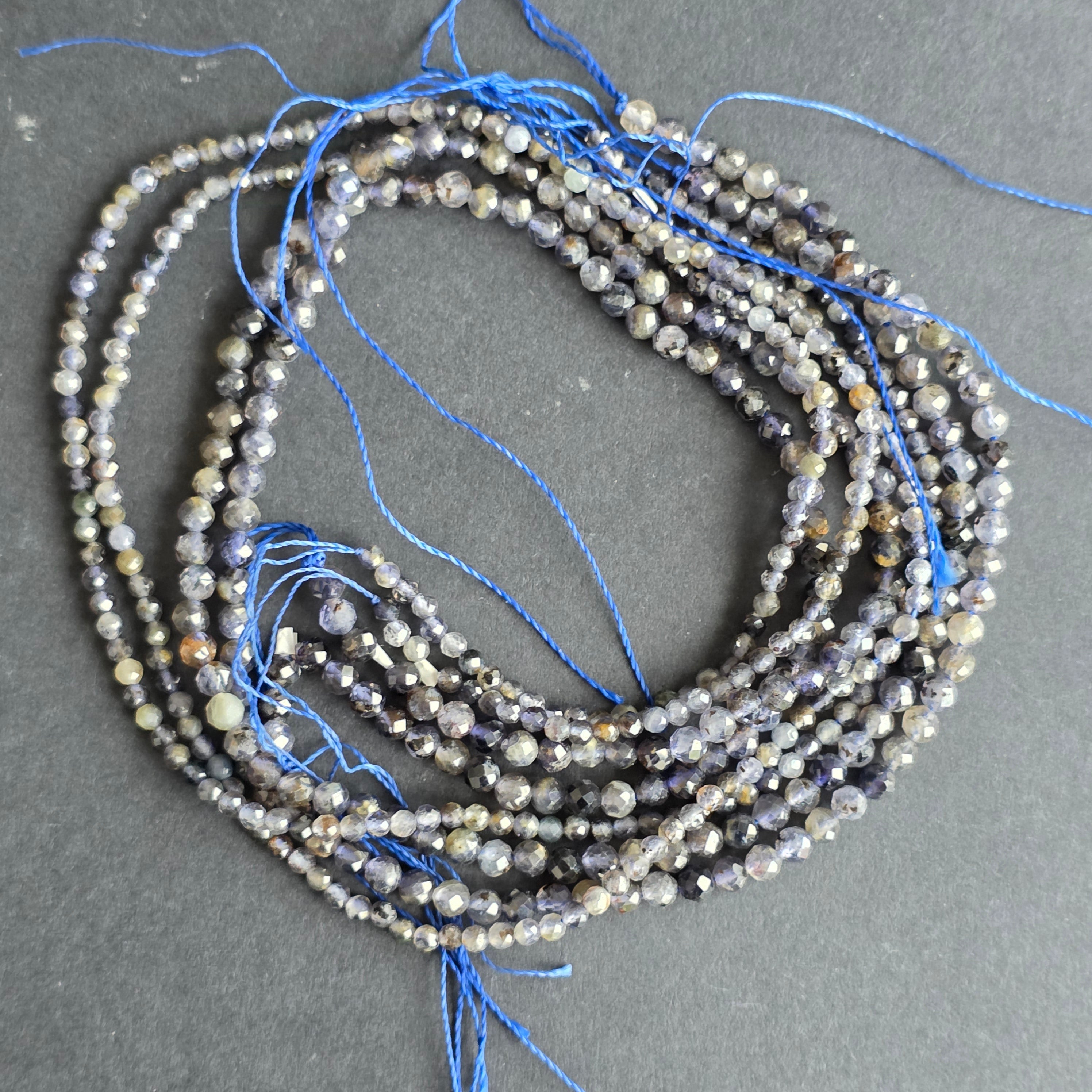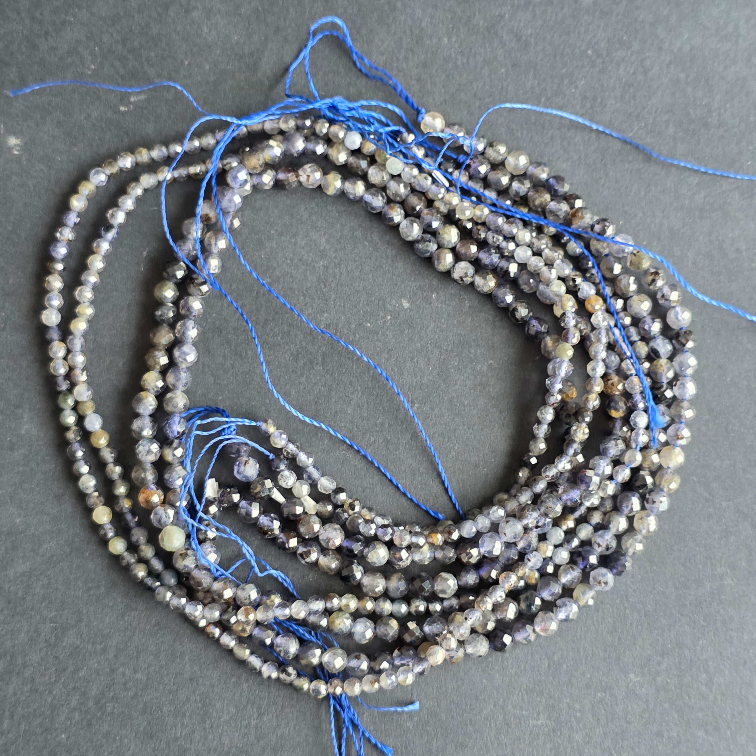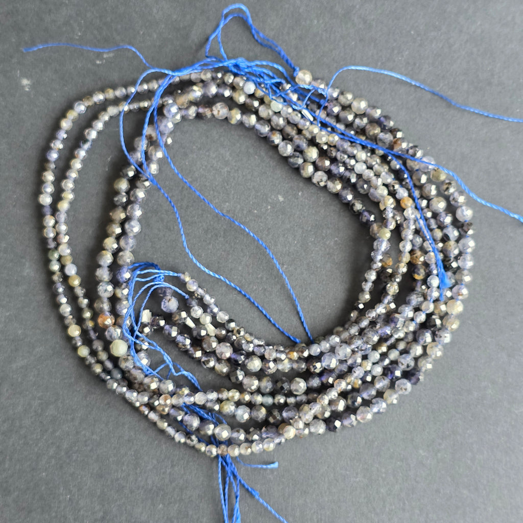 Sirag de sfere iolit, alcătuit din mărgele sferice fatetate naturale, perfect pentru coliere, brățări sau alte bijuterii handmade.