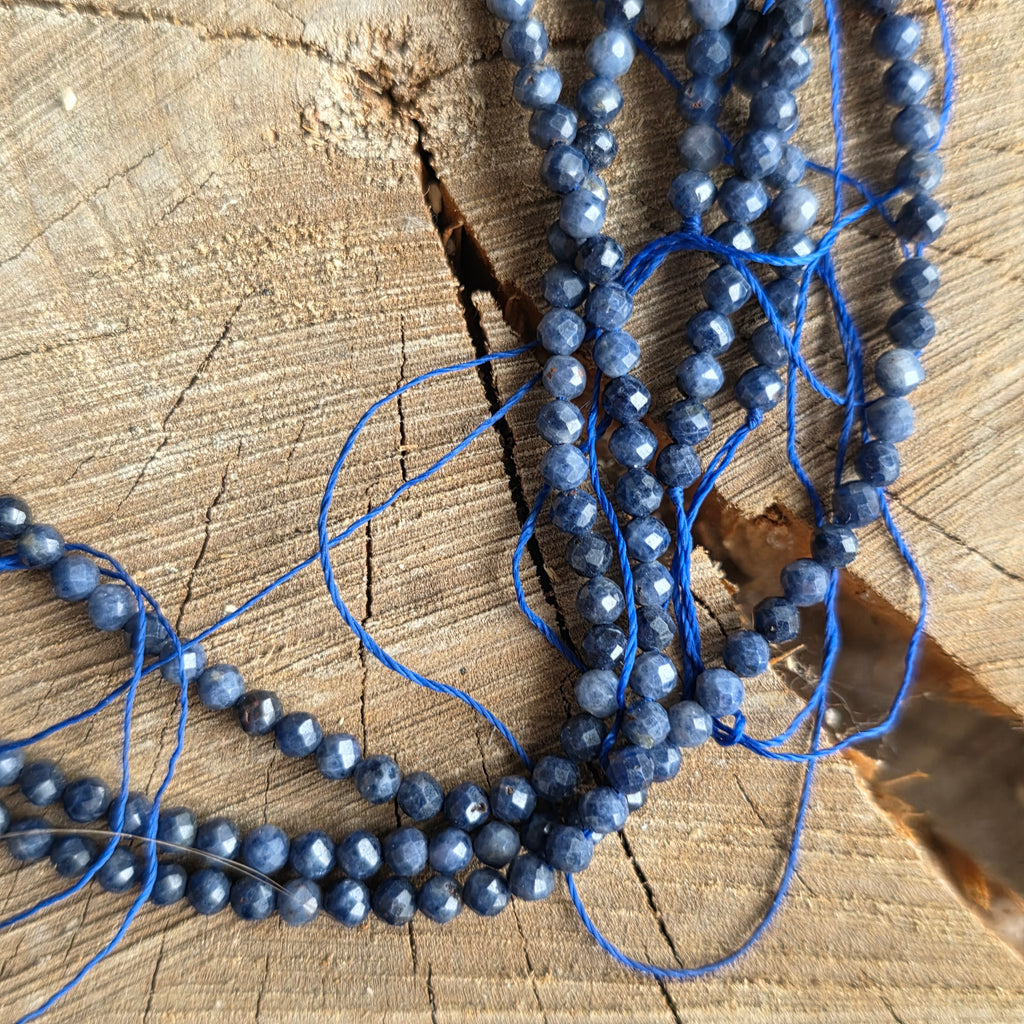 Sirag de SAFIR, alcătuit din mărgele sferice FATETATE naturale, perfect pentru coliere, brățări sau alte bijuterii handmade.