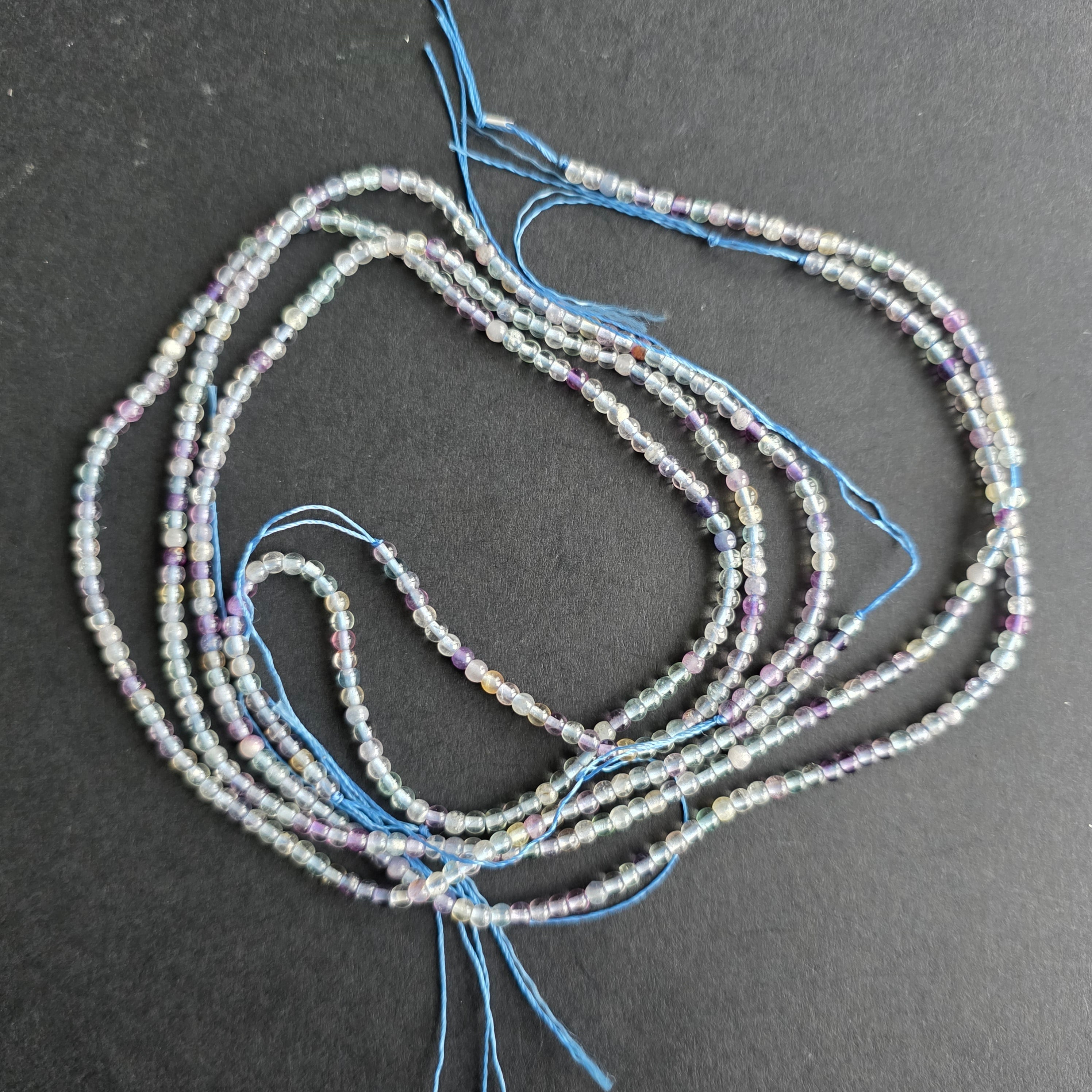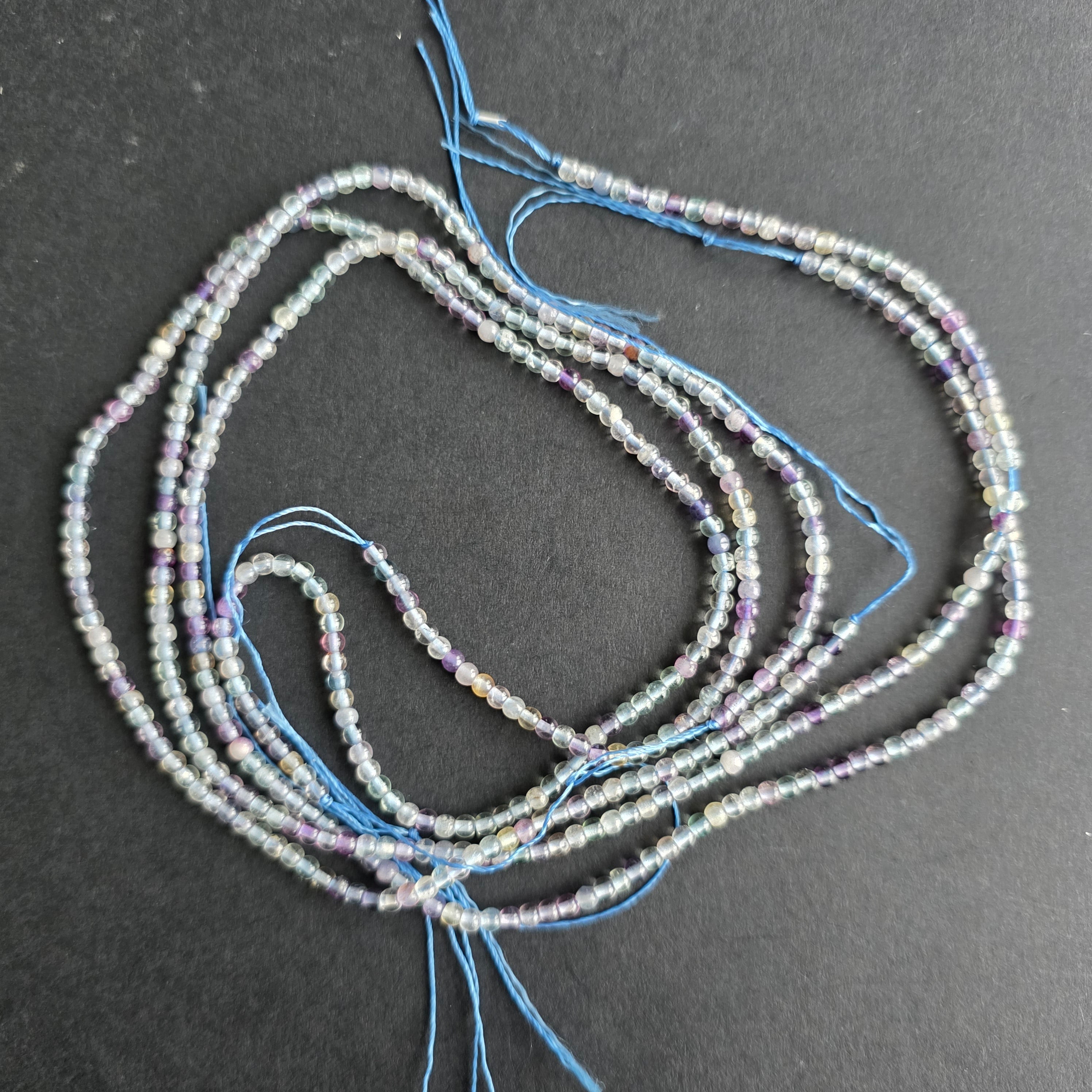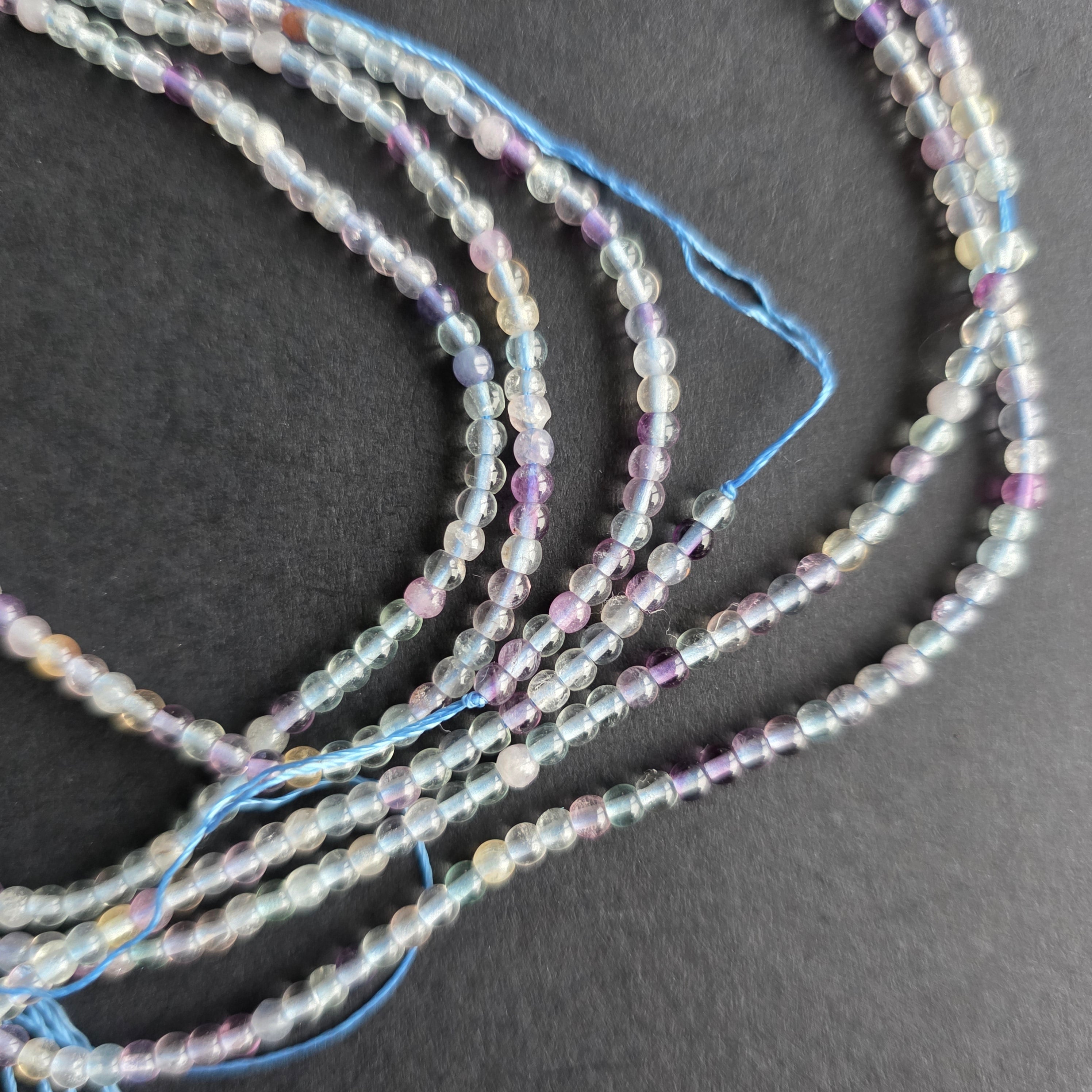 Șirag de FLUORIT MOV, alcătuit din mărgele sferice naturale, perfect pentru coliere, brățări sau alte bijuterii handmade.