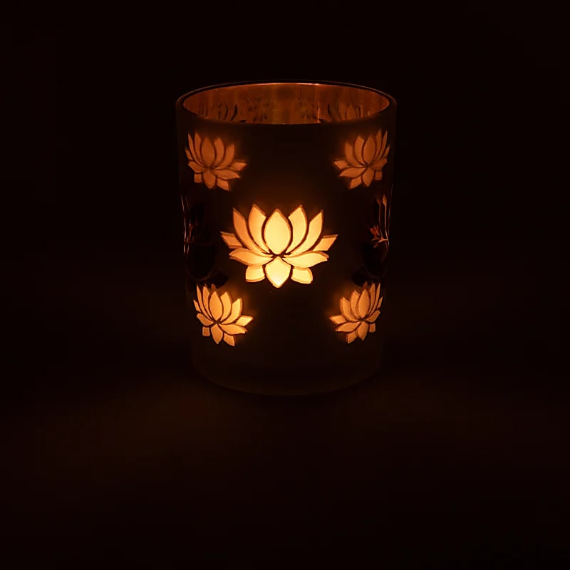 Acest suport de lumânare din sticlă redă perfect grația acestei flori sacre. Când flacăra se aprinde, petalele translucide se luminează din interior, proiectând umbre blânde și reflexii calde. Rezultatul este o atmosferă de pace și rafinament, ideală pentru meditație, relaxare sau seri liniștite acasă.