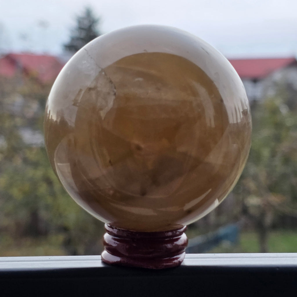 Περιγραφή - Suport rotund din lemn pentru sfere și cristale | Brown