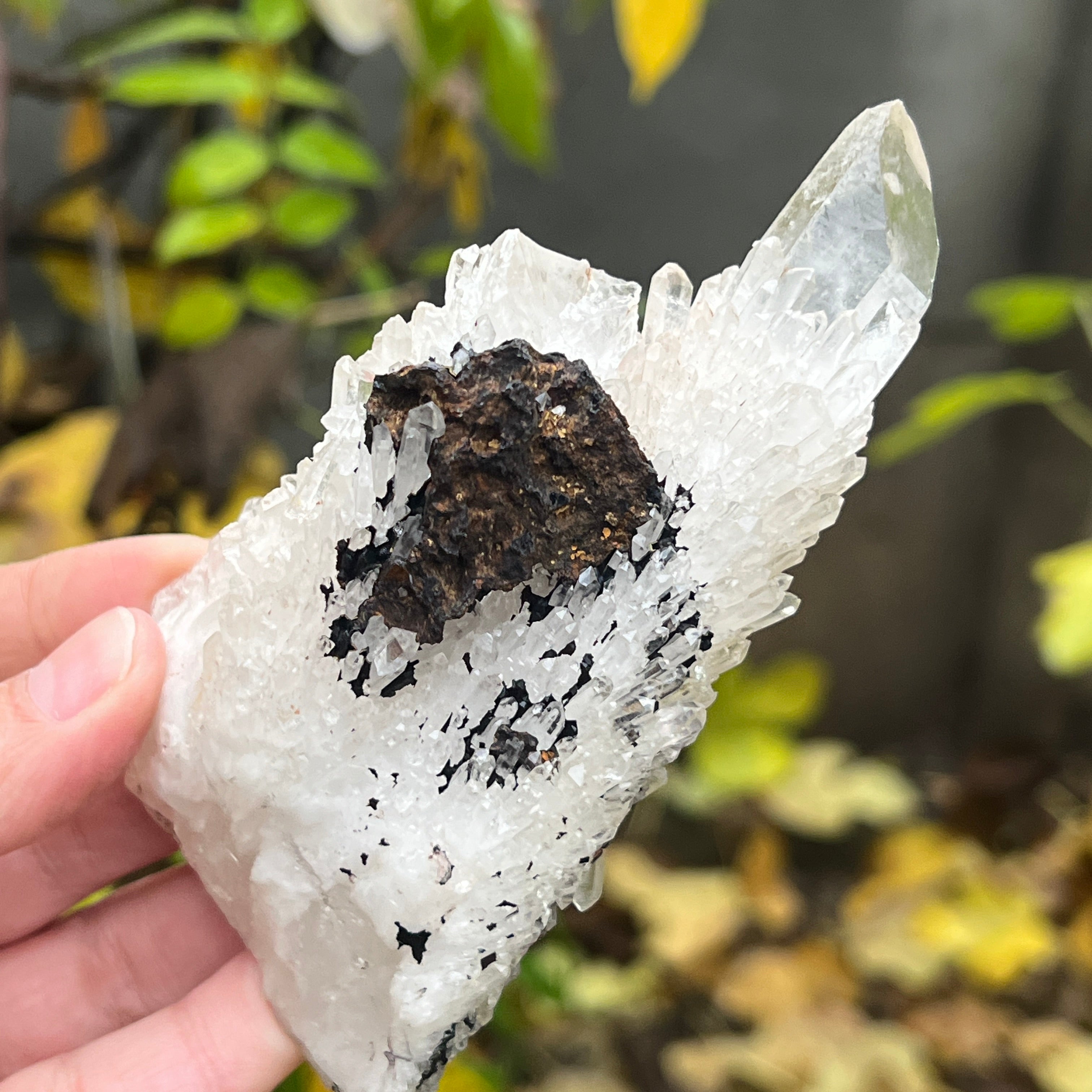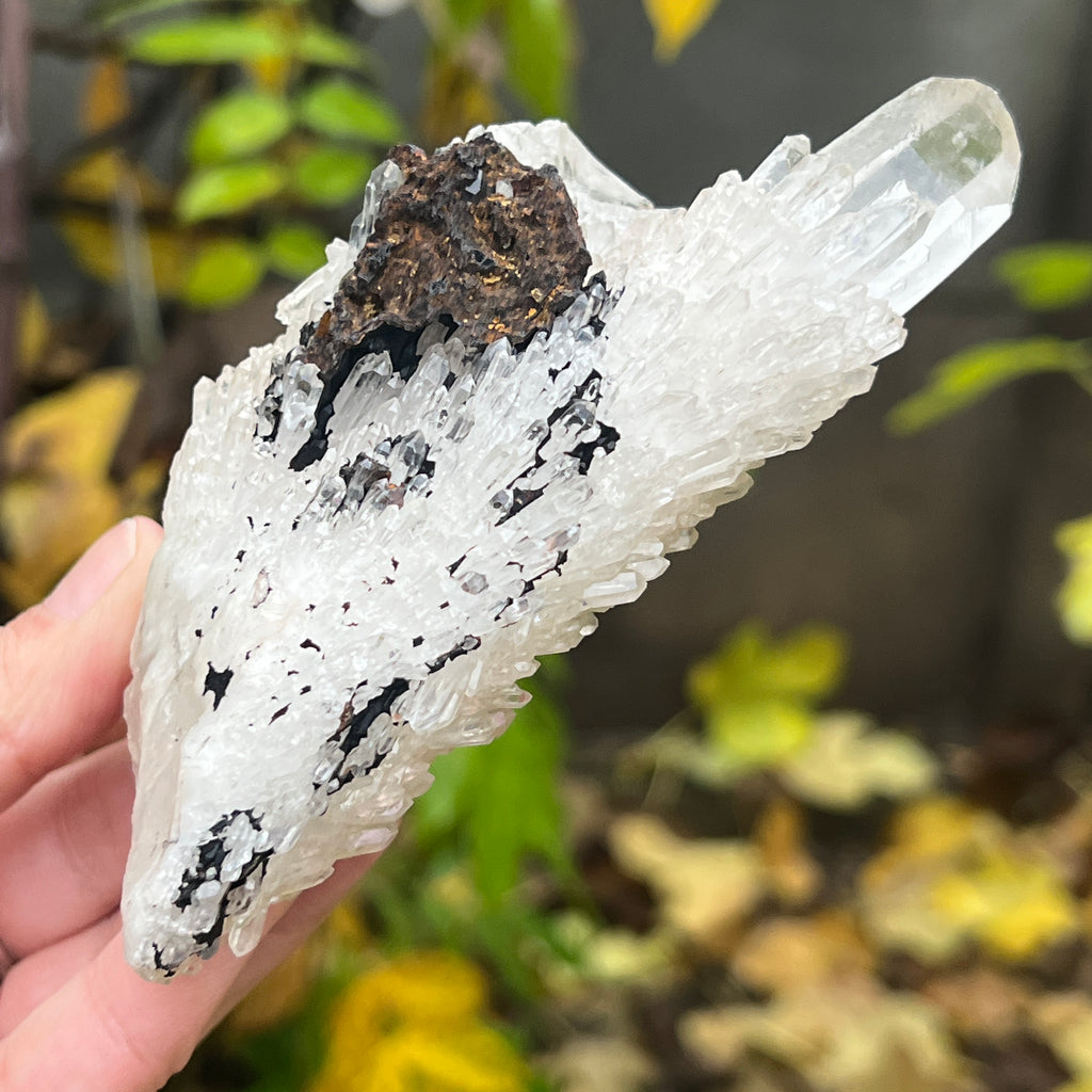 Un vârf care pare sculptat de lumină însăși. Cuartul celest, cunoscut și ca cuart lumânare, îmbină forța unui cristal de cuarț cu blândețea și strălucirea unei flăcări interioare. Forma sa unică, asemănătoare unui ananas cristalin, emană o energie de purificare profundă și de conectare cu planurile superioare ale conștiinței.